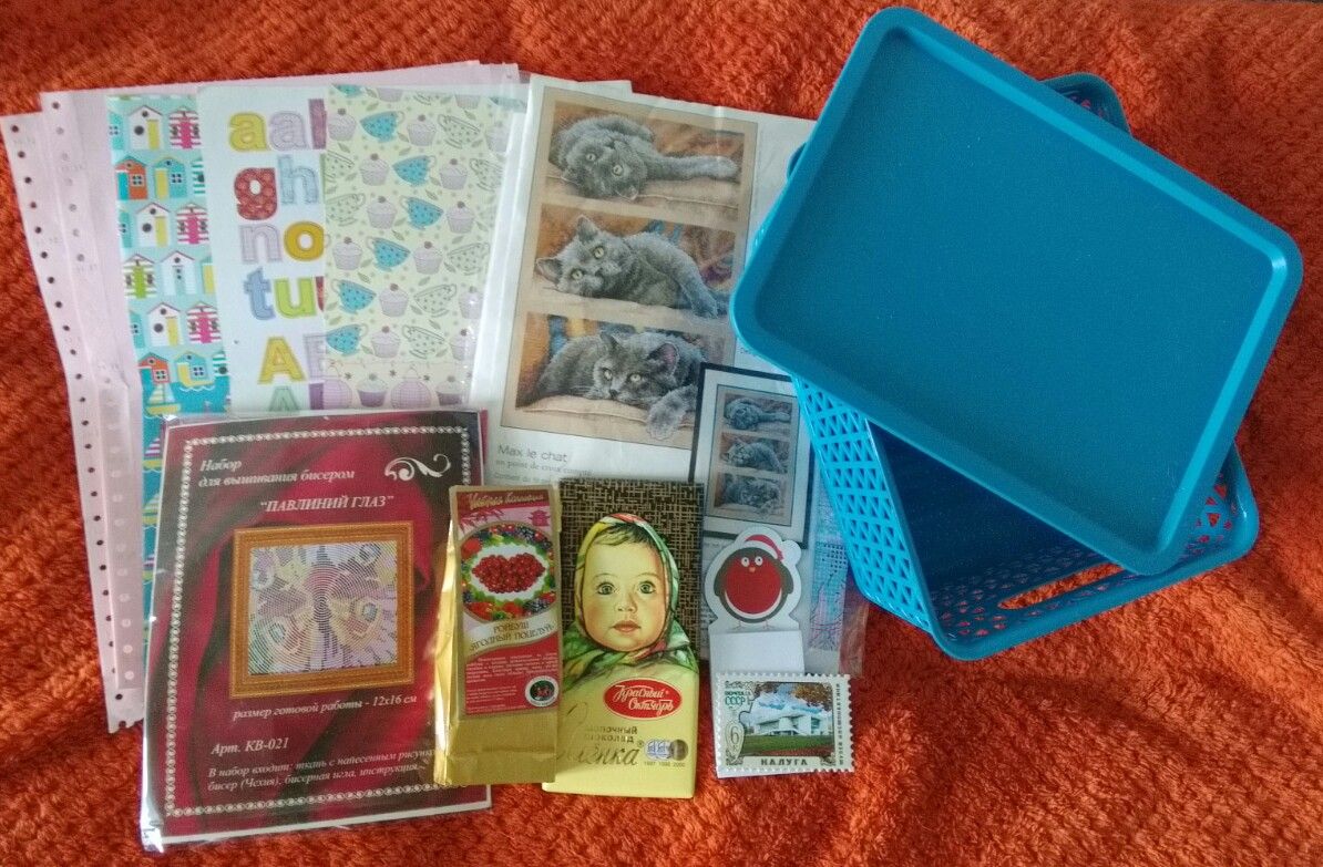 16 апреля 2016 А мне сегодня сестра забрала на почте конфетку-партизан от Оксаночки ksen_s40 а там за компанию с красавцем котом много разных вкусняшек:-) и шоколадка ис чаем, и корзинка для хранения, и бумага для скрапбукинга и еще наборчик бисерный:-) Оксана, спасибо за такой щедрый подарок! Все такое суперское! Буклеты от Лены dolli7 тоже пришли, но сестре не нашли заказное письмо, так что пойду на почту в понедельник с извещением Маса, Графиня, Каори и 47 других сказали спасибо Поделиться сообщением Ссылка на сообщение
