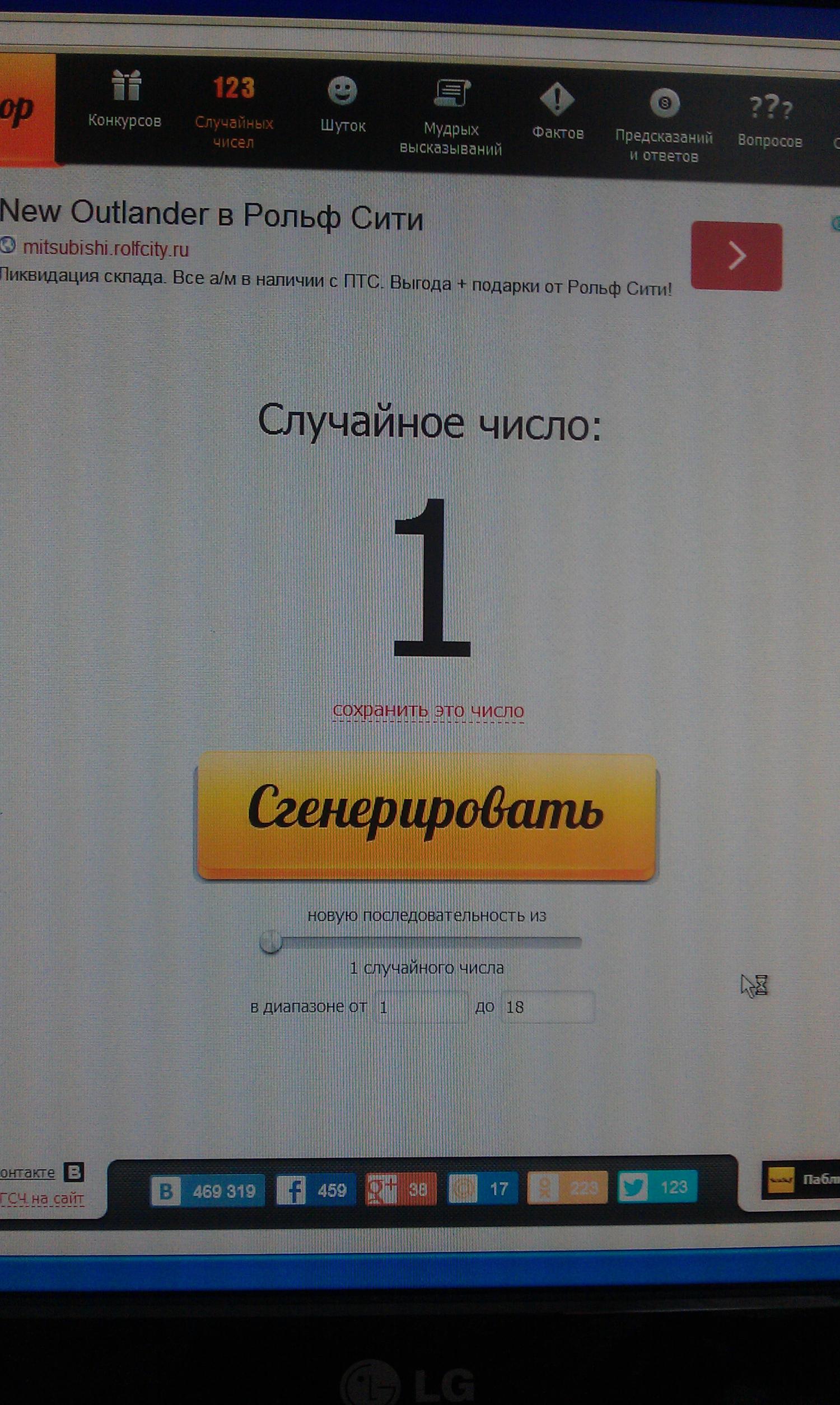 3 августа 2014 Ну что ж! Думаю, что можно разыграть мою "конфетку". Участники: 1-Aleksandr Cross-stitch, 2-ally904, 3-dolli7, 4-elis, 5-irisha-z83, 6-meledi2006, 7-Ponochka, 8-pop-evgeniya, 9-Snezhka, 10-soln33, 11-terezka, 12-Tomik, 13-vikkovesh, 14-Yadviga, 15-Бондаренко, 16-Каори, 17-Маргоша, 18-татьяна0674, Используем генератор чисел, и вот он номер победителя: Aleksandr Cross-stitch, Саша, мои поздравления!!! Адрес в личку и немного о себе, пожалуйста Aleksandr Cross-stitch, Каори, Snadis и 2 других сказали спасибо Поделиться сообщением Ссылка на сообщение