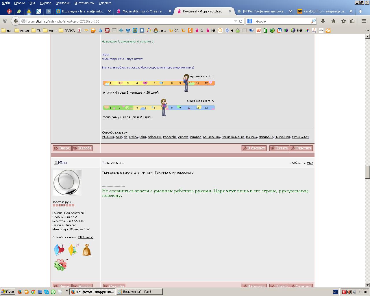 5 сентября 2014 Спасибо сказали: 1- 1963630м, 2-dolli7, 3-elis, 4-Krelina, 5-Lakis, 6-meledi2006, 7-Ponochka, 8-Ан4оус, 9-АнФрол, 10-Бондаренко, 11-Ирина-Катерина, 12-Маняша, 13-Мария2014, 14-Пикусёнок, 15-татьяна0674 Конфетка едет к elis meledi2006, Krelina, Pravoslav91 и 2 других сказали спасибо Поделиться сообщением Ссылка на сообщение