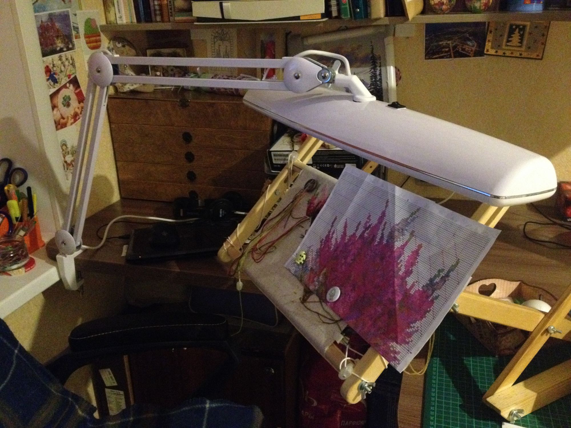 2 марта 2017 Всем огромный весенний привет! Солнышко пригревает снежные завалы наши со Слоняткой кустики, и так и хочется из них что-нибудь высунуть - то нос любопытный, то еще какую часть, а то и целую тушку)))) И пока я в кустиках сидела, новостей набралось прилично, да еще и одна другой приятнее))) Самая важная, приятная и долгожданная - наконец-то я купила себе лампу!!! Бестеневую, огромную и офигенно классную! И как я без нее жила шила всё это время? В общем, воть: Не знаю, что там на меня сильнее повлияло - новая лампа, предвкушение весны или игра на вышивание, но февраль вышел практически однопроцессный. Встречайте все крестики в Вереске! И немного того, как это было... сегодня планирую дошить полукрест, бек и лейзи-дейзи и устроить солнечную фотосессию на выходных))) Постройка зимних жилищ тоже не стояла на месте - все домики возведены, буду заполнять окружающее пространство! (вероятнее всего Снег теперь перейдет в разряд основных процессов) Тигруля подрос покрылся пятнами - приспособилась вышивать по цветам. Немножко не нравится, что ниточки ложатся не плотным "ковром" и кое-где видно просветы((( Надеюсь, что это не будет заметно, когда Тигруля дошьется... Не обошла вниманием я и еще одно белоснежное создание с розовыми ушами - пополнила запасики у котика-сладкоежки и продолжила тушку А еще я немного распотрошила нору своего хомяка, пособирала прибамбасы для нашего волшебного Сундучка и осчастливила (надеюсь))) Зину @Пикусёнок коробками для бобинок. А она осчастливила меня симпатичной птахой. Исполнится еще 1 мечта - попробовать гладь)))) Ну вот, вполне приличный отчет получился, не стыдно и из кустов выбраться))) Всем тепла и весеннего настроения! Всегда ваша Рыбка! Маса, Веселинка, Пикусёнок и 35 других сказали спасибо Поделиться сообщением Ссылка на сообщение