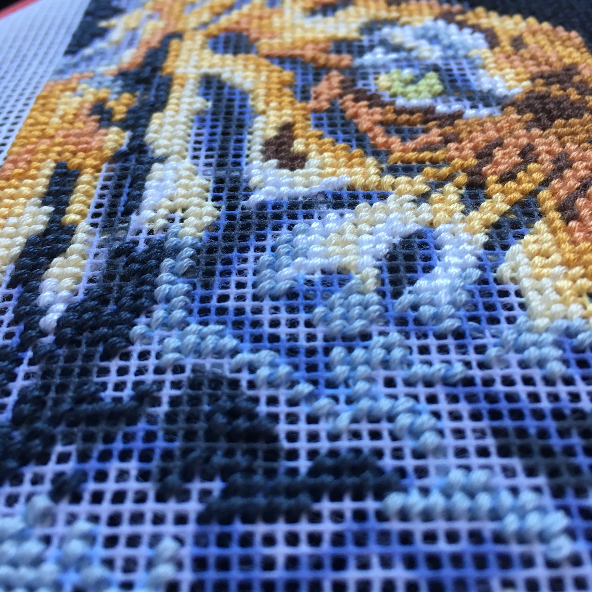 3 апреля 2017 Всем привет. Краткие вести с полей - отчеты сдала, коллега еще не выходит, но все-равно должно быть полегче... Ну и вышивальные новости - Тигрика я таки дошила в ночь с 31 на 1))) Процесс оказался довольно спорным. Гобеленом шить понравилось, полной пасмой - не очень. Кажется, что все стежки кривые, где-то слишком затянутые, что просвечивает... бек вообще не укладывается, оставила так. В целом получилось довольно симпатично, в рамке под стеклом должно быть нормально. В Снеге дошила до второго угла. Невероятное небо готово. спускаюсь в сизые горы))) Никак не могу нормально натянуть канву, бороздка от снапов не разглаживается((( Но кайфовать от процесса это не мешает))) На этом новости заканчиваются, пойду, может пошить еще успею. Всем весны, ваша Рыпка. МарСанна, agapenok, Mizeri и 31 других сказали спасибо Поделиться сообщением Ссылка на сообщение