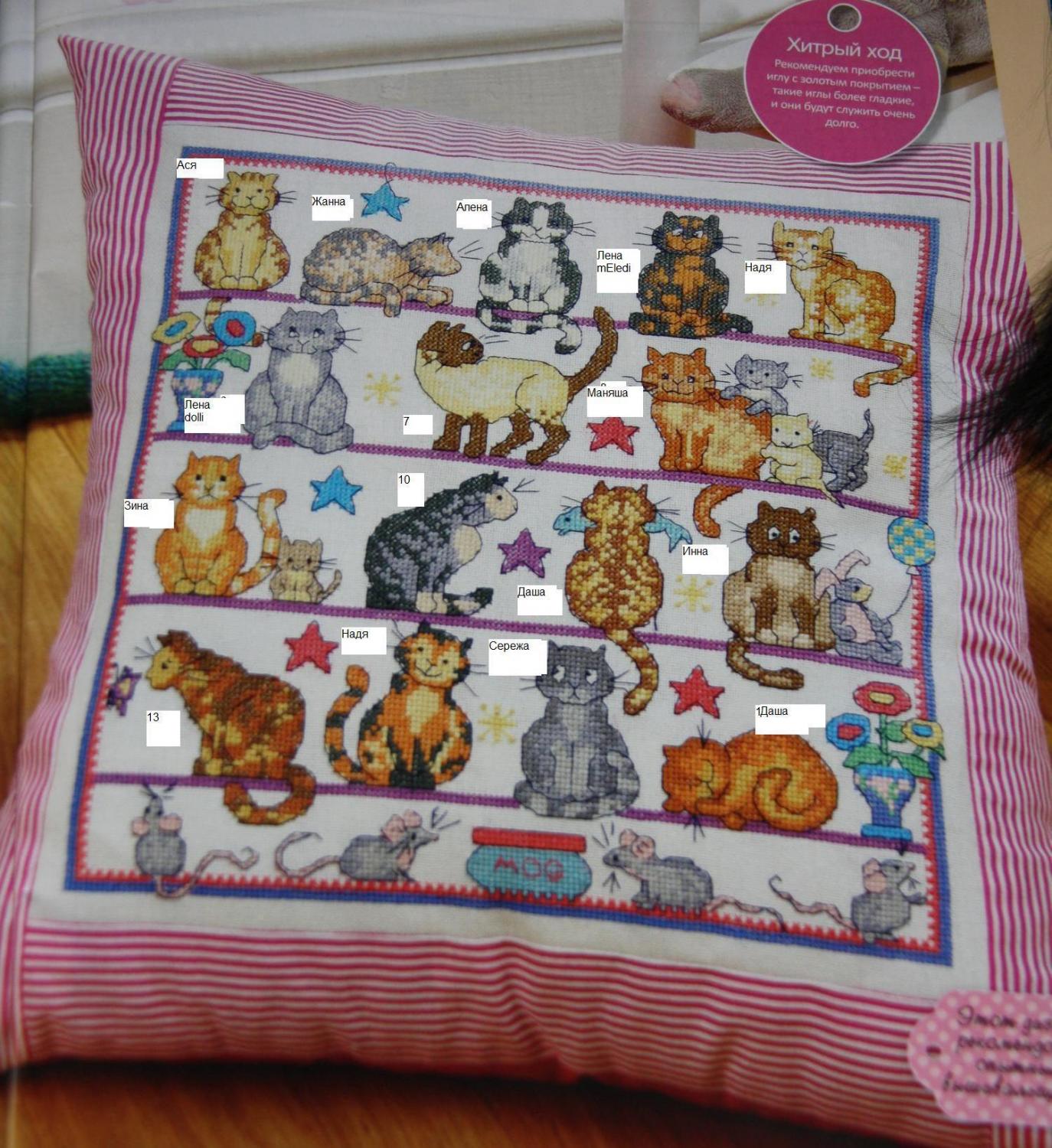 19 августа 2014 1 - Lakis 2 - I_avis 3 - meledi2006 4 5 - Каори 6 - Elvica 7 - Бондаренко 8 - Пикусёнок 9 - CandySweet 10 - chana75 11 - Сергей 12 13 - dolli7 14 15 А больше ни у кого дети-мужья-мамы котиков повышивать не хотят? Эх, мне 4 штуки остается... Марин, а каждый кот какого размера? Поделиться сообщением Ссылка на сообщение