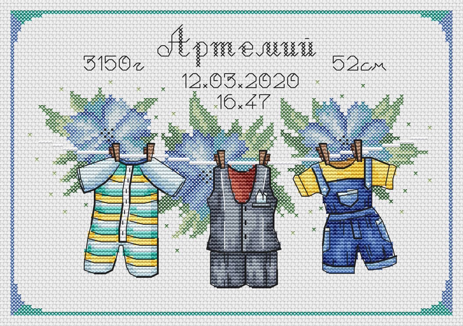 5 февраля 2021 "Метрика для мальчика". Размер 126х87 крестиков, 24 цвета и 3 бленда, ДМС. Крест, бэкстич, фр.узелок. Поделиться сообщением Ссылка на сообщение