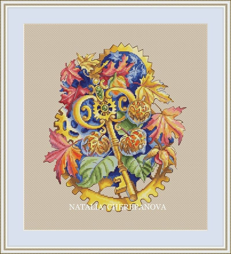 14 октября 2022 "Стимпанк. Ключ осенний". Размер 125х148 крестиков, 37 цветов и 4 бленда, ДМС. Крест, бэкстич. Поделиться сообщением Ссылка на сообщение
