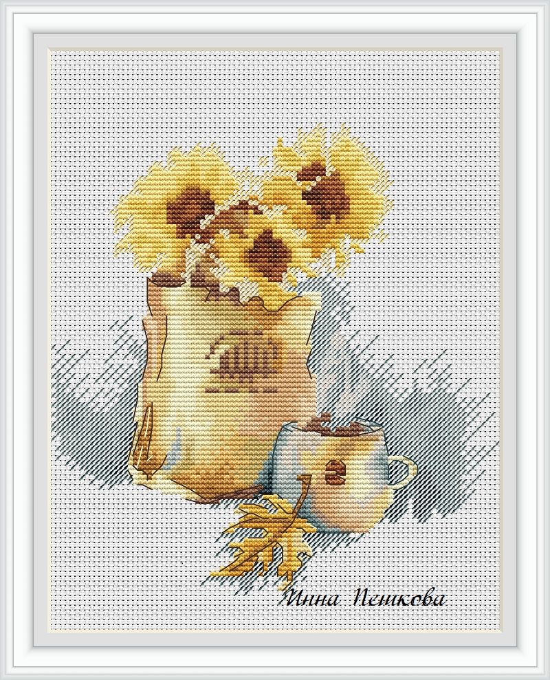 27 сентября 2018 Золотая осень. Размер 100х93 крестика, 29 цветов + 3 бленда. Поделиться сообщением Ссылка на сообщение