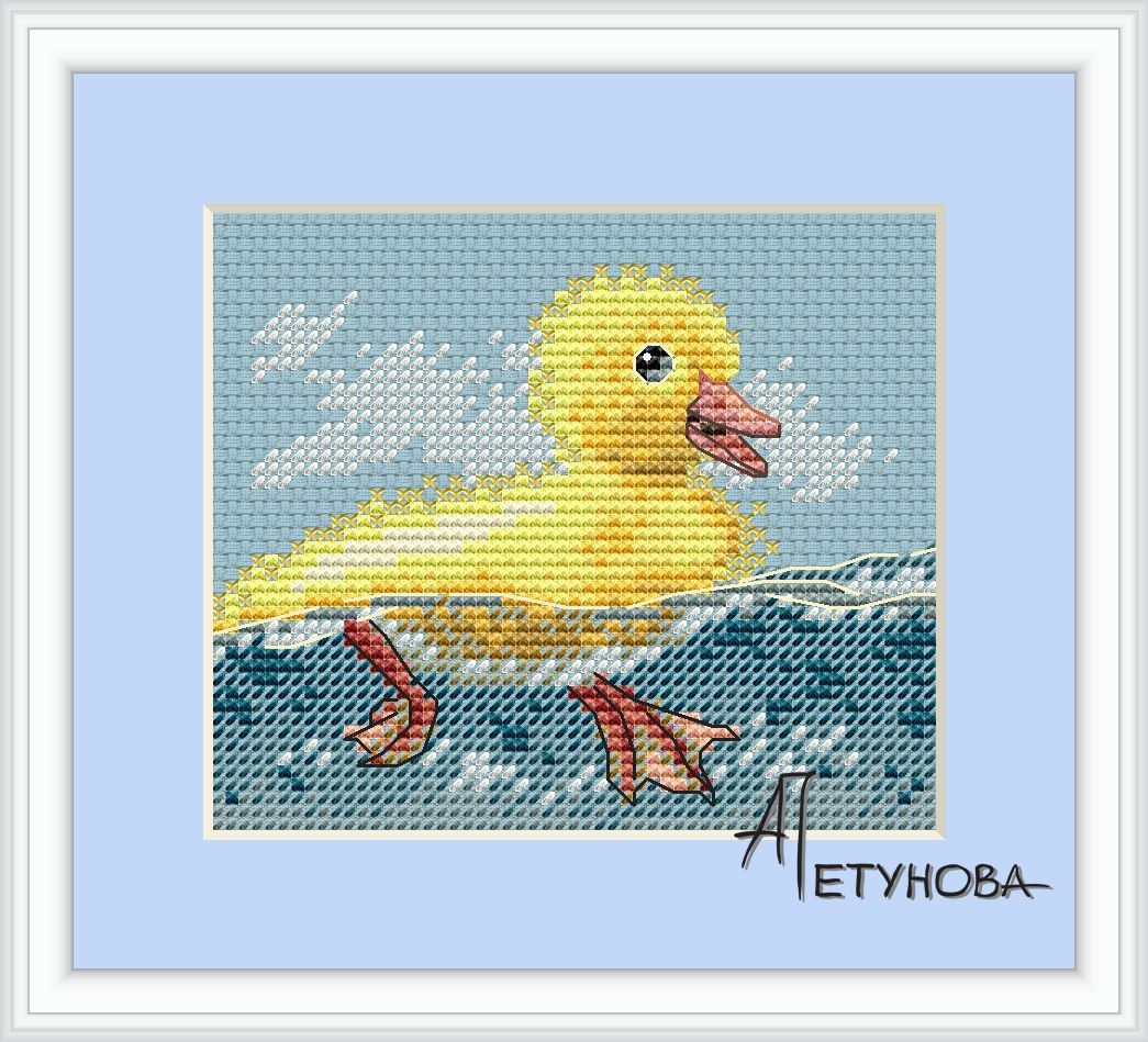 17 мая 2017 Утенок. Размер 55х43 крестика, 17 цветов+3 бленда из них. Крест, полукрест, немного дробных крестов и фрузелков, счетный бэкстич. Поделиться сообщением Ссылка на сообщение