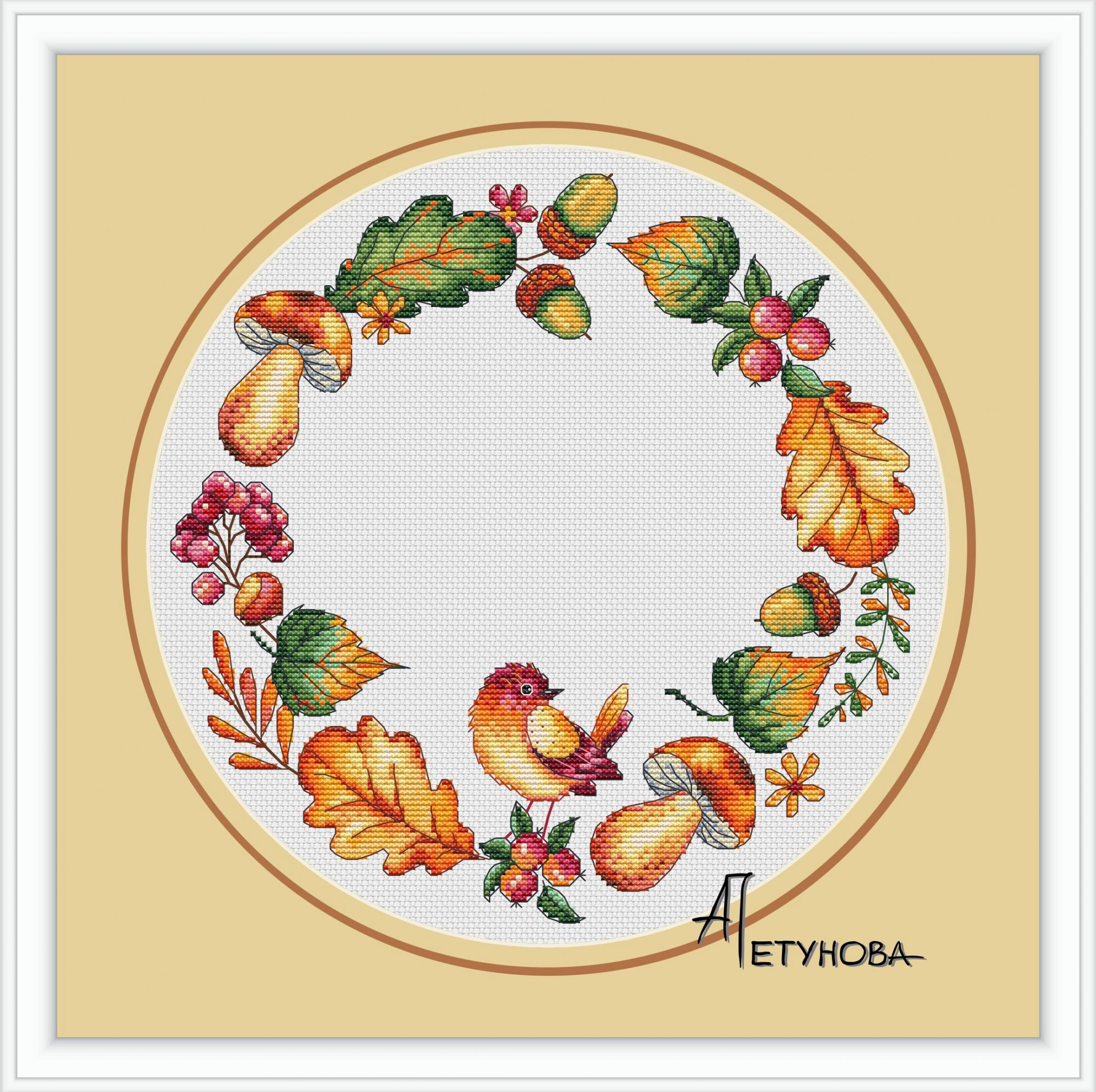 5 мая 2017 Осенний венок Размер 161х141крестиков, 37 цветов+9 блендов из них. Крест, счетный бэкстич, немного фрузелков. Vika71, Selinta, Чивава и 1 другой сказали спасибо Поделиться сообщением Ссылка на сообщение