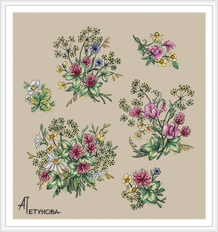 5 октября 2018 Семплер "Полевые цветы". Размер 167х178 крестиков (размеры больших схем примерно 80х80 кр, маленьких - 45х45 кр). 25 цветов и 1 бленд из них, ДМС. Крест, полукрест, счетный бэкстич, фрузелки. (по иллюстрации *alena_chenchik (Алёны Ченчик) Пумочка-13 и Ксен40 сказали спасибо Поделиться сообщением Ссылка на сообщение
