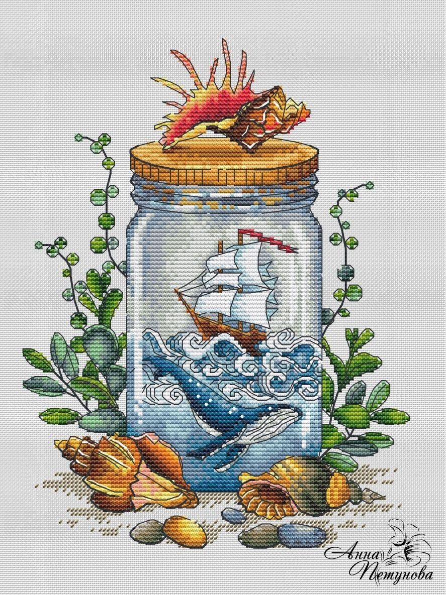 Размер 57х73 крестика, 20 цветов + 2 бленда из них, ДМС.