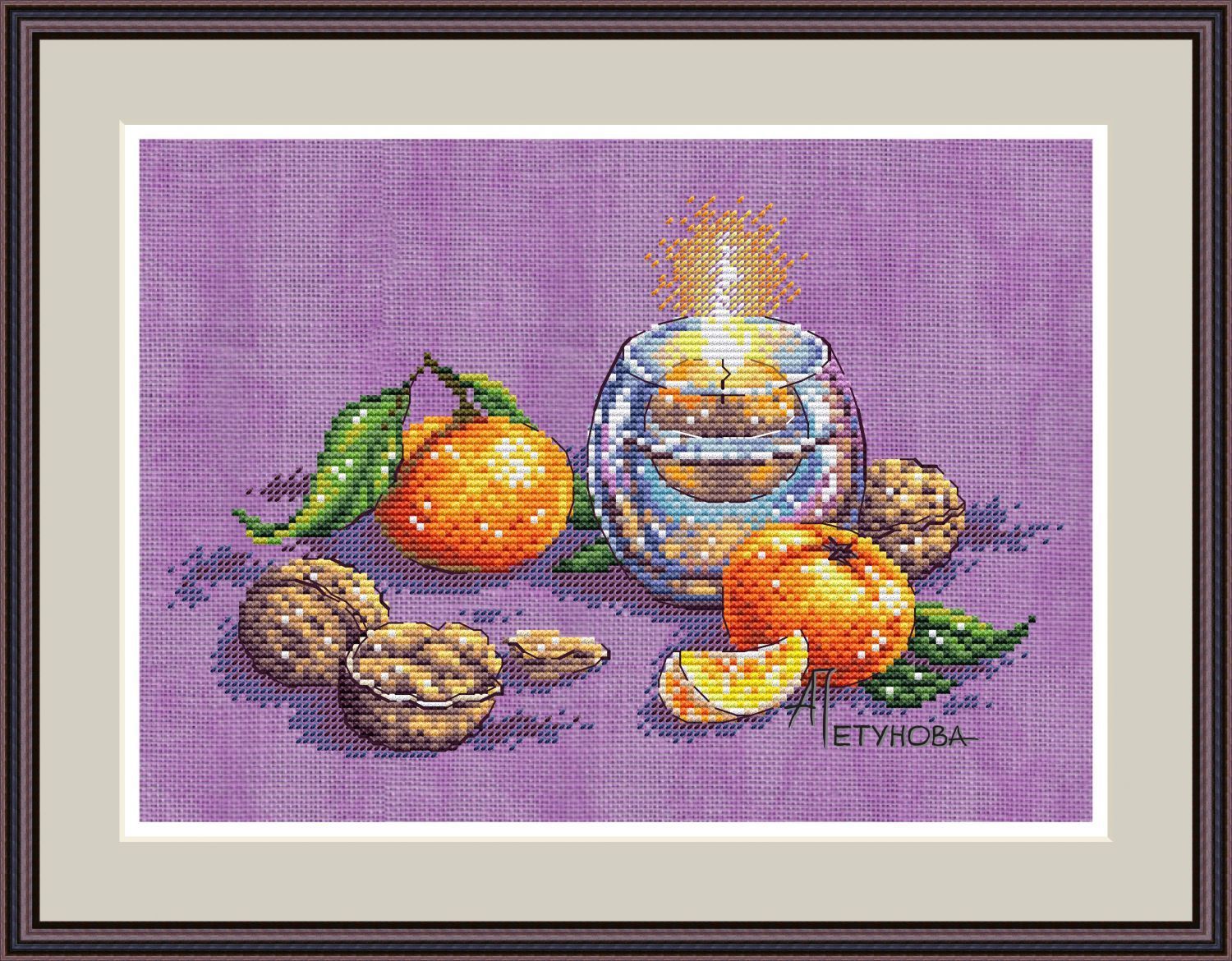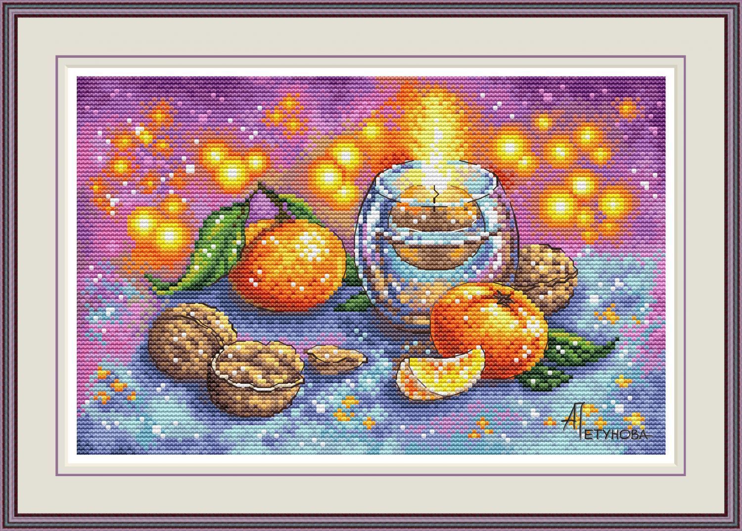 Крест, счетный бэкстич (дробный на лице), фрузелки.