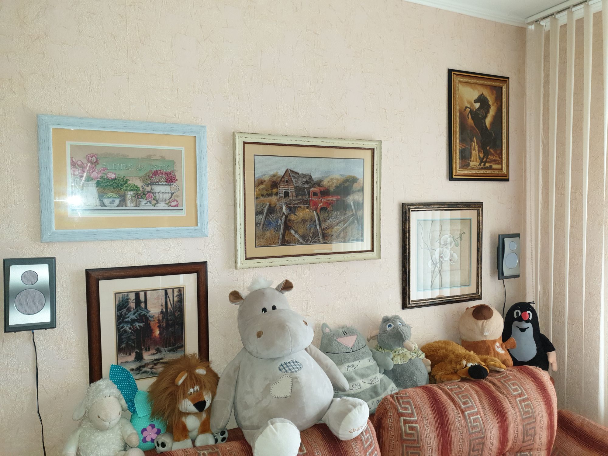 14 августа 2019 3 минуты назад, lenning сказал(а): Ух, как здорово получилось! Не вычурно, лаконично, но и праздник присутствует). Замечательная работа! А как ты так смогла бюджетно оформить-то??? Сама оформила в готовую раму? Ленуца, привет. Нет, сама я не оформляю. Наткнулась на новую багетную мастерскую. На периферии. Вот такие там цены. А центровая взяла бы раза в 3-4 больше. Я потому и не оформляю у них уже года два. Вообще ничего не оформляю... кажется после Кастомских "Лилий"ю И делают они очень плохо. Переделывают, правда, но задолбалась ходить, разочаровываться, снова ждать и думать: а как на этот раз? Тут еще багет очень простой. Пластиковый и он цельный. Вот такой вот висел и ждал нас с конем 6 минут назад, lenning сказал(а): Зоопарк расчудесный у тебя внизу расположился, зверушки один другого милее). Крот небось из любимой Праги привезен?) Я оттуда такого же привезла, только маленького и в шапочке вязаной). Дааа это мои самые любимки. Почти всех я купила сама. Без повода. Даже бегемота АлёNка, Galagenka, Лаки и 11 других сказали спасибо Поделиться сообщением Ссылка на сообщение