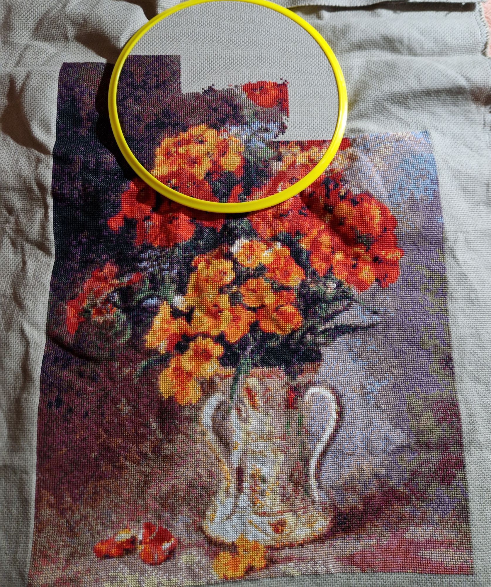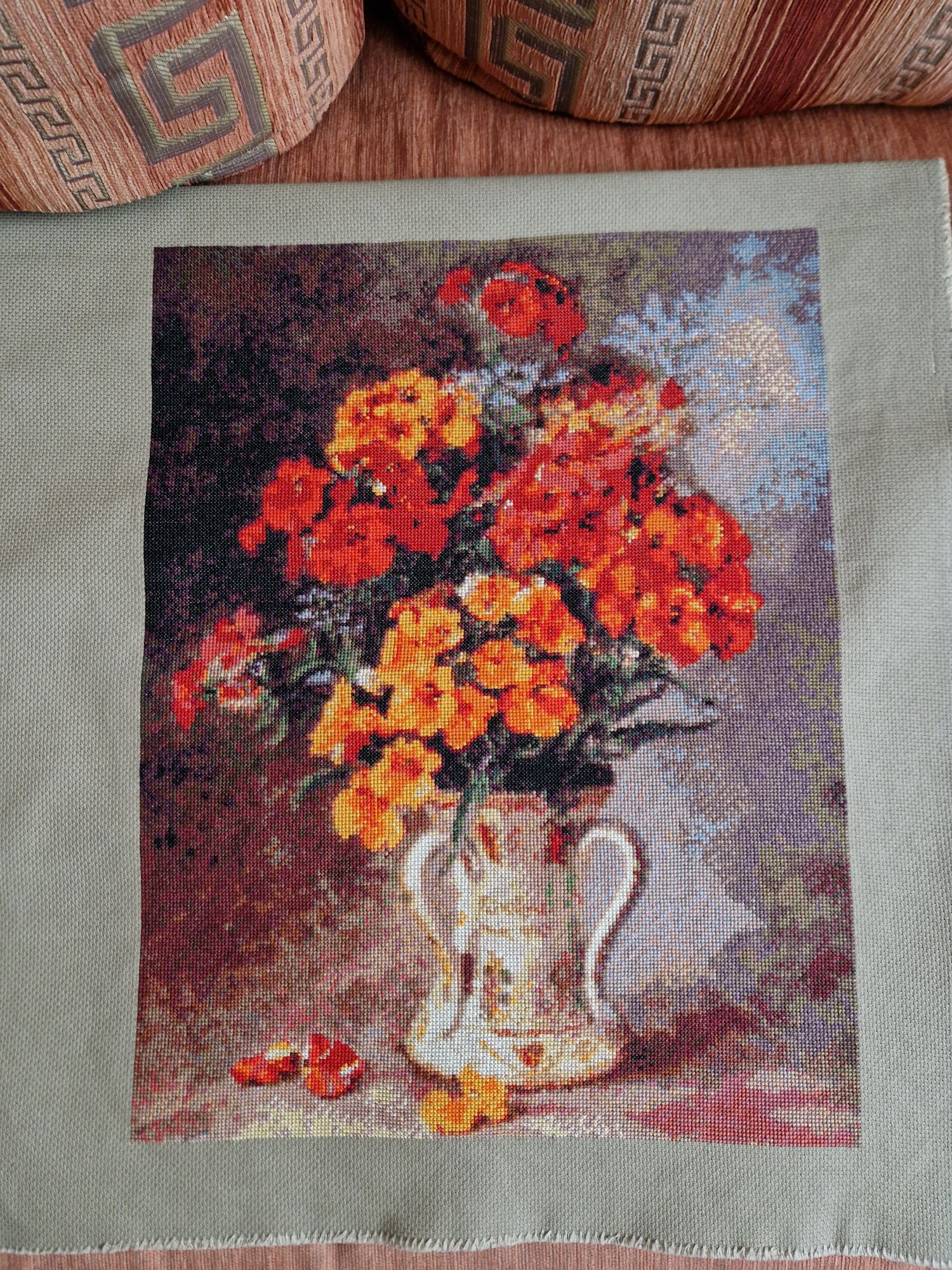 17 апреля 2024 22 часа назад, Аленка-2 сказал(а): Красотища! Твоя правда!!! Красотищща! И букет изумляет и фон. Скажу страшную вещь, но это благородное месиво, то бишь фон всех оттенков радуги - он превосходен. Божественно! Может не столько шить - сколько лицезреть готовые куски. 5 часов назад, Аринесса сказал(а): Можно восхищаться и восхищаться....Чудесно. Вот видите: товарищ Таня не даст соврать 5 часов назад, Bogdan сказал(а): Оля, оочень красиво получается Я это сюжет планировала отшить лет семь. И ни разу воля моя не дрогнула. Считай выбор, проверенный временем 3 часа назад, Гало4ка сказал(а): класс. там еще не все рыжее отшилось-это замечательно К сожалению все... на сейчас остается один только фон, и то не в самом своем лучшем выражении. Желтый с тремя оттенками голубого - я прямо с трудом это делаю. Я даже впервые за много много лет начала ряд не справа налево, а с лева направо. Лишь бы только оттянуть это момент 3 часа назад, irisheckin сказал(а): Всего самого доброго! Ирина, спасибо. Ты замечательный Друг. С большим сердцем. Храни тебя Всевышний от невзгод и печалей Гало4ка, Tata44, Аринесса и 4 других сказали спасибо Поделиться сообщением Ссылка на сообщение