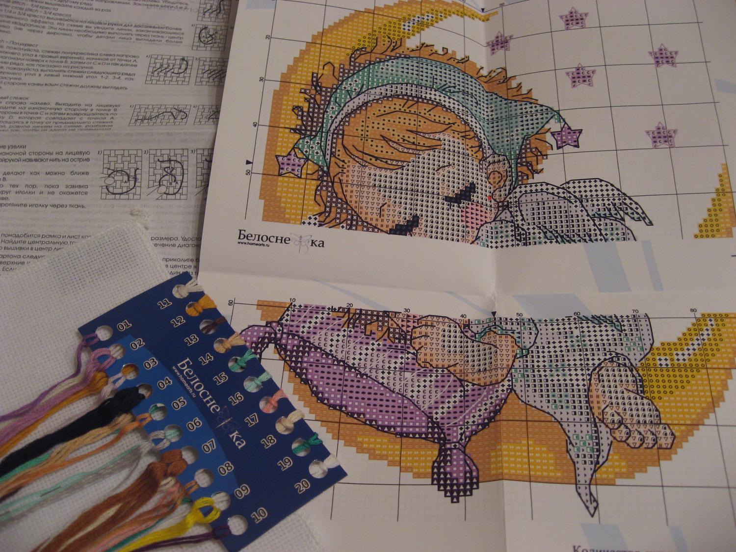 9 марта 2015 Девочки, я начала ещё два процесса) Гобелен "Летний закат" от Goblenset". Старт работы - 04.03.2015 г. Начала и немного расстроилась - процесс дается очень тяжело, сказывается очень мелкая канва и черно-белая схема. Все наборы вышивала по цветной, здесь же все сливается в глазах, без маркера никак не обойтись) Когда тренировалась - шилось легко) Сейчас понимаю, что мой "Сладкоежка" с 64 цветами - просто сказка по сравнению с гобеленом. Схема огромная, на 12 листах. Вот так выглядит вся схема в развернутом виде) Из-за размера вышивать буду по листам, снизу вверх) Совсем немного готово на сегодняшний день. Итоговый размерм - 42х27. А вот картина, по которой сделан набор Сюжет нравится настолько, что шить буду обязательно, но скорее всего медленно. Поэтому разбавлю вышивание ещё одним маленьким процессом на крупной канве. Поэтому начала ещё один маленький процесс, отдыхалочку. У меня 2 набора "Белоснежки": "Нежный сон" и "Волшебство неба" . Приобрела их до того, как начиталась отзывов об этой фирме и отшивах по их наборам. Но думаю, такие анимашки испортить сложно) Да и отшив по похожему набору радует) Хотя оба набора одной фирмы - схему у них разные: в одном крупная, в другом намного меньше. Поэтому решила и начала "Нежный сон" с крупной схемой, чтобы на этом процессе глазки отдыхали) Старт работы - 06.03.2015 г. Вот состав набора: крупная цветная схема, мулине на органайзере, 2 иголки) Понравилось, что канва уже обметана и не надо тратить на это время) А также, что обозначены, какому цвету соответствует какой номер ниток дмс. Начала вышивать по цветам с личика девочки) МаринЭ, Каори, alexa412 и 7 других сказали спасибо Поделиться сообщением Ссылка на сообщение