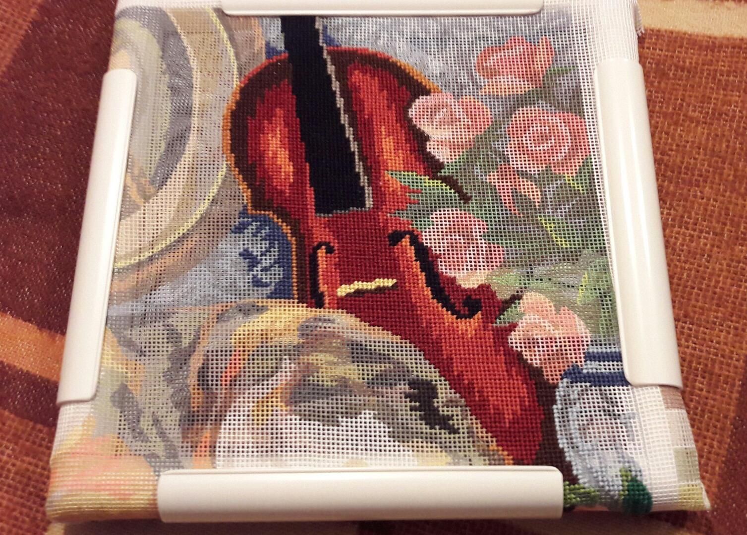 1 марта 2017 Девочки, привет! Вот уже давно, целых 2 месяца ничего не писала в своей теме)) Новости есть, поэтому пора о них рассказать) Наконец-то определила место на стене всем оформленным работам и торжественно их повесила) Конечно, не туда, куда изначально планировала, но в тоге вышло даже лучше) Прежде не показывала оформленные маки, они были завернуты в пленку, которую не хотелось раньше времени снимать. Здесь двойное паспарту с музейным стеклом) Вот результат) Ежиков и белочек уже выложила в галерею, теперь покажу и здесь. В январе завершила вышивать парочку от фирмы Овен. В этом наборе мне не понравилось сильное различие между обложкой и полученным результатом. Понимаю, что есть погрешности полиграфии, но цвета сильно отличаются. Попыталась заменить на другие, получилось хуже. Так что всё вышито по ключу. (Оба фото для гаечки, пожалуйста) Завершив парочку, решила, что пора мне начать вышивать что-нибудь новое в качестве отдыхалочки. Осмотрела закрома (где в основном большие работы) и остановилась на вот такой "Лисичке" от Риолиса. Процесс очень нравится) Кстати, это мой первый набор, где шерстяные ниточки уже намотаны на картонные планшеты. Очень удобно) Главное, не забывать закреплять хвостики, иначе они будут путаться. (Оба фото для гаечки, пожалуйста) И на днях начала вышивать "Влюбленных птичек" от Марички. Купив набор, сначала разочаровалась. В инструкции столько различных стежков, что глаза разбегаются. Не все объяснения я поняла, поэтому набор отложила. А сейчас решила при помощи youtube разобраться) Там всё наглядно показано, всё поняла. И сразу приступила к вышиванию. Теперь всё кажется достаточно простым, и можно получать удовольствие от процесса. Гершвин. Вышиваю его мало, но тем не менее продвижения есть. Скрипка почти готова. Впереди самое сложное - участки с большим количеством цветов. Было/Стало Сейчас хочу выразить огромную благодарность девочкам, которые поделились со мной ниточками из наборов Дима. Спасибо огромное! Вы меня очень выручили! Svet-lana, Valvariella, танюша123 и 26 других сказали спасибо Поделиться сообщением Ссылка на сообщение