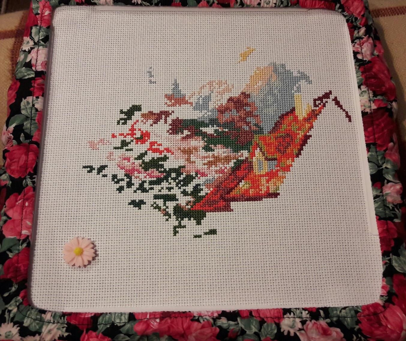 17 июля 2017 Девочки, привет! Спасибо, что заходите, не забываете! Пришла пора показать свои продвижения, что вышила за месяц. Закончила я "Влюбленных птичек" от Марички. И начало вышивать дерево (Марічка НКШ-4004. Цветущее дерево). Вот так будет выглядеть готовая работа, а пока самое начало. Также начала 2 процесса на равномерке. "Белые" от Марьи Искусницы. И "Душистый чай" от Золотых ручек. Парный набор "Ароматный кофе" я тоже открыла, но покажу позже, т.к. вышито там совсем мало. Сейчас заметила, что стало тяжело вышивать на равномерке. То ли отвыкла, то ли ещё что, но вышивать совсем не хочется, попробую сделать перерыв. Поэтому основным процессом стала мельница от Риолиса. Вышивается быстро и легко. Перед вышивкой канву я не измерила, а отшив большой кусочек увидела, что до верхнего края осталось не так уж много. Начала быстро считать оставшиеся в высоту крестики. К счастью хватило, но припуски совсем небольшие получились. И это в старой комплектации. Было/Стало Путешественница, Catopuma, ОльгаВл и 19 других сказали спасибо Поделиться сообщением Ссылка на сообщение