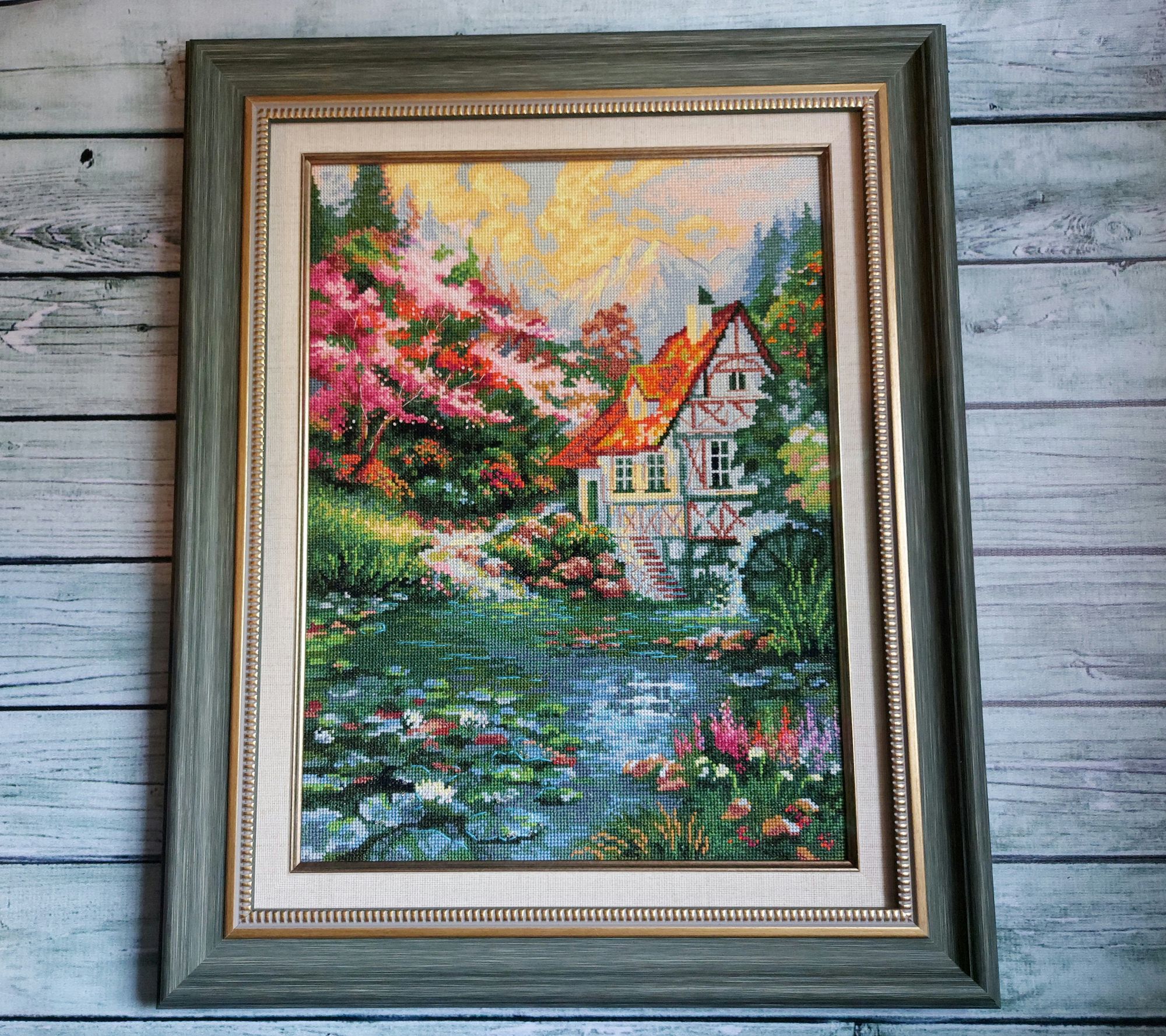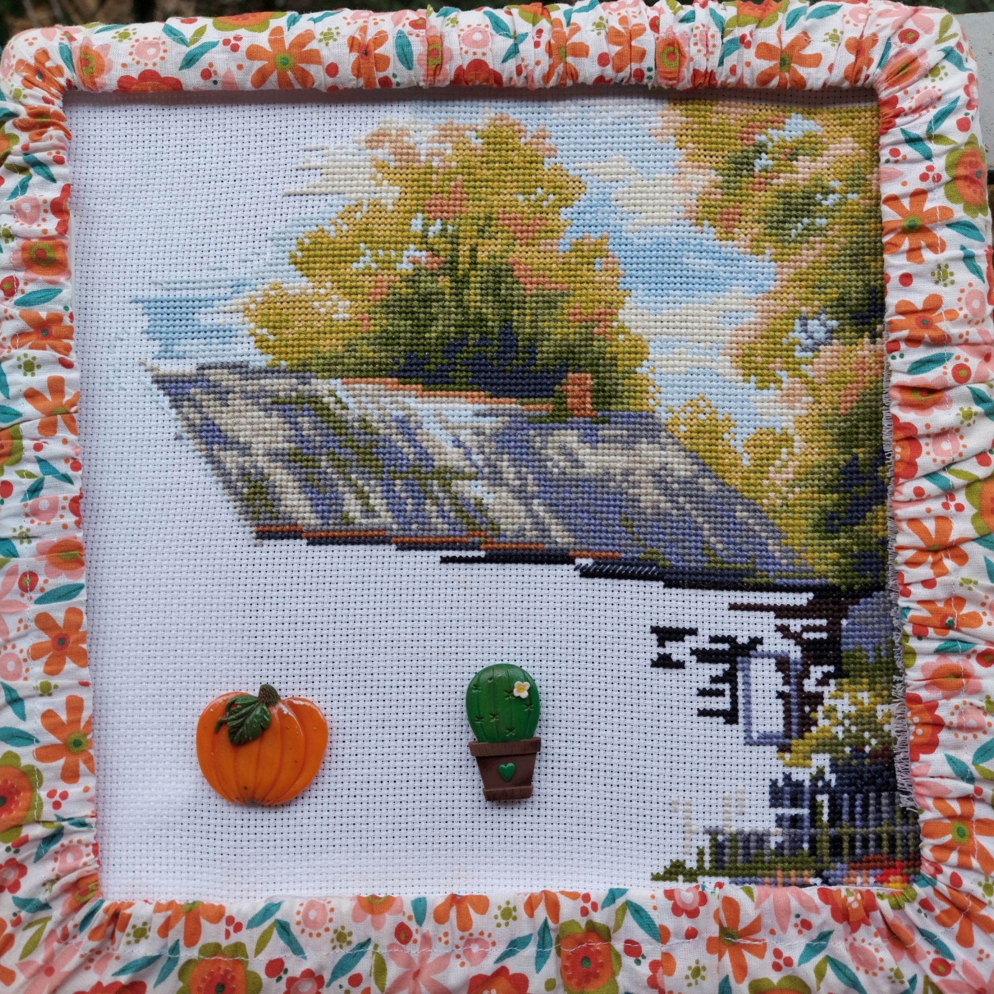 14 сентября 2020 Всем доброго дня! Сегодня хочу показать вам две недавно оформленные работы. Получила их ещё в середине августа перед отпуском, но только сейчас получилось сфоткать. Риолис "Водяная мельница". Вышивала в период с июля 2017 г. по март 2019 г. параллельно с другими процессами. Оформлено в двойной багет с музейным стеклом. "Медовый месяц" по авторской схеме К. Адоньевой. Вышивала в период с апреля по июнь 2020 г. Схема лёгкая, много полукреста, мало бэка. Вышито на одном дыхании. Третьего сентября я побывала на выставке Формула Рукоделия. Выставка оказалась значительно меньше. Многие производители отказались от участия. Тем не менее большая очередь на вход, и к некоторым стендам не подойти. Ехала на Формулу только ради одного участника Натальи Nat_magnit, так как хотелось приобрести новые магниты из наличия. Поэтому сейчас покажу мои приобретения на выставке. К магнитам, конечно, добавились и остальные покупки. Теперь по процессам. Сейчас активно вышиваю Мережку. Был большой участок полукреста (занавески, пейзаж за окном), теперь приступила к домикам. Было/стало (Фото в гаечку) Риолис визуально тоже активно продвинулся, хотя Сага утверждает, что экватор ещё не пересечен. Было/Стало (Фото не для гаечки) На опушке от Золотых ручек. Вышиваю редко. Было/Стало (Фото в гаечку) Аленка-2, pepita, Дикая белочка и 20 других сказали спасибо Поделиться сообщением Ссылка на сообщение