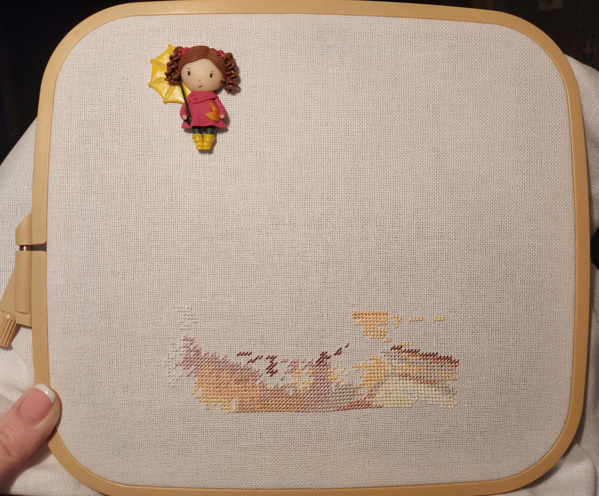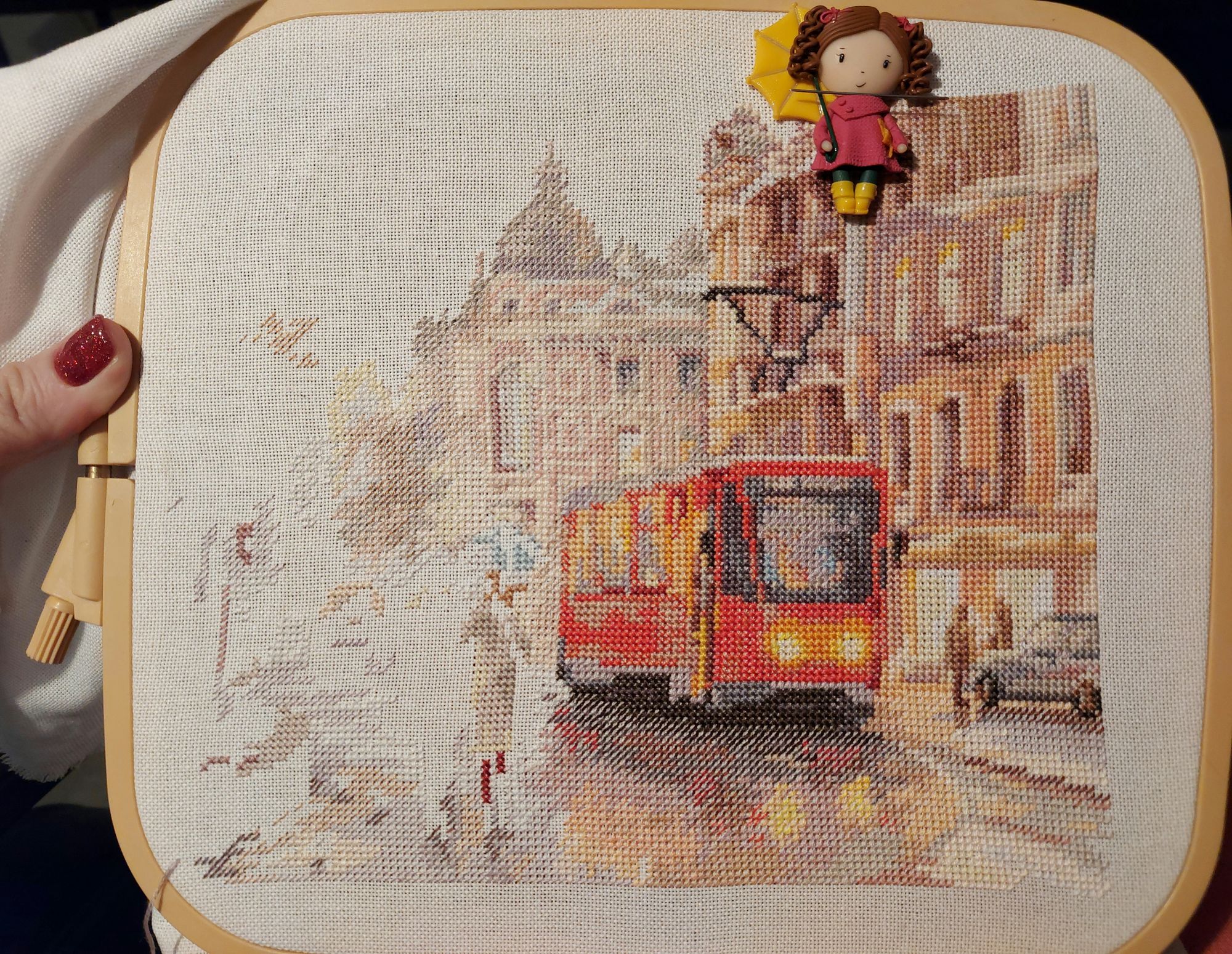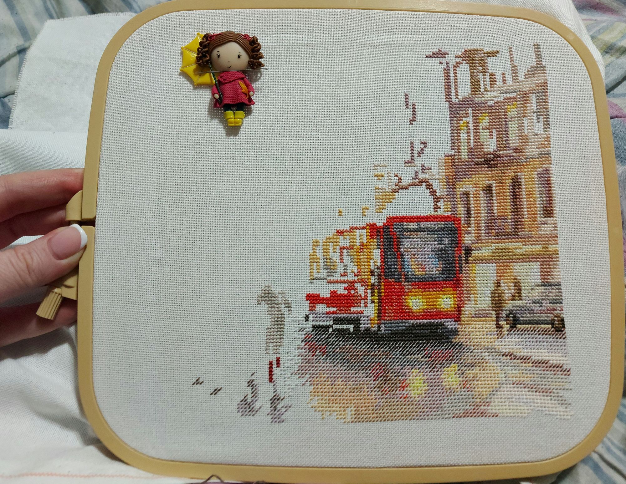 21 декабря 2021 Всем привет! Финиш и покупки в прошлом отчёте показала, а новые процессы - нет. После Деревенского полдня захотелось вышить что-то небольшое, и выбор пал на "Октябрь в городе" от Алисы. В работе всего 11 500 знаков. Если не отвлекаться, можно вышить достаточно быстро. Основу заменила на мурано белого цвета. За три недели декабря, прогресс 40%, что я считаю отличным результатом. Все фото для гаечки, пожалуйста. Второй процесс, который я вышиваю реже - это Coffee time от Риолис. Кухонные сюжеты - моя особая любовь. Основу заменила на флобу 25 цвета льна. Набор для меня сложный, но не схемой, нет, а тем, что надо самой скрутить из мулине ручки для выдвижных полок на дизайне. Пока не представляю, как это сделать. Дойду, буду разбираться. Все фото для гаечки, пожалуйста. В декабре впервые побывала на зимней Формуле рукоделия. Участников мало, быстренько всё посмотрела и поехала дальше. Ну и, конечно же, кое-что купила. Сумку, мыло, маячки для ножниц, шармики для ангелов Евгении Колесниковой. Lenara, Хозяйка смешных зверей, ОлюшКа и 9 других сказали спасибо Поделиться сообщением Ссылка на сообщение