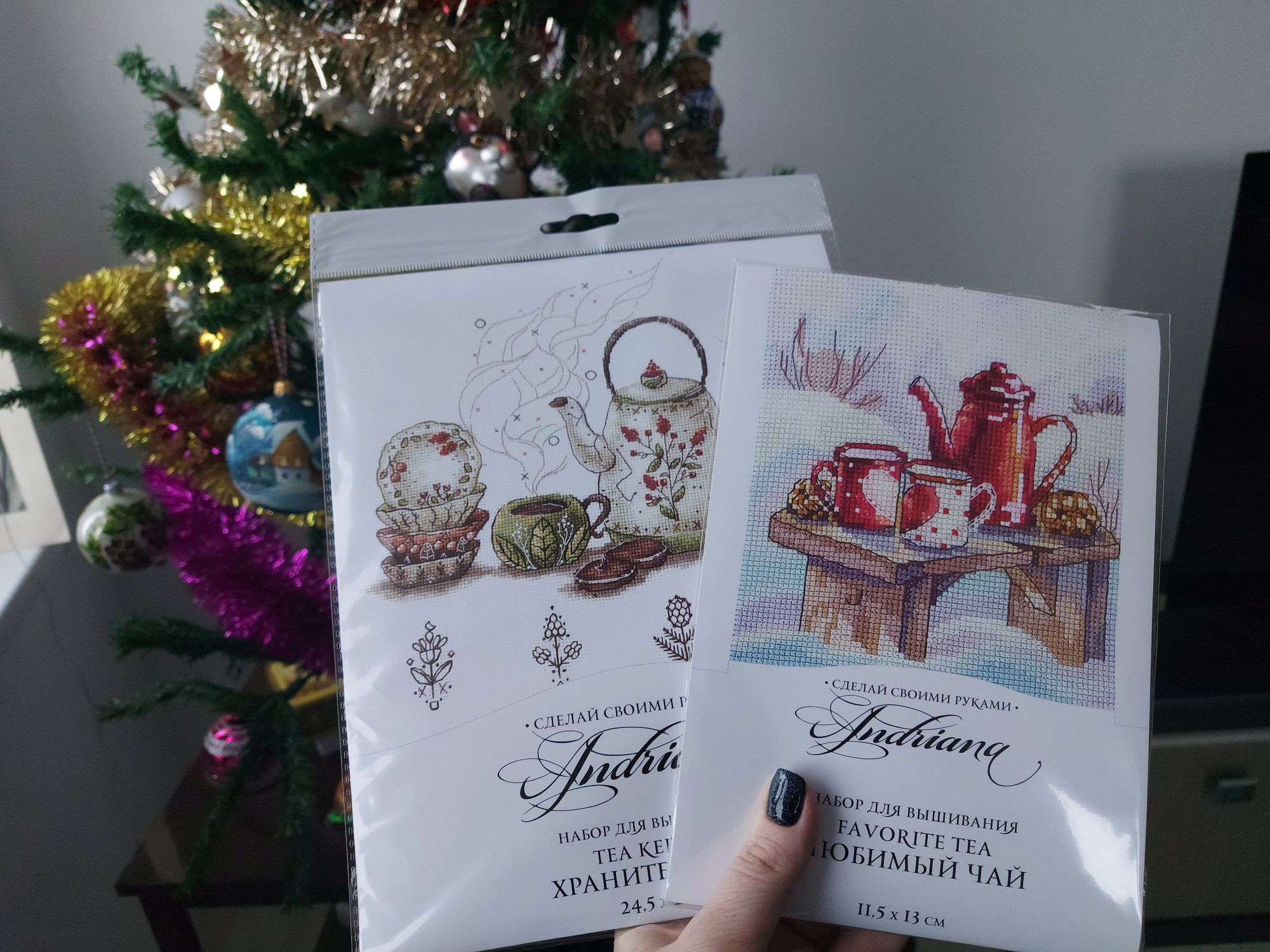 10 января 2022 Всем привет! Пришло время первого отчёта в новом году. Для меня новогодние праздники - это время чудес. Поэтому сначала покажу свою ёлочку и пополнение коллекции новогодних игрушек. Также в этом году впервые повесила на окна гирлянды-шторы и снежинки В конце года впервые поучаствовала в Тайном вышивальном Санте. Впечатления самые положительные. Очень понравилось собирать подарок. А вот какой подарок получила я И подарок от себя себе, который ожидал меня под елочкой Теперь покажу мои продвижения. Активно вышиваю Октябрь в городе от Алисы. Согласно саге, вышито 62%. Активно вышиваю и двигаюсь к финишу. Стало Coffee time от Риолис вышиваю медленно. Хотя сам процесс небольшой, чуть-чуть повышивала, и уже прибавился значительный процент. Готово 15%. Было/Стало Мне очень нравится Village Canal от Dimensions. Тоже активно начала его вышивать. Канву из набора заменила на линду голубой лед. Это основа наиболее приближена к оригинальной. Гаечка есть. Все фото, пожалуйста, в гаечку ОлюшКа, olnikva, Svet-lana и 11 других сказали спасибо Поделиться сообщением Ссылка на сообщение