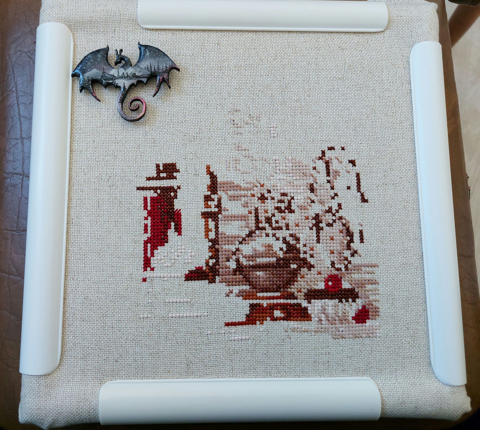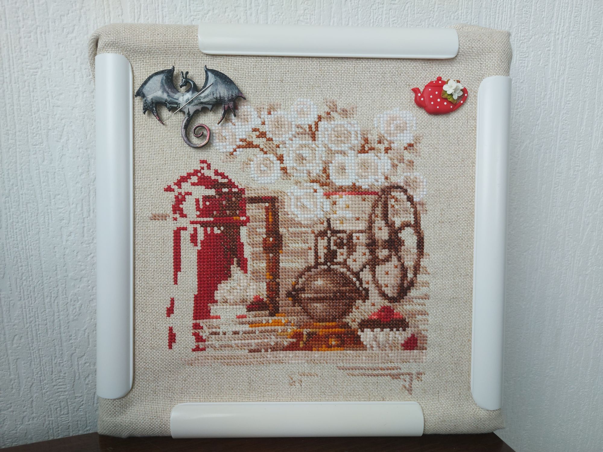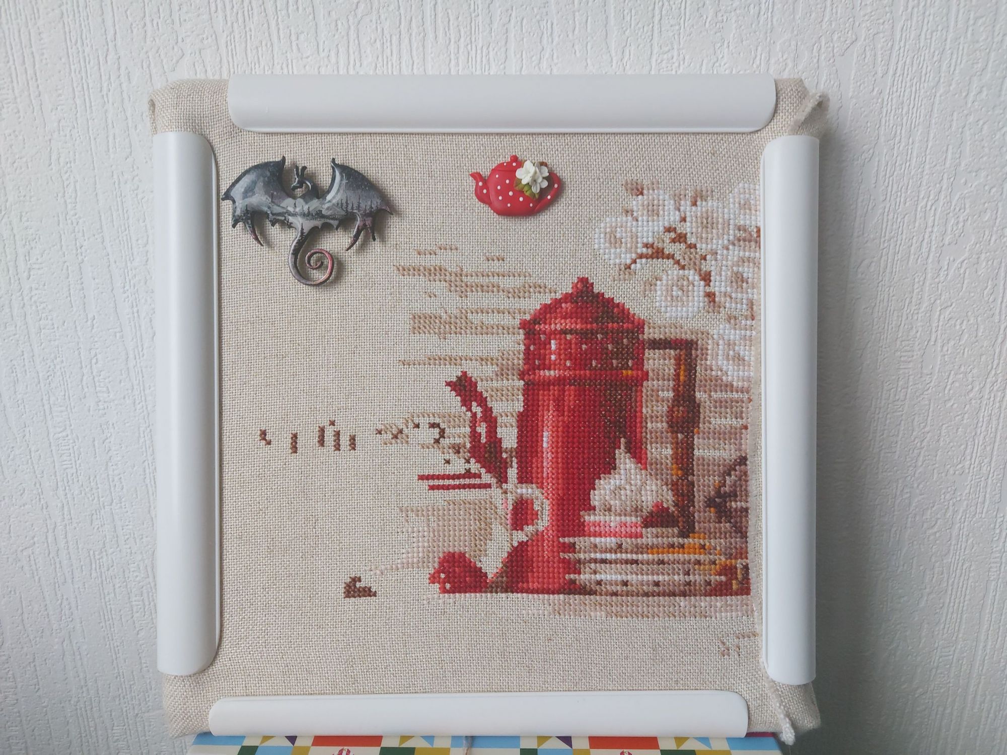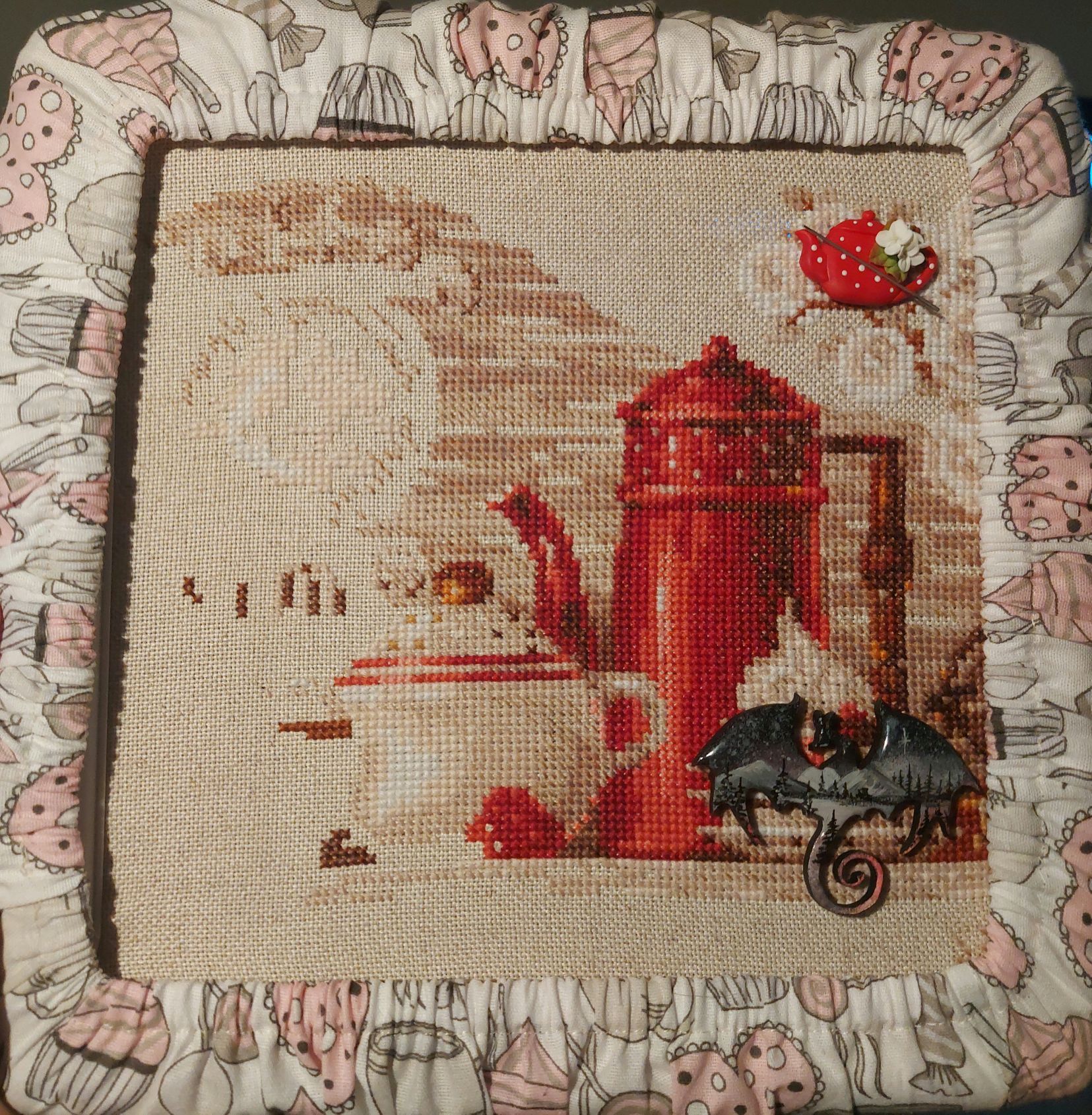 1 марта 2022 Приветствую всех! Сегодня в первый день весны хочу показать, что я вышила за два месяца. На прошлой неделе закончила вышивать Октябрь в городе от Алисы. Сам процесс лёгкий, быстрый, простой, но с огромным количеством несчетного бэка. Хорошо, что его не очень много. Все фото для гаечки, пожалуйста. Отдельно фото готовой работы при дневном цвете Следующий процесс, который я активно вышиваю - Coffee time от Риолис. Вышиваю легко и быстро. Согласно саге готово уже 40%. Было/стало Также начала параллельно вышивать и Tea time от Риолис. Впечатления самые положительные. Как видно по предыдущим фото я приобрела турецкие снапы calin и начала на них вышивать. Натяжка хорошая. Приятный цвет. Из-за простуды на Формуле рукоделия в этот раз не была. По моей просьбе мне на выставке купили магнитик от nat-magnit. Хозяйка смешных зверей, Selenia, Cvett и 10 других сказали спасибо Поделиться сообщением Ссылка на сообщение