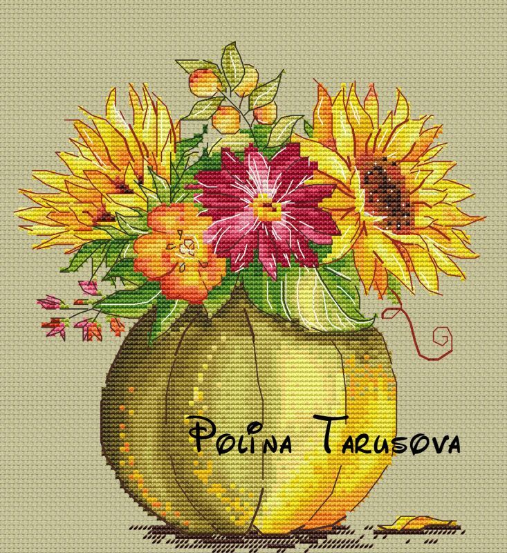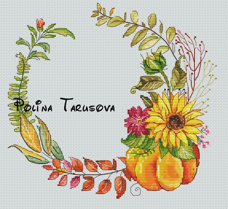 21 сентября 2018 Венок с тыквой. Размер 131х124 крестика, 40 цветов, 6 блендов из них Поделиться сообщением Ссылка на сообщение