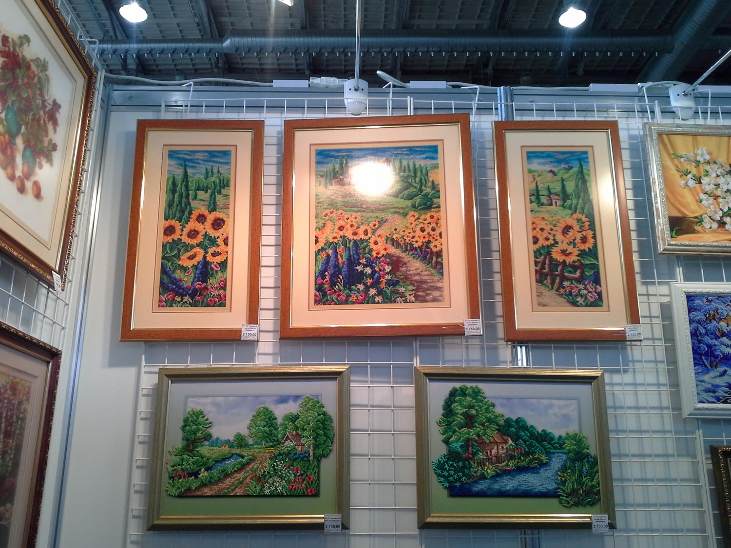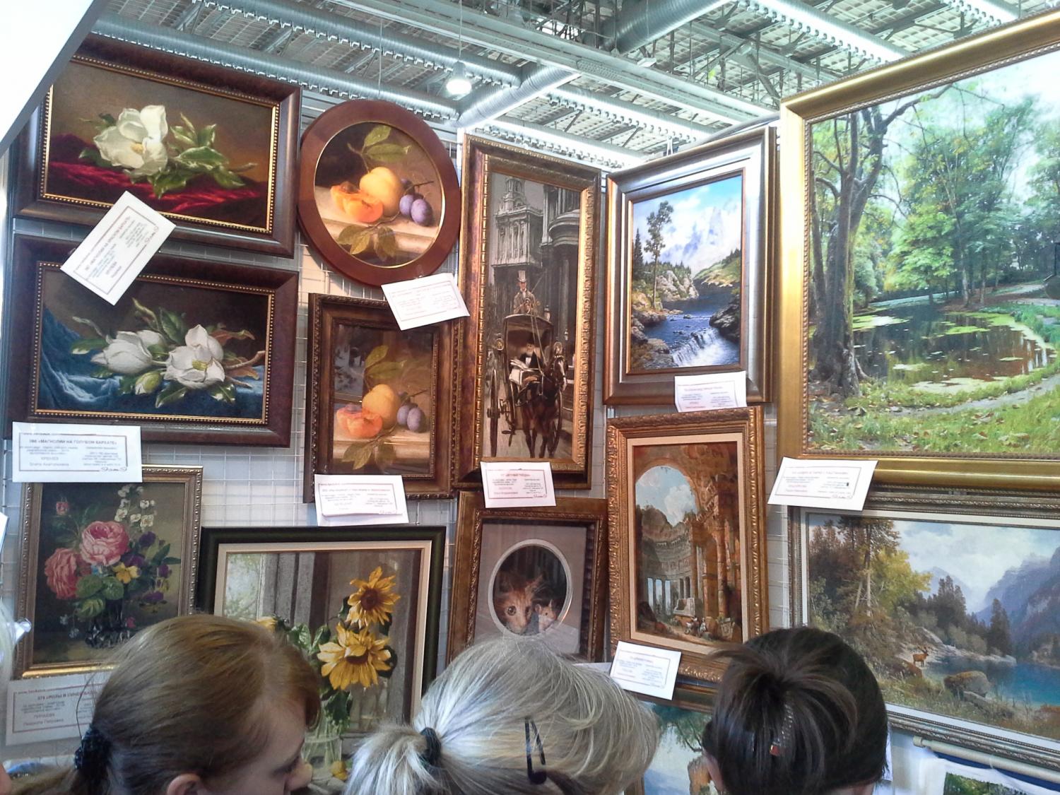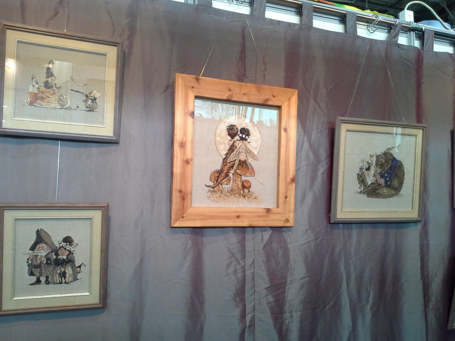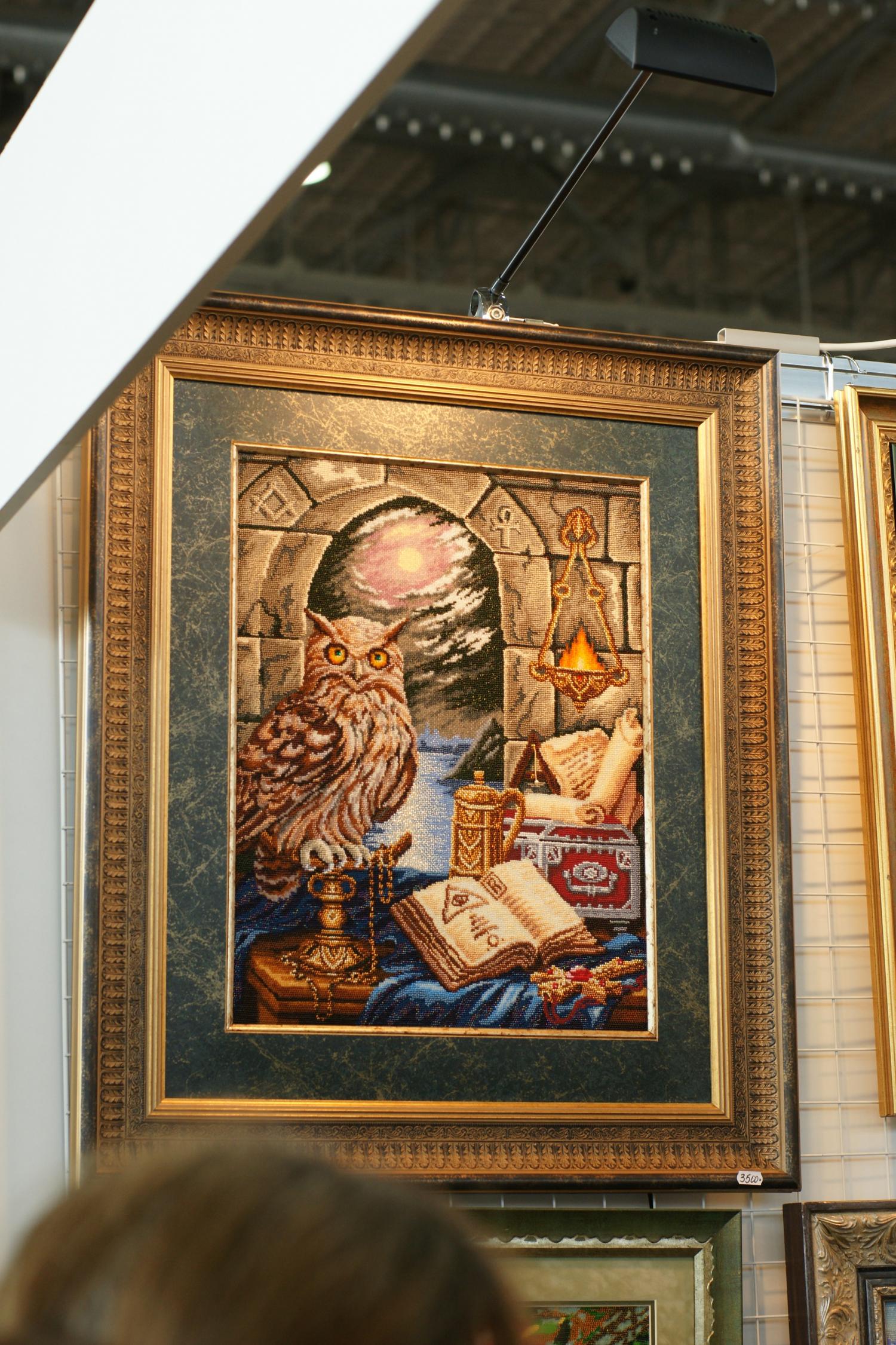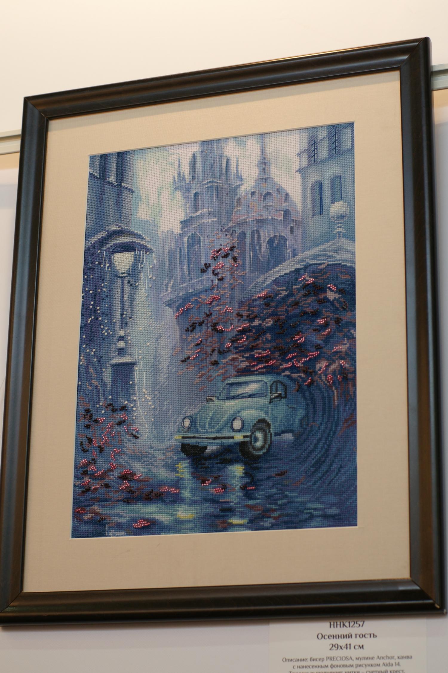 2 октября 2014 Итак, мой фотоотчет по формуле рукоделия. С меня фотограф не очень хороший, как смогла, не судите строго... Все стенды были очень красивы и не обычны, приятно было видеть сразу столько работ и людей увлеченных этим! Больше всего мое внимание привлек стенд Нова Слобода, работ было не так много, но зато какие! Влюбилась в вышивку "Осенний гость", обязательно вышью себе такую! Красивые работы с девушками-африканками, но частичную вышивку бисером не люблю, где все напечатано, а тебе надо добавить несколько бусинок и работа готова, по мне так лучше не вышивать, а повешать постер с такой картинкой, а если вышивать, то уже вышивать все, но это только мое мнение Понравился триптих с видом Питера, правда на фото они по отдельности, чужие головы не давали сфотографировать в полном объеме, а к самим работам еле пробилась, думала, что задавят Поэтому многие фото обрезаны от посторонних людей И конечно меня поразила вышивка на пробке! Очень интересно и необычно! Интересные работы у Риолиса, раньше я не видела у них наборов с напечатаным фоном, либо недавно этим занялись, либо я такая невнимательная Понравились работы, где кроме крестика присутствуют другие элементы: фетр, ленты, освежает Необычные дизайны у Nimu?, но это не для меня, себе бы такие картины я не стала вышивать, но работы выделяются, совершенно другой стиль Тэла Артис. Очень понравилась Одри и круговой формат вышивки, но как это вышивать, я просто не представляю... И поразила меня работа под названием "Озорной Тигренок", на напечатанный рисунок приклеить несколько страз на брови, уши, пару полосок и набор готов... выглядит ужасающе... Понравились работы Нитекс, серия игральные карты, к сожалению близко работы сфотографировать не удалось, попала в какой-то пик, была толпа народа Увидела там многострадальческий всеми набор с леопардом на камне, если не ошибаюсь "Под луной", красивый, наверное переделали его. Также интересные наборы по мотивам картин Гогена и Пикассо, меня зацепило. Ах, да, дети в бочке как я поняла всем очень понравились, как мне сказали, разобрали в первый же день. На этом стенде фото самые ужасные, засвеченные что ли. Прошу прощения Алиса. Без комментариев, просто очень красивые цветы, в них я влюбилась... МП студия. Не понравилось оформление триптиха с подсолнухами, смотрится не так, слишком большой багет и паспарту, в каталоге я в них влюбилась, а увидев в живую как-то разочаровалась... Интересные работы с напечатанным фоном на канве, и метрики понравились, надо будет приобрести! Лавочка Фондучка. Не знаю, кто это вышивает, но точно не я. Да, работы как нарисованные, даже не подумаешь, что это вышивка крестиком, но колличество цветов и чистый прогон схем меня пугает... Чуть не забыла, в начале я писала, что все стенды были красивые и интересные, я забыла про один, это Радуга Бисера. Я не поняла, что это было, голые стены на которых висит несколько маленьких работ... Может коненчно у них случились проблемы, картины не приехали вовремя, хотя вроде фирма московская, или еще что-нибудь, но могли бы завешать все стены хотя бы наборами или плакатами. Этого я не поняла. Нашла вышивку на деревянной шкатулке Дальше конечно не про вышивку, но меня это поразило: Мужской hand-made. Поделки из дерева, кузница, обвязывание городских объектов и дедушка, который вышивал Гусёна, ns-milkevich, cllepa и 31 других ска