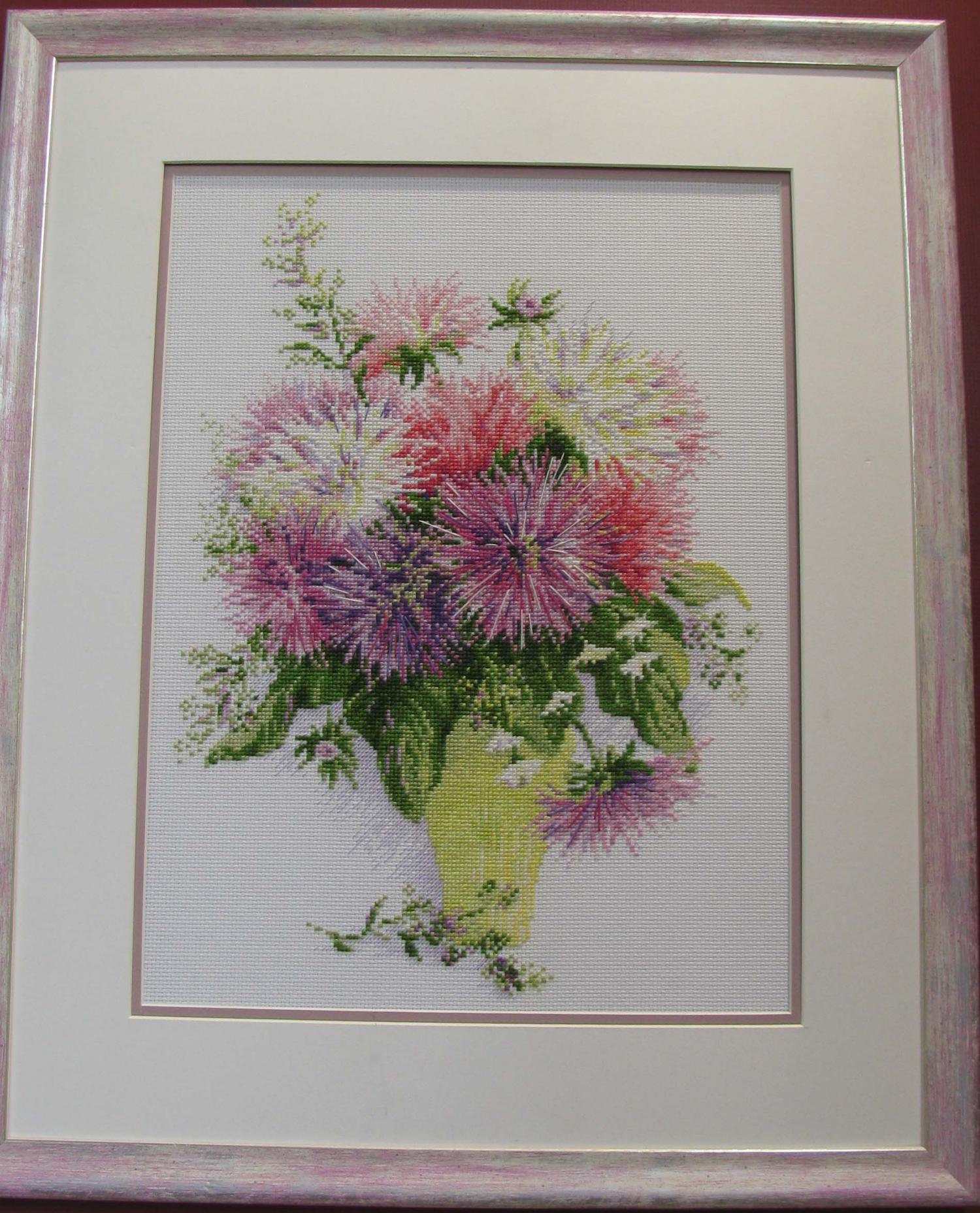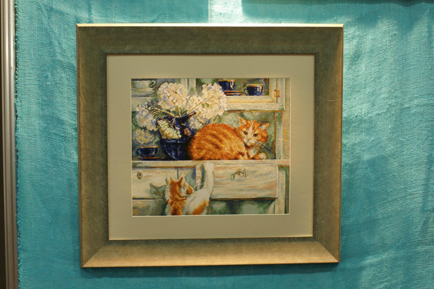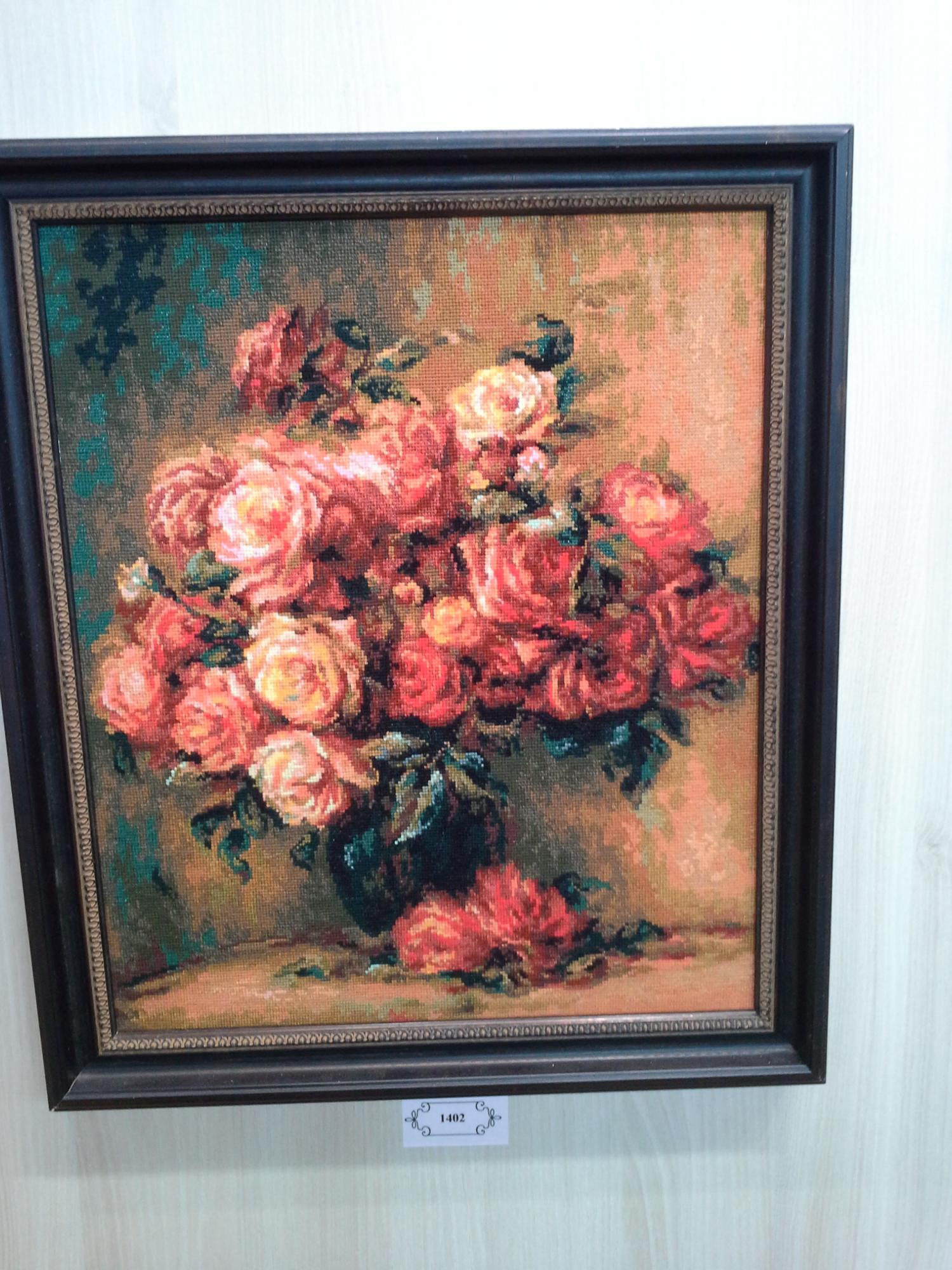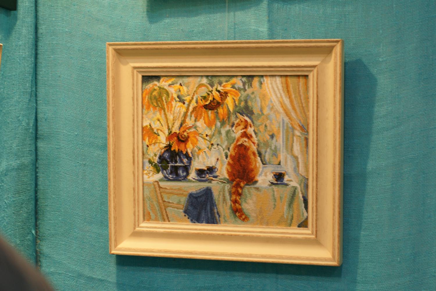 29 сентября 2014 Побывала вчера на выставке (надо сказать первый раз!) - эмоций масса! Очень много понравилось, на что-то взглянула совершенно новыми глазами. Список желаний вырос до неприличных размеров, но (и здесь я собой горжусь!) я ничего не купила! Помогло то, что преднамеренно взяла денег только на дорогу и перекусить, а также осознание, что "в Димшопе дешевле!" Правда думаю, что покупка многих наборов из этого списка - дело времени И мой небольшой фотоотчет (сразу прошу прощения за некоторые повторы). 1) Риолис очень порадовал! Понравились и последние новинки, и не совсем уже новинки. Причем понравились не только мне, но и мужу, и 4хлетней дочке: (это фото не очень из-за света, но работа очень даже ничего!) По поводу человечков на шаре: придирчиво рассматривала их после комментариев на нашем форуме и, как по мне, в отшиве они совсем не режут глаз, а с расстояния хотя бы полметра выглядят уже совсем органично. 2) Очень понравился стенд Новой слободы. Жирафы - крест, Машина - мулине, бисер, канва с рисунком, Африканки -бисер. Надо сказать, что Африканок оценил даже муж, который в общем-то равнодушен к африканской теме и не очень любит бисер. 3)Nimue покорил! Это что-то с чем-то...Сюжеты конечно на любителя (а здесь таких немало ), но сами дизайны с точки зрения проработки, цветов и т.п. бесподобны. Фото выше было немало, тут добавить мне почти нечего. 4)Очень понравились разработки Панны с лентами и гладью. Обязательно позже куплю и попробую! - это ленты - это гладь 5)Алиса - ну фотографий тут было немало. Добавлю только, что на фото Белые розы(новинка) совсем не впечатлили, а вживую именно они больше всего понравились. Причем так, что обязательно их куплю. Набережная тоже очень понравилась. Натюрморт с тыквой - красивый, но не моя тема. 6)Золотые ручки. Вообще, погуляв по выставке, поняла, что в целом, бисер - не мое. Уж очень меня раздражает его блеск. Понравились только 2 вещи от Золотых ручек, но и те вряд ли буду покупать. 7)Овен несколько разочаровал по-сравнению с фотографиями. В живую мне многое не понравилось. Очень много частичной вышивку, которая в отличие от Новой слободы, мне показалась не органичной (в смысле сочетания рисунка на канве и вышивки) - но это только мое мнение. В любом случае присмотреться стоит - сами сюжеты интересные. Особенно пейзажи (фото здесь тоже было предостаточно, не буду повторяться) 8)Очень понравился стенд Марьи Искусницы. Коты на рыбалке (дочка сразу же попросила их вышить ), цветы ( особенно маки!), пейзаж. Фото есть в сообщениях Lunochka (Мила), не буду дублировать. 9)Ну и RTOшные коты...они классные. Скорее всего куплю себе Черно-белого и того, что сидит на книгах. Кстати последний с успехом может стать частью серии с 2мя панновскими котами гладью. И я даже уже придумала им место В общем впечатления от выставки только самые положительные, а торжество разума, я чувствую, со временем обернется чудовищной местью хомяка... Скажите пожалуйста а какой номер у шара? Спасибо Поделиться сообщением Ссылка на сообщение