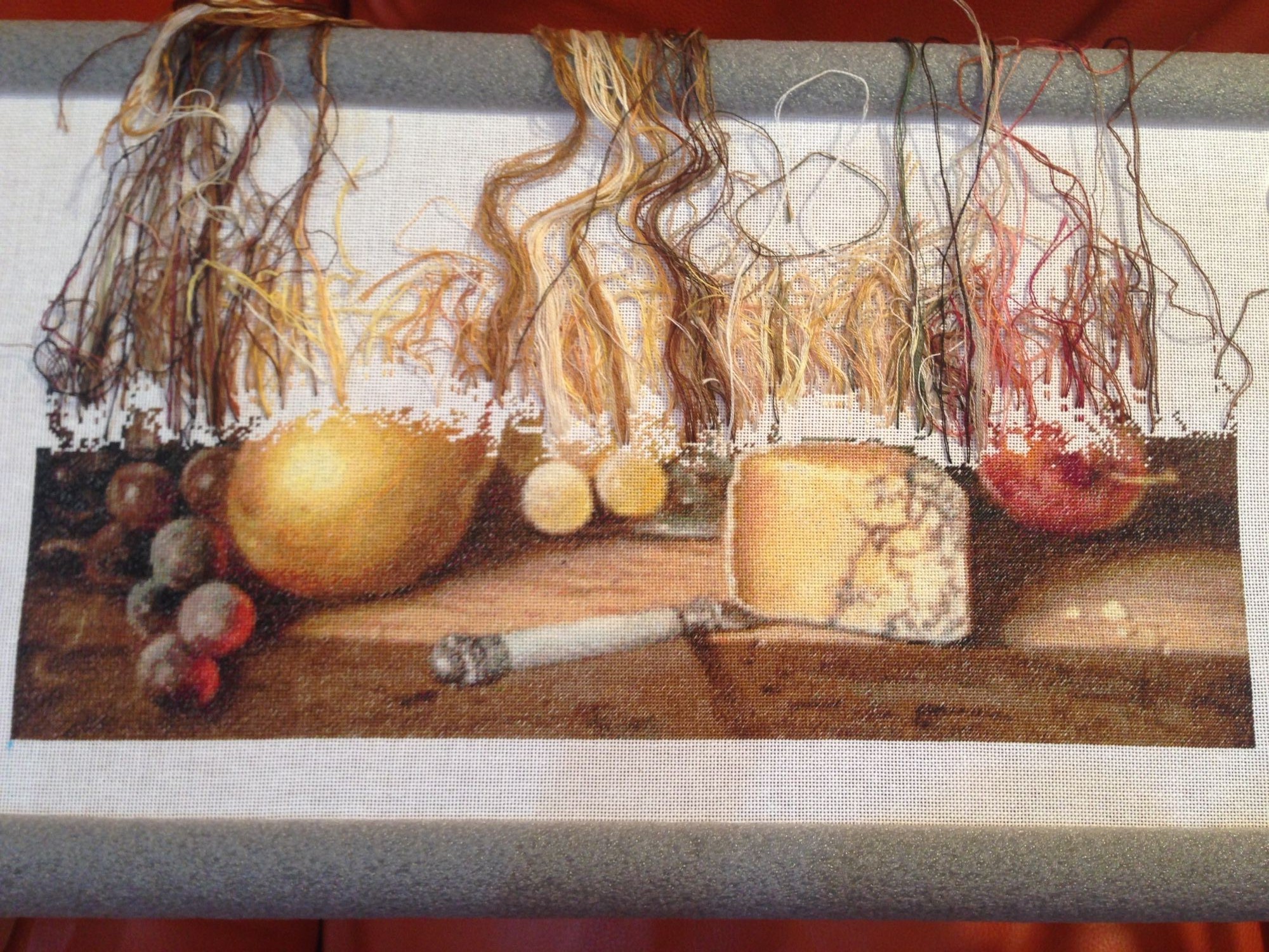 11 сентября 2019 Всем привет! Давно ничего не показывала. Последнее время шью мало, все время какие то дела находятся, то настроение не то, пытаюсь взять себя в руки, но получается не всегда. Несмотря на это начала новый процесс. Моя долгожданная хочушка по картине Дмитрия Власова Натюрморт с малиной. Схема Натальи Синявской Надимы. Специально под этот процесс заказала напольный станок от Дубко эксклюзивной серии с рамой 90 см. Очень им довольна. Очень понравилось крепление планками, держат лучше чем клипсы. Станок очень устойчивый. Короче я счастлива! а это первые ягодки и что есть на данный момент. Основа конгресс страмин 24 каунта, ниточки ДМС Шато пока отложила, думаю сделать ее рабочим процессом и отложить мельницу, или шить по настроению. Вот вроде кажется на работе шью только в обеденный перерыв минут 40-50 максимум, а процесс все равно движется Ксен40, Gala83, nogres и 3 других сказали спасибо Поделиться сообщением Ссылка на сообщение