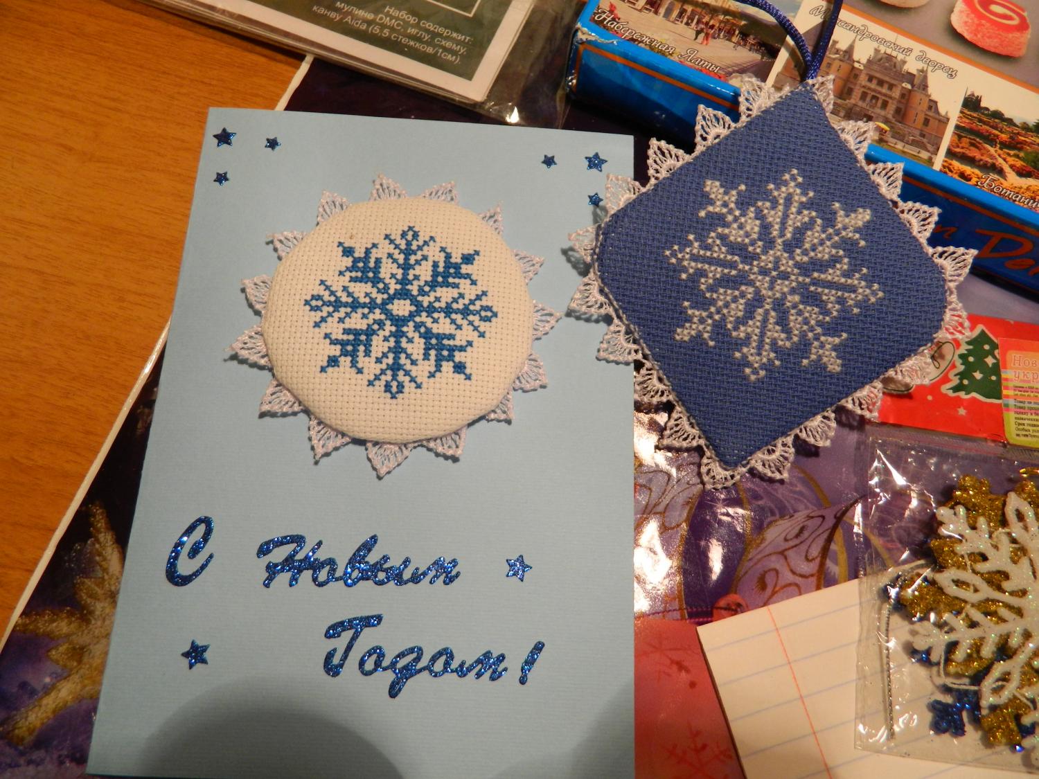 20 декабря 2014 Девочки,только что включили инет,и я бегом сюда!А тут прям открыточный снегопад!и мой сюрприз добрался!Всех поздравляю!уже поздно,завтра все рассмотрю.Оксанчик,спасибо за теплые слова,я конечно как и все переживала,но теперь можно выдохнуть.И своей отправительнице хочу сказать "не переживай,мне все понравится!"я когда иду на почту всегда думаю,пусть в конверте лежит один моточек ниток,я уже счастлива! Annyschka89, Vestenra, Marina_19 и 3 других сказали спасибо Поделиться сообщением Ссылка на сообщение