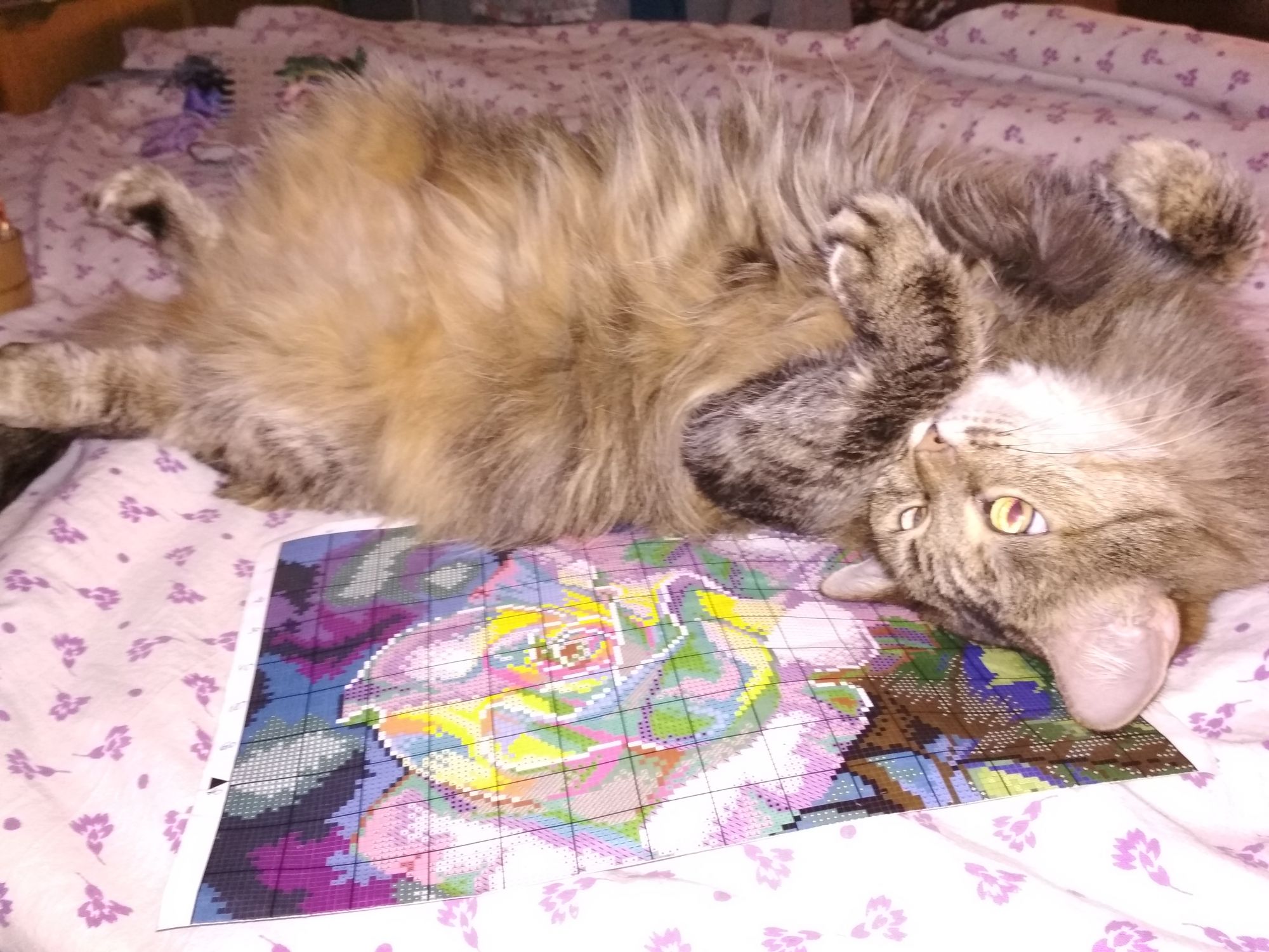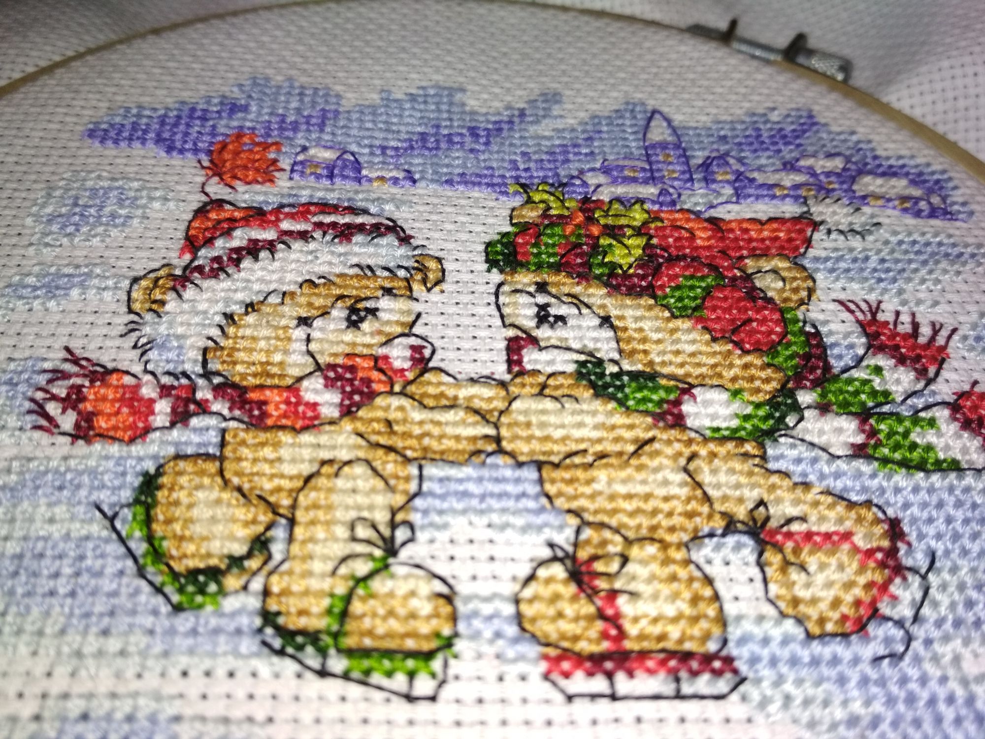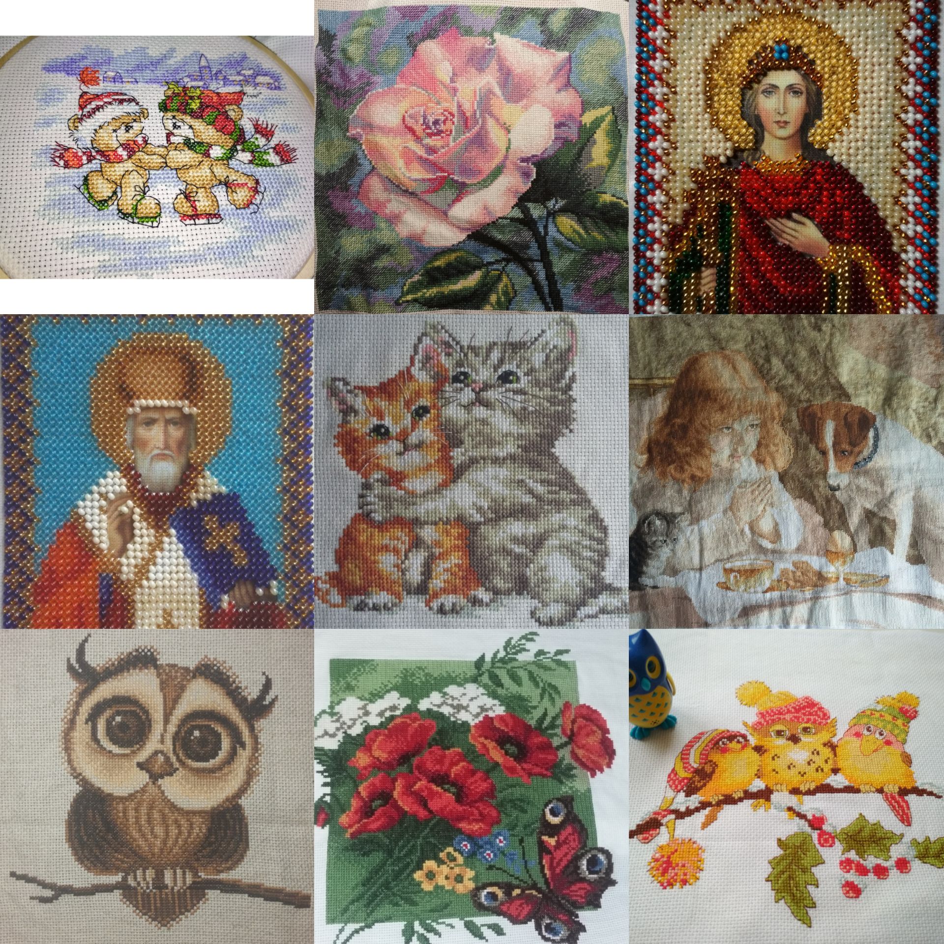 3 января 2018 Привет, пришлааааа, а тут за 2 недели воооооо скоко новостей))) В 17.12.2017 в 01:13, irinka-mandarinka сказал: Приветик, полуночникам! А воскресный отчёт никто не отменял Сегодня один покажу процесс, ну и таить тут нечего, по последним новостям от меня и так понятно, что это Роза! И не верится, что начиная в октябре я ещё сомневалась о её завершении к новому году, хотя очень хотела. Пока принесла не окончательный результат, но до него совсем немного осталось Было/промежуточный/стало: каждые два дня есть, что показать. Учитывая то, что сейчас из-за работы уделяю максимум два часика в день на вышивку, скорость потрясает! Ещё в пятницу мы с племяшкой делали поделки по трудам (технологии) - ключницу. Фото не окончательное, Нютик будет доделывать её в классе А еще меня попутал бес-хомякозный, причём дважды!!! В начале недели иду на работу, денег нет, а времени много. Зашла в хозмаг, чисто случайно (но мне кажется это моя интуиция, так как эта ситуация повторилась вчера). Так вот зашла, а там иконы, серию, из которых я планировала вышить к Николаю Чудотворцу и Вкц Ирины, Пресвятая Богородица и Сергий Радонежский по 330руб.!!!даже в интернет магазине со всеми скидками у меня не выходило такой стоимости. Заняла для зп и конечно купила . Но эта покупка оправдана на все 100%, ведь она соответствует плану на 2018. Но в субботу идя опять на работу и прочитав весь форум, от нечего делать, зашла на сайт любимого интернет магазина. А там лимитированное предложение Распродажа Осеннего пейзажа от Лука-С гобелен, со всеми скидками 1300!!! Но тут было тяжело устоять? Ведь правда? Для доп скидки ещё кое чего подзаказала но то не покажу, это для игры открытки на др в 2018году. Теперь буду менять планы на следующий год, так как осенний пейзаж моя хочушка с того момента, как я активно увлеклась вышивкой и руки уже чешутся. Но ждать ещё до вторника ПыСы: после моего заказа это предложение исчезло и немного моей помощницы Внезапные пополняшки такого плана очень полезны и хороши)))) Ключница очень классная - нам покажешь потом готовую?))) В 22.12.2017 в 23:46, irinka-mandarinka сказал: В воскресенье будет не до отчёта, поэтому несу сейчас небольшую порцию красоты!! Роза ГОТОВА!!! Процесс прошёл все этапы и ощущения. Фон вышился шустро, листва доставила проблемы, а лепестки цветка пробудили нежные чувства и розочка полетела в отшиве. Общие ощущения. Наборы Овна мне нравятся, очень симпатичные у них наборчики. Но в следующий раз канву точно менять буду. Уж очень она мягкая на мой вкус. Нитки чёрные тоже у них не очень. Разной толщины, истончались в процессе. Но другие вели себя сносно. Было/стало стирка и глажка ей предстоит после НГ уже, так как времени сейчас на все не хватает. Позеленения ГАЕЧКИ МОЖНО ЗЕЛЕНИТЬ. И неожиданно перешла на Танцующих медвежат. Схема мне до сих пор не нравится. Половину значков под бэком не видно. Но что получается в итоге очень нравится. Фото по порядку (первое было) :  Что ещё произошло за эту неделю!? Получила свою давнюю хочушку. Вот моя прелесть за ней спрятаны три наборчика с открытками Ранее писала про подарки на работе. Это я на их фоне Из кошачьих сегодня принесла Снежку А еще я определилась с планами на следующий год. Надеюсь все успеть Если дошью медвежат покажу их во вторник ибо это мой крайний выходной будет в этом году Что я могу сказать - роза просто шикарная, прям хоть беги и ищи таку