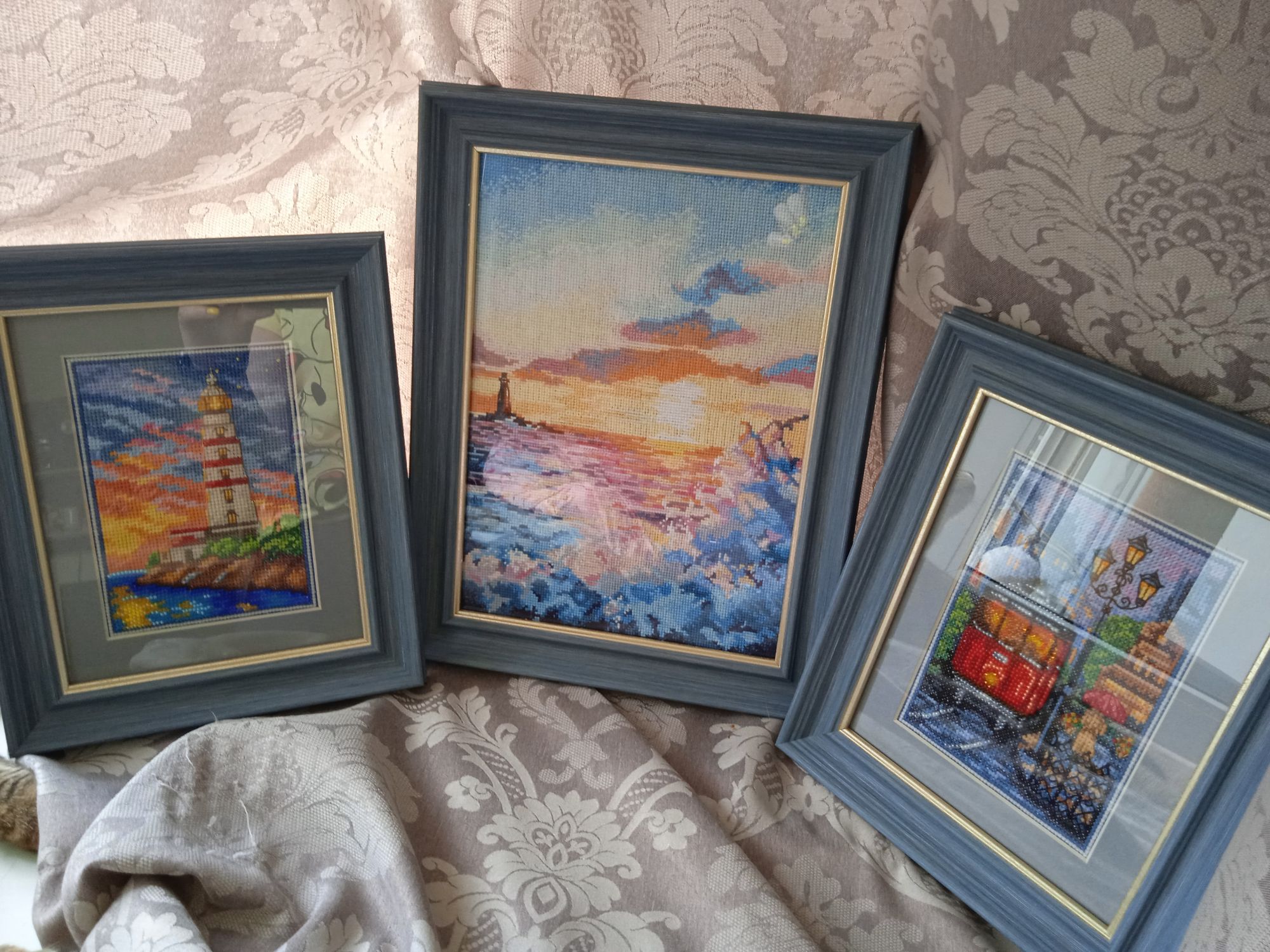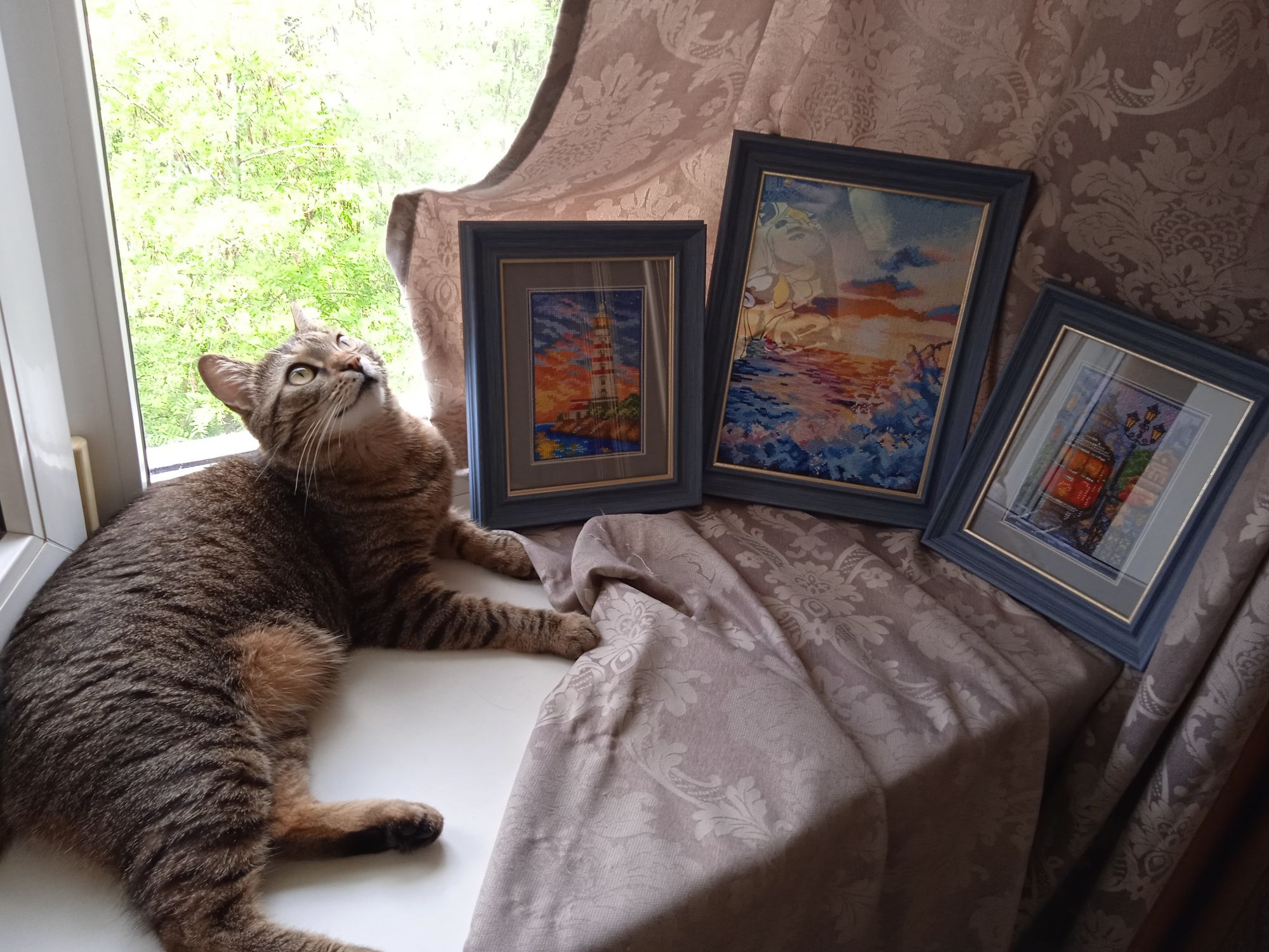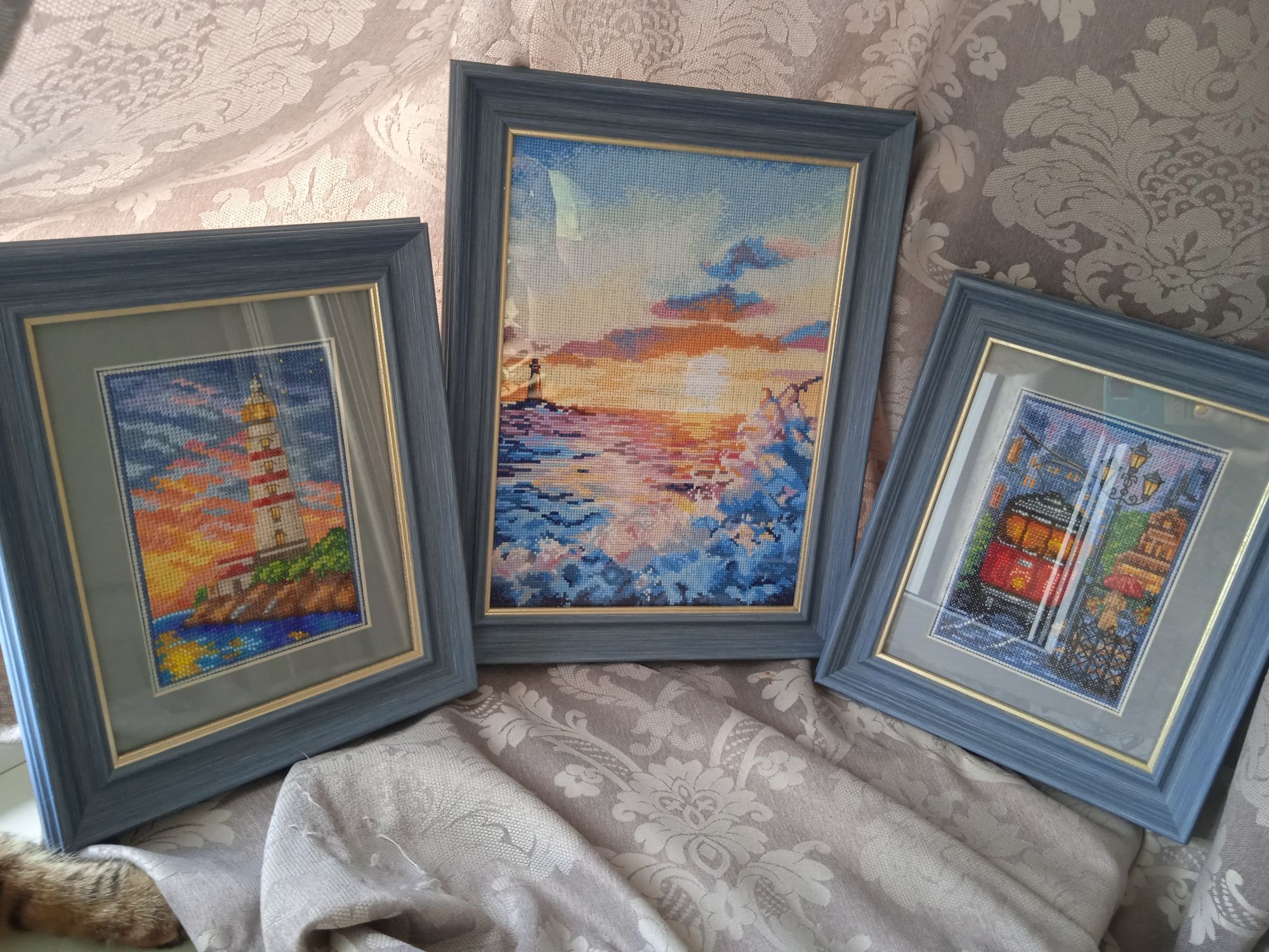 15 июня 2022 1 час назад, Juliay сказал(а): Ух ты, Ириш, здорово получилась! Отлично смотрятся вместе! Уверена, что родителям понравятся картины! Ну и главная ценительница твоих работ - красотка! Без неё никуда. Обнюхала и легла чтобы фотосессию наблюдать 1 час назад, Juliay сказал(а): А что за багетка, я иногда бываю в Ставрополе, может пригодится. На Буйнакского. Но по срокам у них от 1,5 недели и больше. Мои 3 делали. Но там багет был под заказ и я сказала, что не тороплюсь 58 минут назад, 19199707770 сказал(а): Ириша! В Галерее уже «чмокнула» все эти работы - хороши очень- очень! Оформление такое спокойное, строгое, на мой взгляд самое подходящее всем работам! И, конечно, родители будут довольны! А нам придётся подумать о переезде в город с такими чудесными мастерскими Спасибо большое! Старалась подобрать так чтобы и работы по отдельности гармонично смотрелись и вместе были в тандеме. Тем более что трамвайчик немного по сюжету выбивается. Но две бы так насмотрелись вместе 44 минуты назад, Nadinka-Blondinka сказал(а): Ириш, оформление замечательное, получилось гармоничное трио! Хорошая багетка - это большое дело! Ну а ряд крестиков в каждой, наверное, закрывают. В некоторых даже несколько рядов.. Щен очаровательный! Он хочет быть законченным побыстрее! Честно больше не садилась пока за него. Зато активно шьются две осени. На оранжевые краски потянуло 10 минут назад, kolpluna сказал(а): Ирочка, какая молодец! Отлично оформились работы. Родителям точно понравится. Спасибо 19199707770, Лана05, kolpluna и 2 других сказали спасибо Поделиться сообщением Ссылка на сообщение