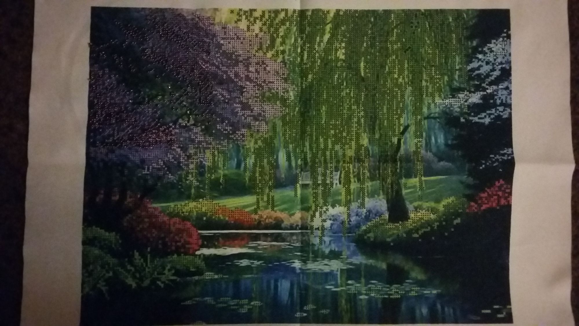 13 июня 2017 Привет! Кажется у меня пояаляется хоть какая-то система в отчетах Вроде как раз в неделю получается показывать свои продвижения. Начнем Маки. Мама влюблена в эту картину. Вчера весь день вокруг нее ходила. Просит быстрее ее сделать. Но я не тороплюсь! Уж очень быстро хочется начать повышивать что-то другое. В среднем три-четыре ниточки в день вышиваю. Было/стало и поближе Филимошка. Очень люблю его! Этот взгяд поражает. Олечка, действительно под этими глазами все вышивается быстрее. Было/стало . А под такими взглядами я обычно вышиваю Котята. Очень не прихотливая работа. Единственное, первый раз стали краски подсыхать. Но немного водички все исправляет. Плакучая ива. Так спешила попробовать, что забыла сфоткать внутрянку. Нравится что бисеринки одного размера и они при зашивке не болтаются, а стоят торчком Не нравится что пока не представляю итога, а для меня это очень важно. Картина пока выглядит размытой. Подумываю с полной зашивкой взять работу. Кисуля, Людмила Мизина, ОльгаТольна и 15 других сказали спасибо Поделиться сообщением Ссылка на сообщение