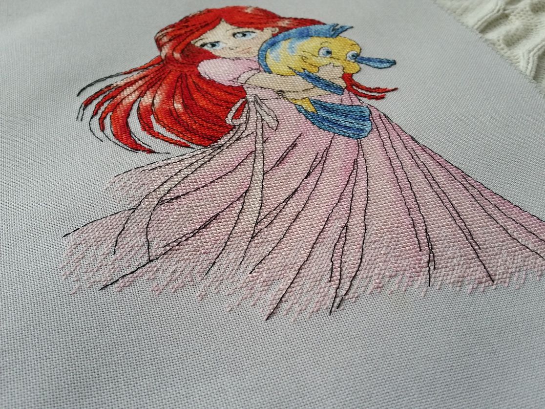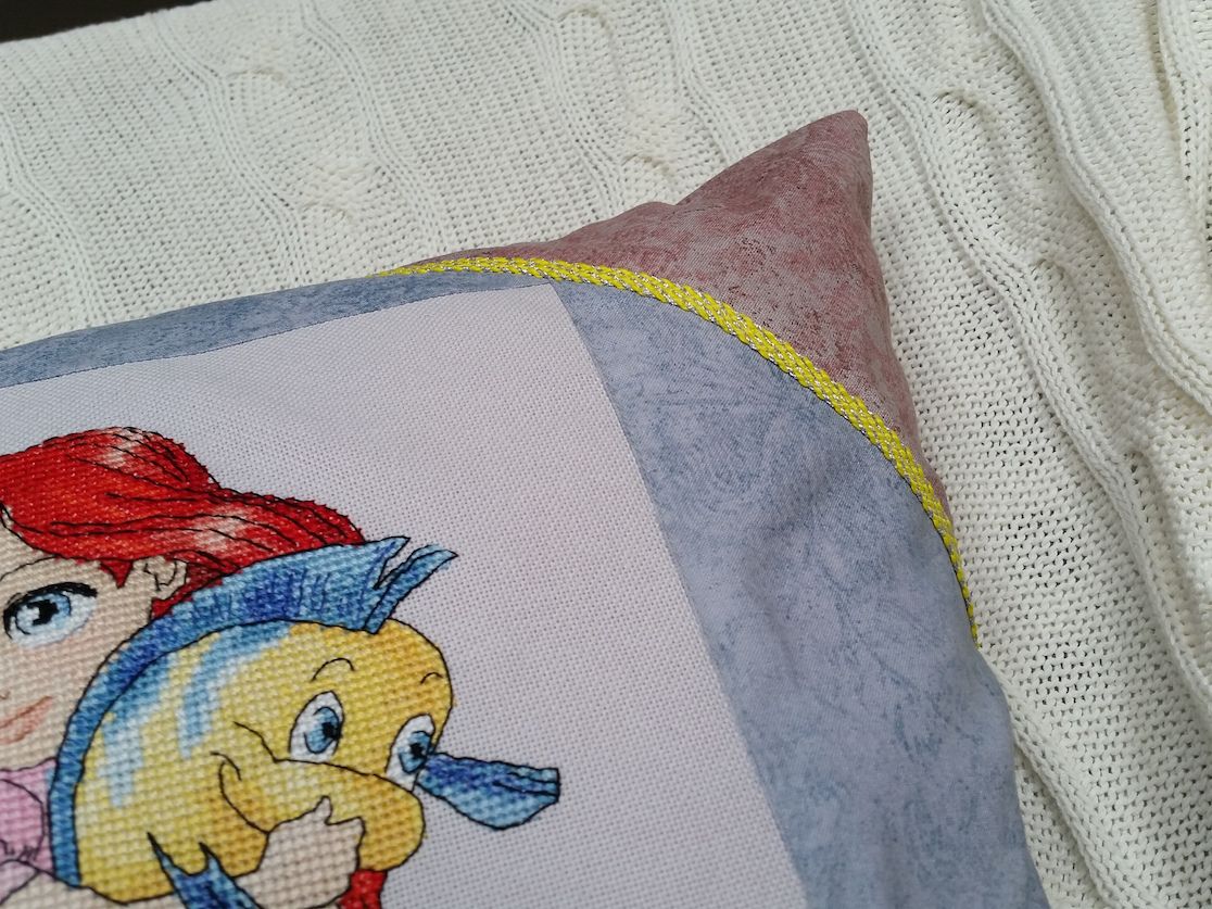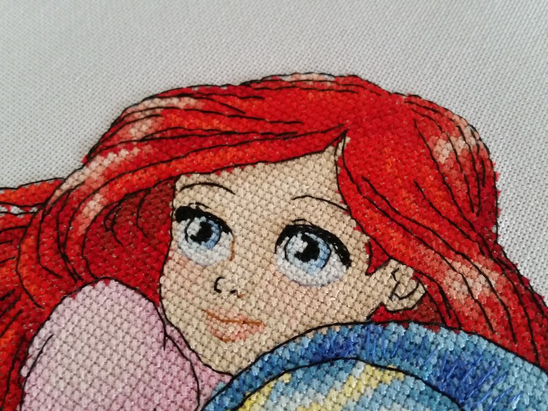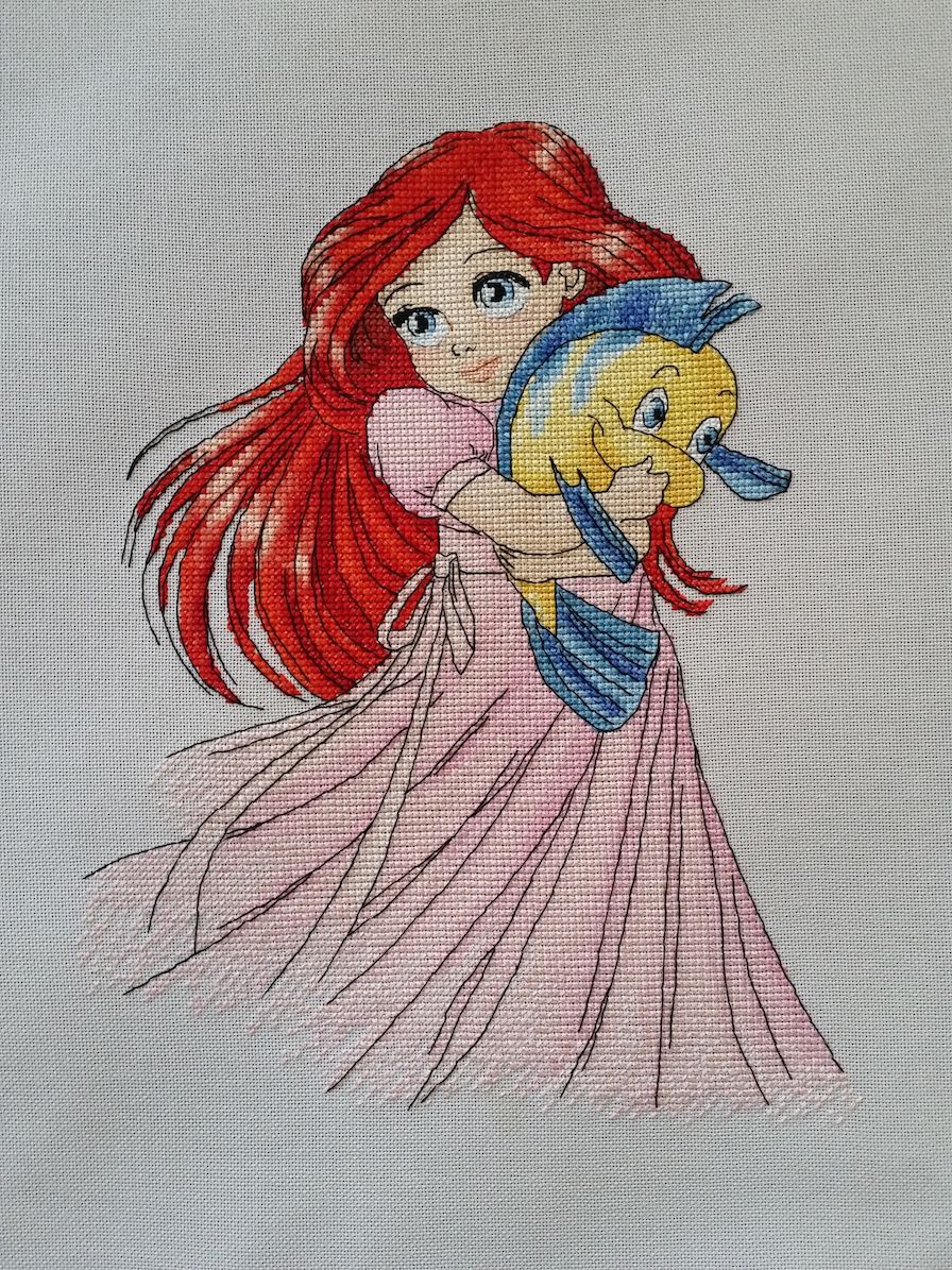 21 августа 2016 Всем привет! Воскресенье закончилось совершенно неожиданно: часам к одиннадцати вечера я вдруг поняла, что сегодня же отчет должен быть... А мне казалось, что до него еще так долго... А пугало меня совсем не то, что показать нечего, и даже не то, что завтра снова рабочий день и до 1го сентября остается полторы недели, а количество фотографий, которые нужно к отчету разобрать и выбрать, какая же из десятка одинаковых лучше! Вот скажите, я одна такая больная на голову? Неделя выдалась запойно-рукодельной. Причем не сказать, что больше времени уделяла шитью-вышиванию, но эффективность этого какая-то повышенная была. Как результат 2 завершенных процесса, сшитая юбка и подушка. Отчасти виноват один маленький и очень симпатичный персонаж с букетом: эта малявочка настолько позитивная, что мгновенно настраивает голову на решительно-рабочий лад даже тогда, когда кажется, что "ничего я не хочу!" И кстати - в число тех двух завершенных процессов она не входит...пока! Итак, Алиса, "Желаю счастья!" - что имеем на данный момент: Далее гвоздь недели: Ариэль от В.Ивченко - она завершена!!!!! Я одолела бэк, причем довольно быстро: всего за 3 ночи (Оля, еще раз спасибо за утенка! Если б не он...). Шила я его приблизительно, стараясь попадать в смысловые чек-пойнты. Если бы это была картина, то возможно стоило бы заменить бэк на выкладную нить, но т.к. это подушка, то этот вариант отпал вместе с длинными бэковыми протяжками. Поэтому кое-где линии и не идеальны, но в целом, по-моему, все удалось. И надо вам сказать, дамочка на редкость хороша! Причем в который раз говорю вам спасибо за то, что поддержали меня в выборе основы: цвет великолепно сочетается с дизайном, убирая лишнюю резкость и мультяшность изображения и добавляя естественной яркости и нежности. На "мертвенный эффект", которого я так боялась, нет ни малейшего намека. Оформлением занялись немедленно: в тот же день сгоняли с детьми в наш любимый рукодельный и выбрали ткани на наволочку (Настя такая гордая - активно принимала участие в обсуждении!) и следующая ночь была посвящена ее пошиву. Немного рабочего процесса И готовый результат: Маша AnyKeyGirl, спасибо тебе за такую конфетку! Она стала для меня очень полезным и интересным опытом, отчасти даже вызовом, а главное историей со счастливым концом - результат мне очень нравится, а уж как довольна "целевая аудитория", и словами не передать! Ну а дальше..решила я, значит, немного отдохнуть и пока Женя мне ниточки на морской пейзажик перематывал на бобины я достала Совиный коврик-подушку от Вервако, с удовлетворением отметив, что вроде в отчет включить можно будет (если вы помните, то в последний раз я их где-то на середине готовности показывала). Вот это я собиралась показывать сегодня с комментарием "надеюсь через неделю завершить"... А потом случилась суббота. И дождик. И мы остались дома. И руки сами как-то к совам потянулись...В итоге той ночью я с чувством невообразимой гордости собой и вопреки сложившейся за последнюю неделю традиции спала (!!!), а на столе в рулончике из полотенца сохли готовые совы!!! Мой первый коврик готов. Впечатления от техники - забавный опыт, но не скажу, что прямо мое. Посмотрим теперь на эксплуатационные свойства и если понравится, то возможно когда-нибудь и повторю. Что еще вам рассказать... про Зоопарк? Фуу, уже было, скажете вы. И я подумала пр