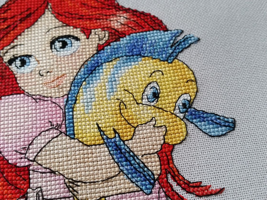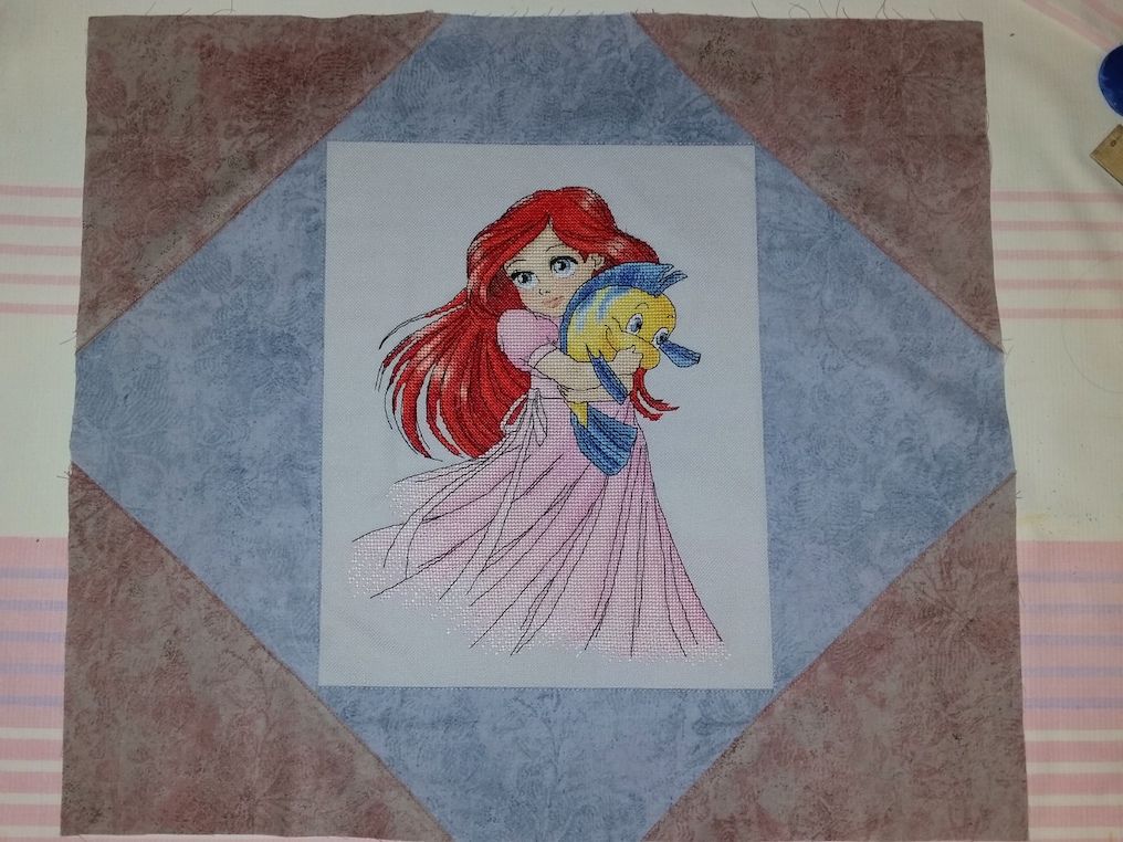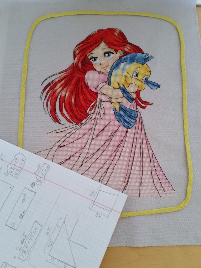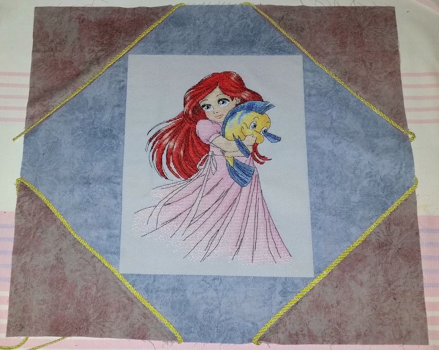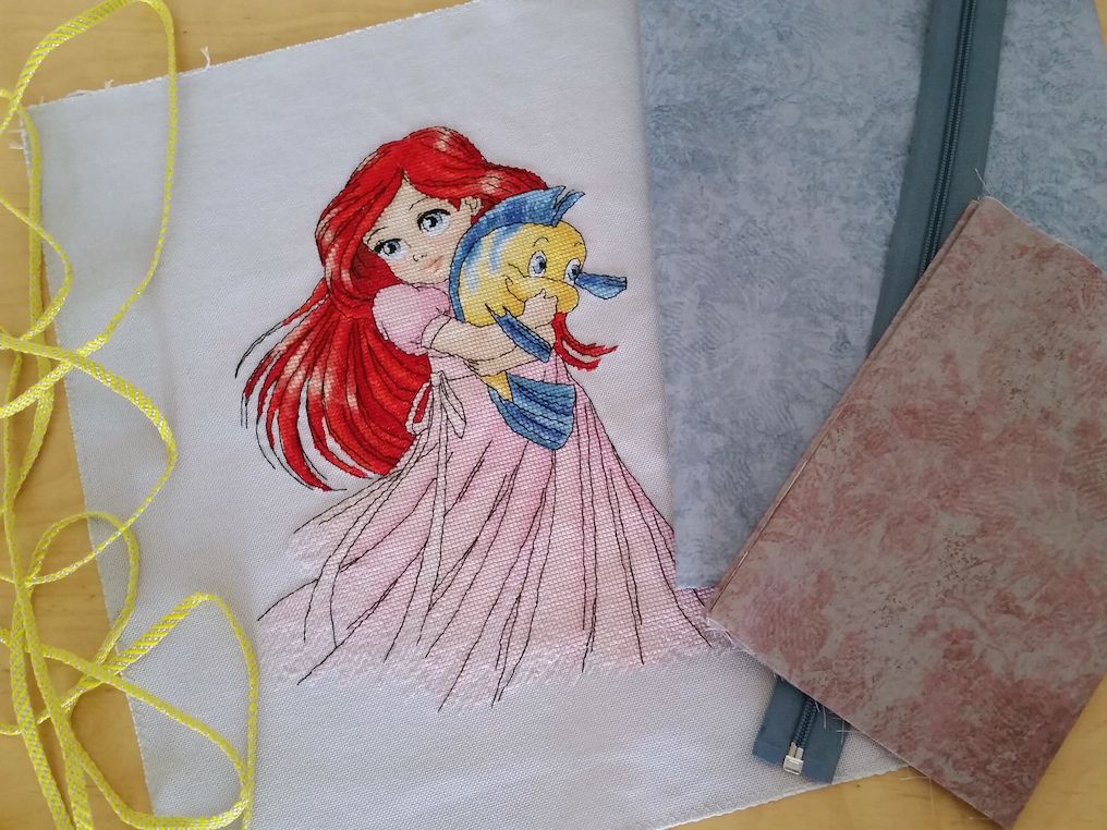 21 августа 2016 Всем привет! Воскресенье закончилось совершенно неожиданно: часам к одиннадцати вечера я вдруг поняла, что сегодня же отчет должен быть... А мне казалось, что до него еще так долго... А пугало меня совсем не то, что показать нечего, и даже не то, что завтра снова рабочий день и до 1го сентября остается полторы недели, а количество фотографий, которые нужно к отчету разобрать и выбрать, какая же из десятка одинаковых лучше! Вот скажите, я одна такая больная на голову? Неделя выдалась запойно-рукодельной. Причем не сказать, что больше времени уделяла шитью-вышиванию, но эффективность этого какая-то повышенная была. Как результат 2 завершенных процесса, сшитая юбка и подушка. Отчасти виноват один маленький и очень симпатичный персонаж с букетом: эта малявочка настолько позитивная, что мгновенно настраивает голову на решительно-рабочий лад даже тогда, когда кажется, что "ничего я не хочу!" И кстати - в число тех двух завершенных процессов она не входит...пока! Итак, Алиса, "Желаю счастья!" - что имеем на данный момент: Далее гвоздь недели: Ариэль от В.Ивченко - она завершена!!!!! Я одолела бэк, причем довольно быстро: всего за 3 ночи (Оля, еще раз спасибо за утенка! Если б не он...). Шила я его приблизительно, стараясь попадать в смысловые чек-пойнты. Если бы это была картина, то возможно стоило бы заменить бэк на выкладную нить, но т.к. это подушка, то этот вариант отпал вместе с длинными бэковыми протяжками. Поэтому кое-где линии и не идеальны, но в целом, по-моему, все удалось. И надо вам сказать, дамочка на редкость хороша! Причем в который раз говорю вам спасибо за то, что поддержали меня в выборе основы: цвет великолепно сочетается с дизайном, убирая лишнюю резкость и мультяшность изображения и добавляя естественной яркости и нежности. На "мертвенный эффект", которого я так боялась, нет ни малейшего намека. Оформлением занялись немедленно: в тот же день сгоняли с детьми в наш любимый рукодельный и выбрали ткани на наволочку (Настя такая гордая - активно принимала участие в обсуждении!) и следующая ночь была посвящена ее пошиву. Немного рабочего процесса И готовый результат: Маша AnyKeyGirl, спасибо тебе за такую конфетку! Она стала для меня очень полезным и интересным опытом, отчасти даже вызовом, а главное историей со счастливым концом - результат мне очень нравится, а уж как довольна "целевая аудитория", и словами не передать! Ну а дальше..решила я, значит, немного отдохнуть и пока Женя мне ниточки на морской пейзажик перематывал на бобины я достала Совиный коврик-подушку от Вервако, с удовлетворением отметив, что вроде в отчет включить можно будет (если вы помните, то в последний раз я их где-то на середине готовности показывала). Вот это я собиралась показывать сегодня с комментарием "надеюсь через неделю завершить"... А потом случилась суббота. И дождик. И мы остались дома. И руки сами как-то к совам потянулись...В итоге той ночью я с чувством невообразимой гордости собой и вопреки сложившейся за последнюю неделю традиции спала (!!!), а на столе в рулончике из полотенца сохли готовые совы!!! Мой первый коврик готов. Впечатления от техники - забавный опыт, но не скажу, что прямо мое. Посмотрим теперь на эксплуатационные свойства и если понравится, то возможно когда-нибудь и повторю. Что еще вам рассказать... про Зоопарк? Фуу, уже было, скажете вы. И я подумала пр