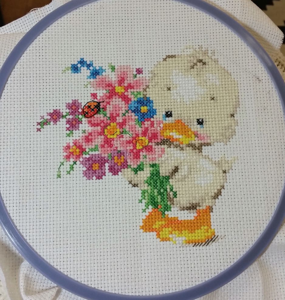 4 сентября 2016 Итак, обещание недельной давности готово быть исполненным, а значит отчету быть! Всем привет!!! Я уже упоминала вчера, что неделя выдалась не очень вышивальной, но на яркий и невероятно позитивный отчет я все же фотографий насобирала! 1. Начну с моего любимого на данный момент процесса: река Дору по схеме Е.Мешковой. Итак, распорола и перешила мост, распорола и перешила кусок мачты (просто фантастически непостижимым образом перепутала цвет на совершенно "не тот"), а также завершила кусочек берега и крыш справа... Одно только предвкушение процесса дарит невероятную радость, а уж процесс, логика построения схемы, цвета... Не устану повторять - обожаю схемы этого дизайнера, у меня с ними полная совместимость! Вот девочки говорили, что для них димовские миниголдики - отдых после авторских схем. А у меня с Катиными схемами наоборот - они для меня отдых, причем очень интересный! 2. Ну и выполняю обещание: Утенок (Алиса, Желаю счастья!) готов и с удовольствием попозировал перед камерой! Встречайте этот невероятный комочек позитива, сумасшедший сгусток положительной энергии, очаровательнейшее существо, неизменно вызывающее улыбку! Немного процесса: и результат: Маленькая капелька дегтя - бэк. Неоднократно слышала, как ругали бэк в алисовских малявках. Теперь убедилась на собственном опыте. Ну непонятно мне зачем в таком простом наборе делать такой зубодробительный бэк! Все не по клеточкам! А главное, я не очень поняла зачем. Тем более на дубовой гаммовской канве... В общем, будь я ребенком, начинающим вышивальный путь, бросила бы все нафиг. А так быстренько взяла швейную иголочку, разделалась с ним и намотала на ус - еже ли что, Насте помочь. Короче позитив-позитив! Оля, спасибо тебе за него большущее-пребольшущее! Что делать с ним дальше, пока окончательно не решила. Если в начале процесса мои домашние говорили просто "миленько", то теперь хотят только в рамочку и только себе (Никому не дарить!"). А у меня-то в голове витали прикладные идеи... Ну в общем пока подумаем. С фотографиями природы и котов сегодня чего-то не густо, так что покажу вам забавную фотографию под условным названием "два барашка" - это дети бабушку в зоопарк возили и мы наконец попали в контактный зоопарк На этом на сегодня все! Всем удачного начала учебного года и скорейшего устаканивания всех расписаний. Ну или просто теплых осенних дней Пока! Гало4ка, apanjul, Путешественница и 33 других сказали спасибо Поделиться сообщением Ссылка на сообщение