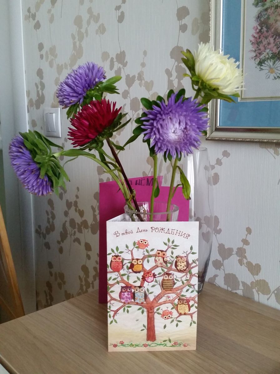 9 сентября 2016 Света Veta, Оля Хельга, Надя, Лена, Наташа Natazai1986, Оля Ole4k@ и Оля olnikva, Ася, Наташа Catopuma, Алия, Ольга Владимировна, Алена, Татуся, Галя, Оля Путешественница, Ярослава, Света VitaViven, Маняша, Наташа PrimaN, Марина, Таня, Маша, Наташа Nata_Struchkowa, Наташа Дикая белочка, Яна, Оля Desha спасибо вам огромное за поздравления! За все добрые слова и пожелания! За то, что сделали этот день еще радостнее! В 8 Sep 2016 at 10:19, Catopuma сказал: Олечка! Позволь мне вклиниться в стройные ряды читателей, гостей твоей темы!... Наташа, добро пожаловать! Тебе прямо отдельное спасибо: наблюдая, как ты читаешь мою тему с самого начала, перечитывала некоторые давнишние отчеты с удивительной смесью чувств от ностальгии до удивления (ого, а ведь это и правда было!) А вообще вчера был удивительный и замечательный день! Начался он с трогательной открытки от Настюши, которую она впервые сделала сама и по собственной инициативе, запретив накануне мне заходить в детскую (Мама, это будет сюрприз! Ну на завтра! ). За окном тучи создавали иллюзию сумерек, а по стеклу барабанил дождь. Но какое это имеет значение, если вся семья дома и никуда не нужно спешить?! Женя в этот день взял выходной, а Настю не повели в садик. Вдоволь насладившись совместным утренним ничегонеделанием, меня отпустили немного пошить. И вот я за любимой швейной машинкой вожусь с вещицей из невероятно красивой ткани, которая уже и не по сезону, но так хотелось, и слушаю как в соседней комнате папа и дети читают книжку, несут всякую чепуху про драконов, перемежая все это веселым смехом. Хорошо... Но долго же дома мы сидеть не можем, тем более что мы же собирались гулять на ВДНХ и заглянуть в павильон Цветоводство мне за подарком! Поэтому одев дождевики и прихватив зонты мы поехали гулять... Погода была переменчивой: то ярко светило солнце, то набегали грозные тучи и щедро окатывали нас дождем. А потом снова солнце! Красота изумительная: краски ранней осени, мокрый асфальт, в котором как в зеркале отражалось все и вся, слепящее солнце, которое сверкало и искрилось в каждой капельке воды.... Я шла по мокрым дорожкам, наблюдала как носятся дети, перебирала в кармане желуди, которых набрала на поделки и думала о том, как же хорошо.... А вот и подарки! Вернулись мы уже затемно. Дети уснули в автобусе, поэтому мы их быстренько накормили в полусонном состоянии и отправили по кроватям. И вот тут-то началось самое интересное!... Около десяти раздается звонок домофона и через несколько минут в дверях появляются Оля Путешественница и ее муж!!! Со связкой шариков, цветами, открыткой с МарСанниными стихами (МарСанна ) и большущим пакетом подарков, приехавших с разных уголков России!!! У меня от эмоций даже руки немного дрожали, особенно когда я начала один за одним вытаскивать сокровища из, казалось, бездонного пакета. Вчера мы проболтали до полуночи (Оля, надеюсь, что с утра вы не вспоминали нас плохими словами ), а сегодня утром я еще раз насладилась перебиранием сокровищ. Приглашаю и вас присоединиться Вот скажите, как можно так угадать с каждой мелочью?!! Начиная с астр, которые я очень люблю, но которые продаются обычно в таком жалком виде, что я предпочитаю обычно по ним просто скучать! Или приехавший из Казани чак-чак, к которому я, мягко говоря, неравнодушна и который когда-то в детстве делала моя бабушка (Женя очень емко выразился: "Оля всегда хочет ча