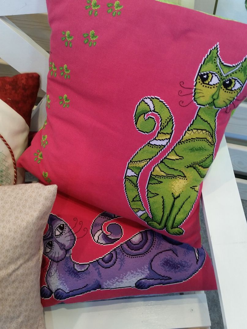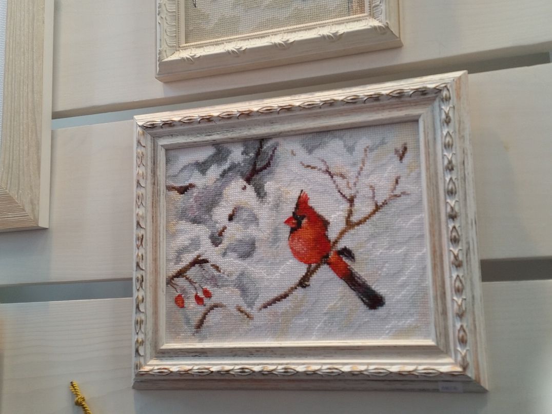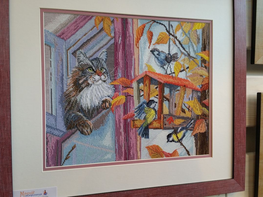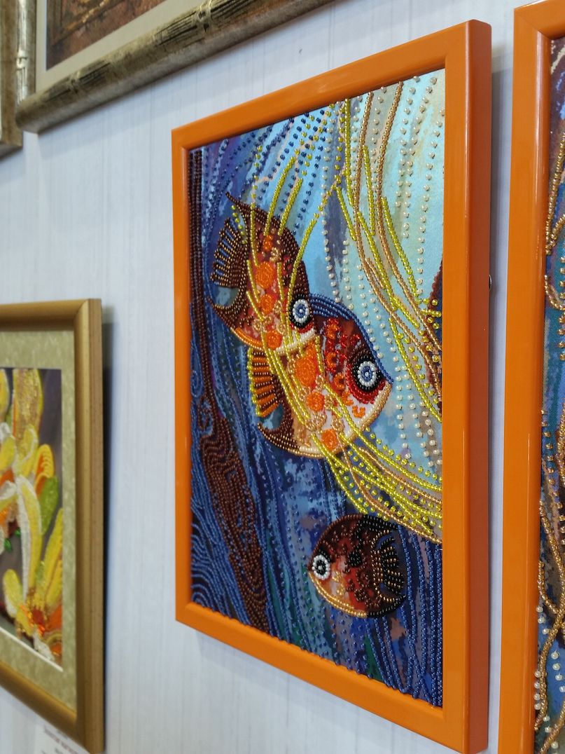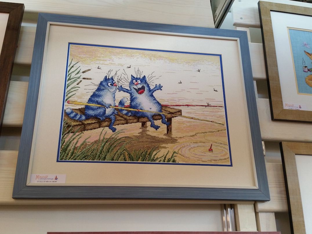 2 октября 2016 Ну и про выставку. Понравилось! Хотя были и некоторые разочарования, на которые я правда быстро махнула рукой, ибо положительных эмоций намного больше. Вы, вероятно, пересмотрели кучу фотографий, поэтому комментировать буду по-минимуму. И фото не претендуют на полноценный обзор, эта подборка - история моего путешествия по выставке и моих впечатлений. Сразу возле входа Нова Слобода. Все рассмотрели (были мы с Асей Каори, Олей Путешественницей, которая вскоре исчезла, зато к нам присоединилась Света Krelina), обсудили (впечатление очень положительное, особенно от городских пейзажей и шовчиковой ботаники), я в очередной раз убедилась, что их часы мне не по вкусу, и тут мы увидели их...рыбок, вышитых бисером по принту: К нашему сожалению, они оказались триптихом, а триптих никому из нас был не нужен. "А может купить на двоих/троих?" - пошутили мы и пошли дальше. В самом конце наша шутка стала реальностью: мы действительно купили этих рыб на троих: Ася, Оля и я, - причем части разделились сами собой по предпочтениям. Моя - та, что на втором фото. Ну а пока набор уехал в НН, где Асе предстоит работа над самой большое частью триптиха. Дальше был РТО: маяки замечательные, Русалка классная - не исключено, что когда-нибудь она появится в моих процессах, яркий и невероятно сильный по восприятию букет, вышитый к тому же на классной коричневой канве, местами очень в тему оставленной незашитой - такая эффектная игра объемов и фактур получилась. Кардинал невнятный на большинстве фотографий вживую очень объемный, живой и привлекательный. Не мое, правда, но эффект "фото-реальность" впечатлил. Чашки понравились. Может потому, что я давно знала, что фон там напечатанный. В принципе диссонанса не возникло, сочетание вышитой и напечатанной части вполне себе привлекательное. У Овна красивые пейзажи, но меня впечатлило опять же несоответствие моих представлений с реальностью касательно вот этого сюжета:. Он, оказывается, очень миниатюрный и за счет этого очень изящный. С трудом уговорила себя прислушаться к голосу разума, который после покупок на стенде РТО завопил с новой силой МИ: мало отшивов!!! Нет даже тех, что на весенней выставке считались совсем новинками (например, серия шиповник-плющ-анемоны и некоторые венки), а посмотреть хотелось. Это ладно я, которая весной тоже была, а как же тем, кто едет из других городов? Они-то справедливо выбирают осеннюю выставку... Венок с чертополохом не понравился вообще. Скучно. Зато подушки из серии физалис-чертополох-одуванчик классные. А еще классные подушки с кошками (анонс) и с осенним венком. Панна: понравился осенний пейзаж (не панелька), шовчиковые миниатюрки с комнатными цветами (они и правда очень маленькие и оттого мне показались такими классными - даже купить захотелось. Хорошо, что не продавались). Оформление серии стимпанк от Айвара Пожарского вживую мне понравилось больше, чем на фото, хотя сюжеты вообще не мои. А вот растительные дизайны несколько разочаровали. Орхидея, которая была моим фаворитом по фото и рассматривалась в качестве подарка воспитательнице, вообще ни о чем. Карта классная - если есть желание и уверенность в своих силах - берите! (а я процесс посмотрю с удовольствием ) И пара фотографий с одного из стендов дизайнеров. То, что захотелось сфотографировать, чтобы не забыть. А вообще красивых работ