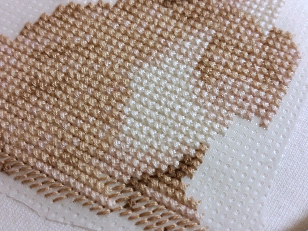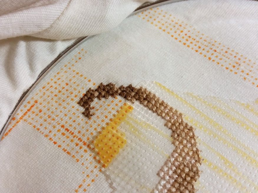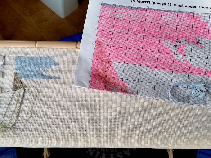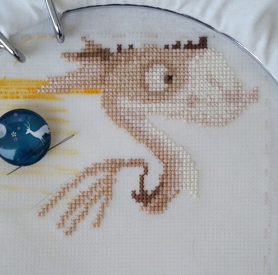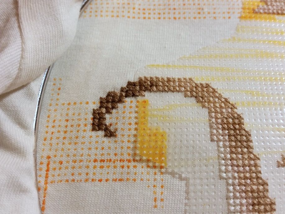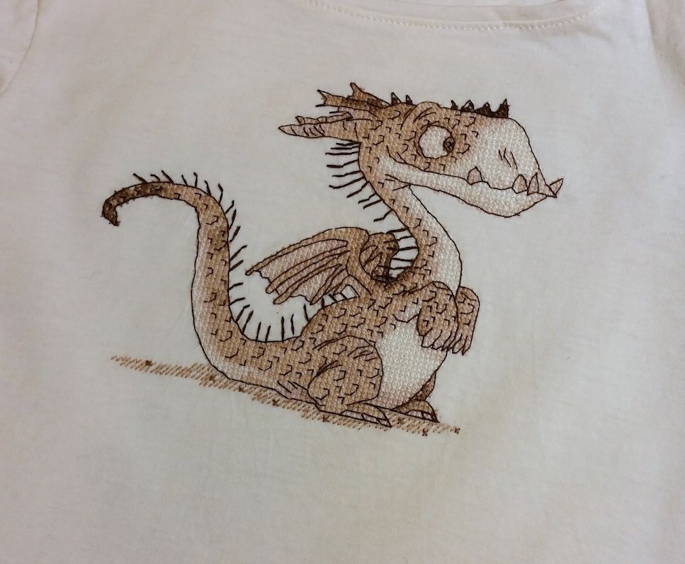8 января 2017 Привет, я снова запрыгиваю в последний вагон уходящего поезда пытаюсь успеть с воскресным отчетом в последний час воскресенья. Но сегодня тому есть причины - день был посвящен завершению... Но обо всем по порядку. Итак, новый год начался. А я же себе одно обещание давала - с началом 2017 достать едва надкусанных гобелен, подаренный мне на ДР. Точнее разрешить себе самой его наконец пошить И пусть в новогоднюю ночь на вышивание меня не хватило, но 1го января уже ничего не могло помешать мне! Итак, Гобленсет, "В горах" было и стало: Затягивает и заманивает. И впечатляет. А еще не устаю поражаться соотношению площадей вышитой части на канве и размеру аналогичного закрашенного куска в схеме. (не для гаечки) Далее процесс - долг (в первую очередь перед ребенком), начатый еще в прошлом году, хотя вы его еще и не видели. Зато сегодня могу показать его уже завершенным. Екатерина Мешкова, "Дракоша сидит" К чему стремимся: Основа - трикотажная футболка и водорастворимая канва Bestex, нитки (здесь внимание!) ПНК им.Кирова подбором по живой карте Про схемы Кати Мешковой и тем более этих дракош (у меня это третий) повторяться не буду: все классно, удобно, нравится. Но именно этот процесс ко всему прочему был двойным экспериментом, вот об этом подробнее. 1. Впервые попробовала нитки ПНК им.Кирова (новые, в 10и метровых мотках). Качество - в принципе на высоте, хотя и отличается на ощупь от моих любимых ДМЦ. Кировские более мягкие, чуть менее блескучие, напомнили мне анкоровские. Но если с анкоровскими у меня стойкая личная неприязнь, то эти проблем и отрицательных эмоций не вызвали. Ну кроме "не дмц!!" И да, канва же растворяется в очень горячей воде - нитки ни капли не пострадали! Теперь о соответствии. Не знаю как другие цвета, но дракошинская палитра (номера 838-842, а также 543, 3865) переводятся отвратительно. Там правда и в таблице производителя звездочка стоит, что соответствия полного нет, но и те, что без звездочки - не то. Чуть серее или чуть зеленоватее, или розовее. И главное отклонение не в одну сторону, а как попало. Т.е. сойдясь в одном дизайне, сочетаться они не будут. Пришлось подбирать некоторые цвета, вооружившись живой картой дмц и опытом по отшиву предыдущих дракош. Итог...Итог, тем не менее, хорош. Поэтому ПНК однозначно зеленый свет, но желательно, чтобы в схеме был ключ в ПНК. Перевод по таблице очень опасен. 2. Как то в теме Светы svetles обсуждалась идея попробовать вышивать на трикотаже без использования водорастворимой канвы, поставив фломастером точки, обозначающие места прокола иглой. По своему опыту я знала, что технически могут возникнуть определенные сложности. Но тут у меня самой возникла трудность: канва на дракошу не умещалась в пяльца, а если попытаться запихать ее под пяльца, то она просто ломается. Прикинув, какой кусочек не умещается и убедившись, что маленький, я решилась на эксперимент. Обрезала часть канвы и поставила те самые точки (напомню, с обратной стороны у меня приутюжен плотный отрывной флизелин. Без него даже не пытайтесь это повторить на трикотаже!) Фото не для гаечки! Результат мне не понравился. Все равно криво, крестики пляшут. Это я тут переделывала несколько раз (что на трикотаже в принципе нежелательно), и то крестики справа намного ровнее тех, что без канвы. А главное перетягиваются дырочки трикотажа, что выглядит неаккуратно и