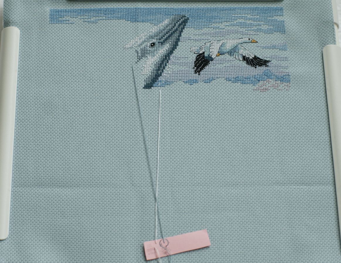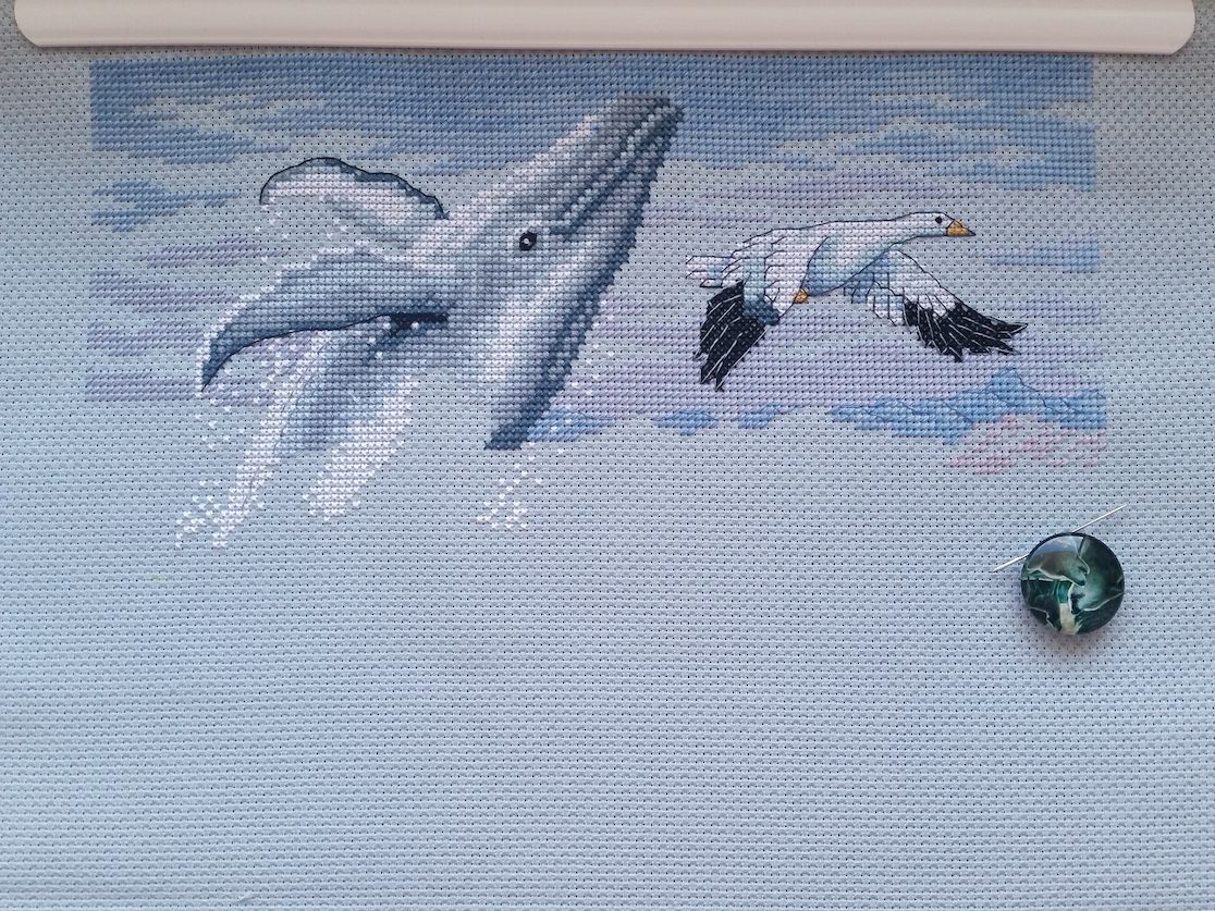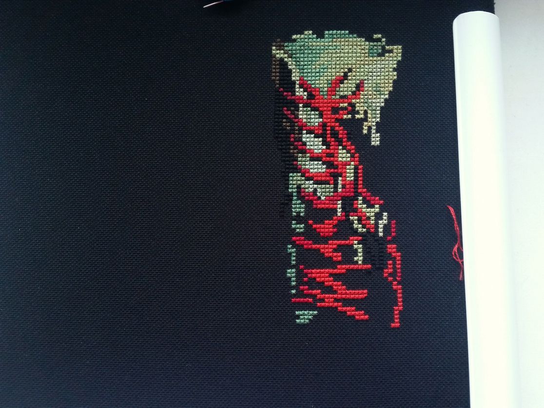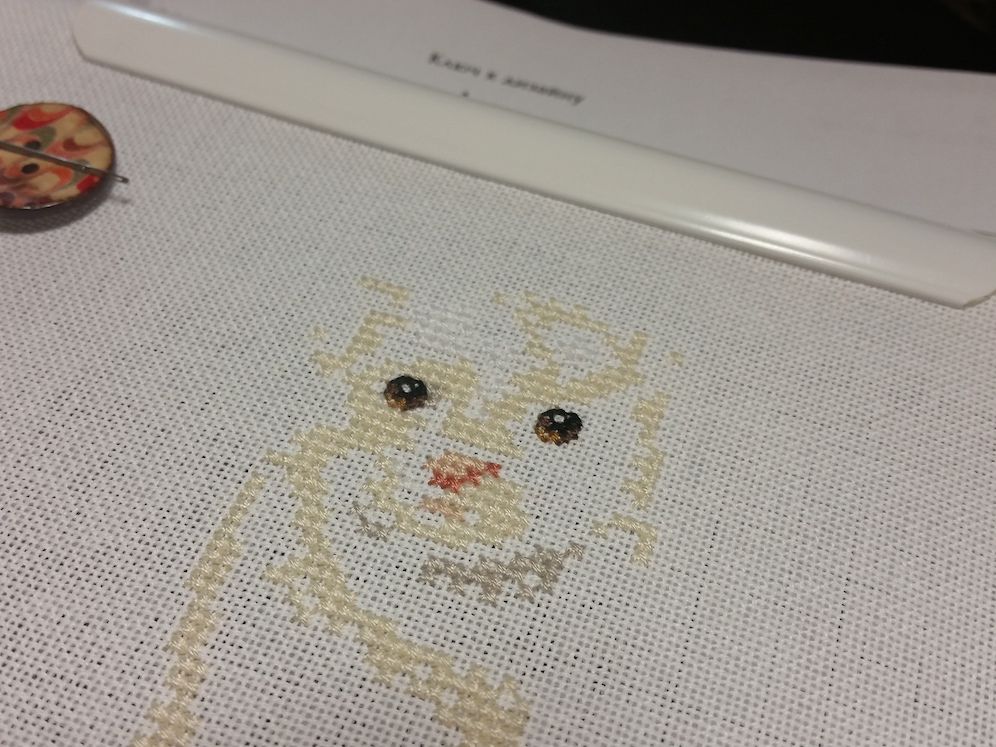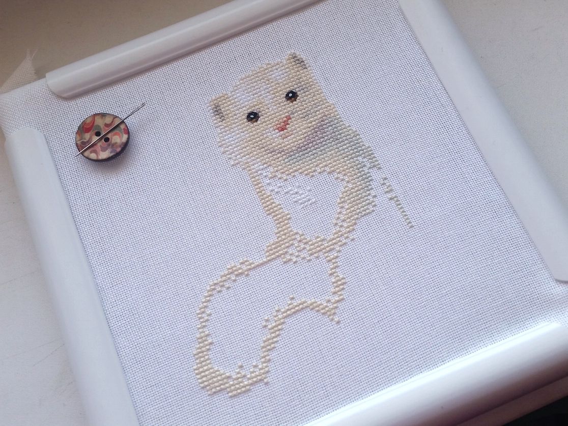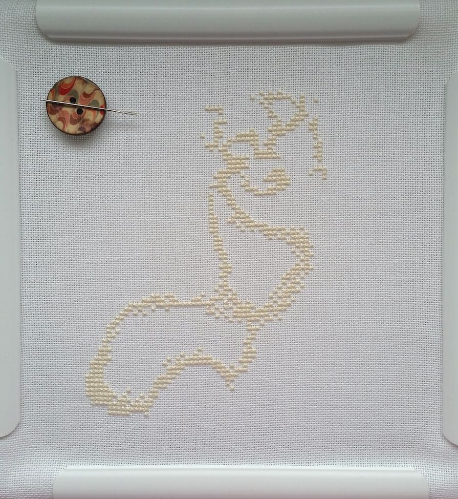 22 января 2017 Всем привет! Сегодня утром нас посетило ненадолго солнышко и я поспешила сфотографировать все те модели-процессы, которые планировала показать в отчете. А раз фотографии готовы, то к чему ждать? Тем более у нас уже более трех часов как воскресенье! Итак, проветривание процессов объявляю открытым! 1. Гобленсет, "В горах", гобелен было/стало: (последнее фото не для гаечки) Обещала показать - показываю. Хотя, конечно, хочется большего. В облаках конкретно закопалась. И закопалась по двум причинам: 1) четыре перемешанных цвета светлых оттенков, близких как между собой, так и к цвету основы и 2)мешанина пока довольно бесформенная, пока совершенно непонятно как и что это будет, а потому и тяжело себя усаживать за станок, когда со спинки дивана на тебя смотрят другие не менее потрясающие процессы... 2. Дим, Арктические проделки (или попросту "северные звери") было/стало: Какой же он клевый и как же я по нему соскучилась! Замечательные полукрестовые бленды и понятный, какой-то классический ход вышивальной мысли и нитки. А какой бэк! Простой и предсказуемый, как пять копеек. Я уж и забыла, что такое бывает На вышитом участке еще не хватает нескольких цветов бэка и кучи фр.узелков, так что дальше будет еще выразительнее. 3. РТО, Дорога (или "Ботинки") было/стало: Тут могу сказать только одно: каждому процессу свое время. Сделав первые крестики после перерыва, я искренне недоумевала, почему же процесс так долго лежал в ящике?! Мне было в кайф протягивать ниточку через равномерку, мне доставляло удовольствие созерцать получающиеся ровненькие и объемные крестики (эх, все же люблю я 27/28 каунт!), а черный цвет равномерки вообще не доставлял неудобств и сложностей. Но главное... главное, это подбор цветов! Смотришь на них на планшетке и видишь кучу разных чуть блекловатых оттенков зеленого. Но вот ты укладываешь их в крестики один за другим согласно задумке дизайнера и происходит настоящее чудо! Вы себе не представляете, какой сильный эффект производят эти цвета, будучи уложенными в узор на черной ткани! Изображение будто светится, ты не можешь от него оторваться, тебя будто магнитом притягивает к нему... Это что-то потрясающее! Жалею только об одном - через экран этого не передать при всем желании 4. Ну и... новый процесс Я буду не я, если не начну какой-нибудь интересный и симпатичный процесс, поэтому встречайте: "Ласка" по схеме Натальи Ореховой (и иллюстрации Юрия Белова), 95*93 крестика ткань Бритни (Лугана) 28 белая, нитки DMC по ключу Должно быть так: А вот что пока получается: Получается здорово, процесс идет как по маслу. Вчера вообще до половины пятого утра засиделась, не отрываясь даже на любимый стич, и совсем не заметила, как время пролетело: такого со мной давненько не случалось. Из технических особенностей: много блендов (в мордочке особенно), но проблем они не доставляют, а живости выражению морды придают однозначно. Сейчас идет один полный крест (несколько четвертькрестиков встретилось только в глазах), зато фон обещает быть по большей части полукрестовым. Уверена, что продолжение этого процесса точно не за горами! Ну и покажу еще одно смешное промежуточное фото процесса, где звереныш больше похож на привидение или монстрика: глаза в пустоте! уууу-ххх (не для гаечки) Все, на этом мои недельные вышивальные возможности исчерпаны. В целом, я собой горжусь - д