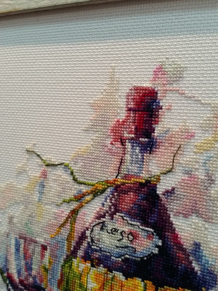 18 февраля 2017 Итак, поехали... сегодня у меня масса довольно структурированных впечатлений, поэтому приготовьтесь к длинному рассказу с "много фото". Не ради того, чтобы показать что-то невиданное (это сложно к концу третьего дня выставки ), но ради того, чтобы передать мои личные впечатления. Единственное, прошу прощения за качество многих фото: редактировать цветопередачу нет времени, да и резкость многих снимков подкачала. Формула рукоделия, весна 2017 От этой выставки у меня остались исключительно приятные эмоции. Все получилось как-то очень душевно и спокойно. Во-вторых, народу для субботы было очень умеренно (я была там с 10.00 до примерно часа дня) и не было обычной духоты. А во-первых, я гуляла там в отличной компании Оли Путешественницы, Светы Krelina и Иришки Дафны с дочкой. Девочки, спасибо вам огромное за этот день, я отлично отдохнула и перевела дух от повседневной действительности. От вышивальной части остались тоже очень приятные впечатления. Причем приятным для меня было и то, что относительно многого я решила, что "мне это не надо". Ну тут вы меня понимаете Начну по-порядку. РТО В этот раз я рассмотрела его очень спокойно. Единожды. И больше к нему не возвращалась. Нет, там все очень даже неплохо, интересно и креативно. Но и не хорошо настолько, чтобы потерять покой и сон. Для меня. Что-то я уже видела, чего-то не было (из того, что я жду и из того, что впечатлило на осенней ФР). Но радует уже тот факт, что к этой весенней выставке РТО отнеслись серьезно, а не как раньше, отделавшись стендом метр на метр с кривой развеской. Нашумевшие цветочные подушки с глазами. Они совсем не страшные, проработка для подушек отличная (больше я бы и не хотела), выполнены на 14й серой канве. Подушки с домиками тоже ничего. Но вот посмотрела (потому что обещала и хотела составить свое мнение) и пошла спокойно дальше. По мне, даже обсуждать нечего. Интересная новинка и уже анонсированный ранее кот. Кот нравится. Буду думать. И сфотографированная по просьбам некоторых товарищей со всех ракурсов Бутылка с виноградом. Как по мне - это была самая удачная и интересная разработка на нынешнем стенде РТО. К ней нет претензий ни по одному пункту. Про Русалку. Просьба не читать тех, кто влюблен в этот дизайн бесповоротно. Я ужаснулась... свет падал так, что мельком бросив на нее взгляд, мне показалось, что все тело девы спереди утыкано запутавшейся проволокой. Мне стало так жутко, что я поспешила рассмотреть причины сей оптической иллюзии. Оказалось, металлик пущен по всей передней части "костюма". Только костюм этот именно спереди лишь угадывается и выглядит...ну в общем, больше я никогда не смогу смотреть на этот дизайн спокойно Выставка примитивов. О ней тоже не раз упоминали в многочисленных отчетах с Формулы. Но! Я всегда была равнодушна к примитивам, а здесь даже мне приглянулось несколько дизайнов. Выставка очень внушительная и действительно интересная. Как минимум посмотреть в общеобразовательных целях. Браво устроителям сей экспозиции! Овен. Вот тут прямо вау. И не из-за новинок. Все дизайны хорошо знакомы. Сюжеты могут нравиться и не нравиться, но отшивы на порядок (нет даже на несколько порядков!), превосходят все фотографии, обложки и прочую полиграфическо-фотографическую продукцию. Они яркие, живые, впечатляющие, вызывающие желание немедленно обладать даже не набора