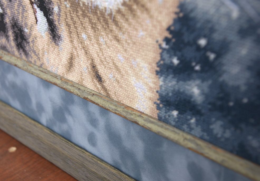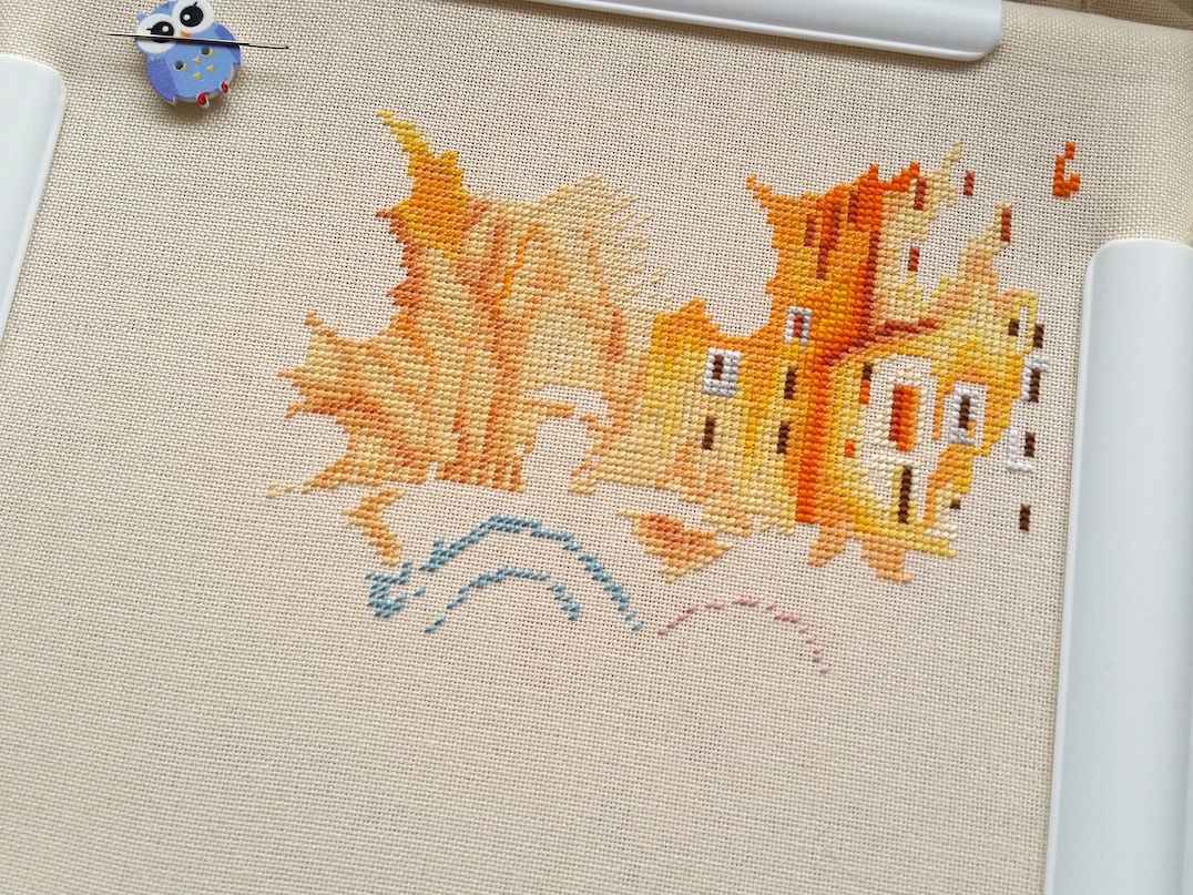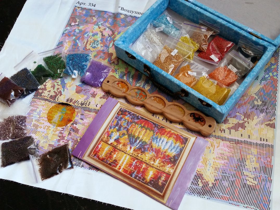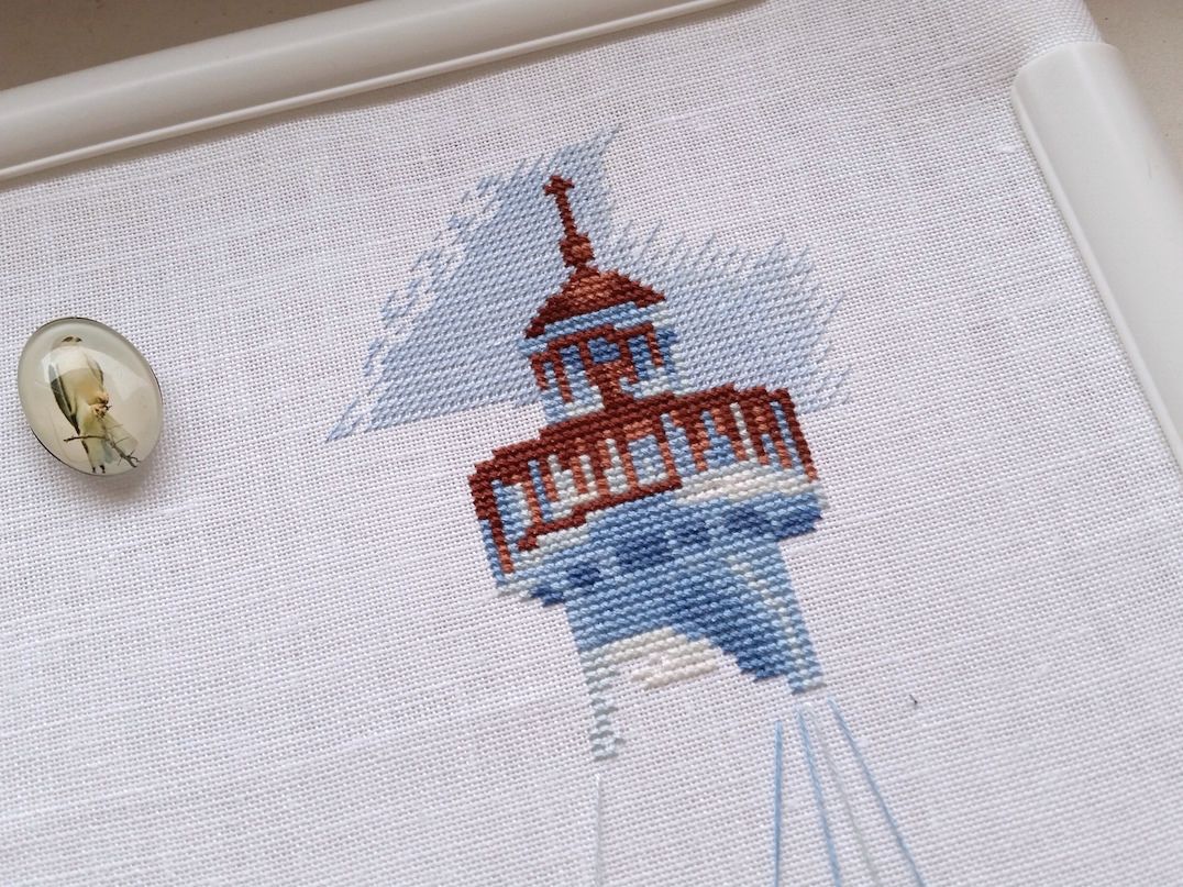 3 апреля 2017 Вчера не было ни сил, ни времени писать. А главное разбирать фотографии. Но сегодня я все же это сделала и спешу к вам с запоздавшим отчетом. Итак, здравствуйте! Как и собиралась, шила всего понемногу. А потому и продвижения по процессам минимальные. И пока я, скрипя мозгами, придумывала, что бы эдакого вам в отчете показать и рассказать, эту проблему в пятницу вечером решила Ирина Михно одним маленьким сообщением: "работы готовы, приезжайте!" И, конечно, в субботу я не удержалась и буквально слетала в багетку и забрала оформленные работы. А потому с них и начнем! Панна. Лодка и домик на дереве для Лешки. Работы были выбраны Лешкой для того, чтобы повесить их над своей кроватью. А спит он на нижнем ярусе двухярусной кровати. И само собой, что помимо сна дети там еще и играют, валяются и бесятся. Отсюда два основных требования к оформление: минимальный размер из тех, что не портит восприятие, и безопасность. Ну и конечно, мечтательное и хулиганистое мальчишеское настроение. Поэтому багет очень естественного оттенка и фактуры, никакого паспарту и стекла. То что получилось в итоге нравится мне безмерно. Очень душевно и очень подходяще "целевой аудитории" Еще возила на оформление димовского снежного барса, которого вышивала мама. Не могу не показать, потому что получилось очень интересно: использовали слип. Но не серебряный или золотой, как мы привыкли, а деревянный, потертый в лучших традициях (я так поняла, что это новинка. И вариантов расцветок штук десять точно есть). С ним появился невероятный объем изображения (сравниваю с вариантом "двойное паспарту", который мы тоже пробовали), а взгляд, и без того в этой разработке завораживающий, стал просто каким-то магнетическим. Ну и бархатное паспарту здесь как нельзя кстати. Жаль только, что убрать блики обычного стекла мне так до конца и не удалось. Про багетку все. Теперь перейдем к нашим баранам текущим процессам. Butterfly, Воздушные шары, круговая вышивка бисером, полная зашивка, размер 36*46 см Гаечку мне Татуся уже завела, быстро разоблачив мою интригу, так что пора эту самую гаечку немного облагородить. Цвета в этой работе умопомрачительные, мой любимый производитель, мой любимый строчный шов и вообще...кайф и свобода. Особенно понимая, что это процесс на долгие-долгие месяцы, ибо размер впечатляющий. С чем бы таким сравнить...ну скажем, они почти в два раза больше котенка с сосулькой этого производителя, которые кое-кто из вас шил, или ровно в два раза больше их же Дубовой рощи. Меня в бисерном процессе такой размер в целом не пугает, ибо, повторюсь, в бисере меня привлекает именно медитативность процесса. Но все же интересно, как оно пойдет. Тем более предвижу некоторые технические сложности ближе к экватору, связанные в первую очередь с размером и весом бисера. А пока так: подготовка и то, что есть сейчас (конечно, я их на этой неделе немного пошила! ) (гаечка уже есть, фотографии для добавления в процесс) Лист по схеме Яны Миносян Прибавка не то чтобы очень значительная, но нарисовалась еще одна часть листа с изумительными прожилками. Игра оттенков завораживает. А шьется так легко и приятно, что спешить с этим процессом даже не хочется. Он как вишенка на торте. Или безотказное лекарство от любой печали было: и стало: Блохастику досталось совсем чуть-чуть. Но мелькание этой очаровательной морды в 