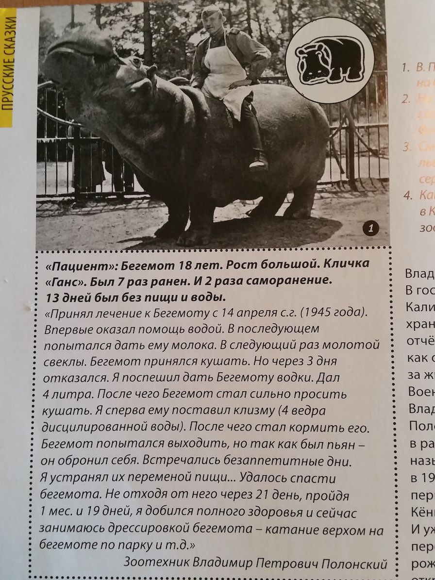 13 мая 2017 Итак, о поездке. Прилетели мы в город в пятницу вечером с тем расчетом, чтобы утром проснуться и пойти гулять. Но неожиданно для себя сразу попали на репетицию парада и удобно и с комфортом (с расстояния не больше 5 метров и не через головы) посмотрели на проход военной техники. А техника здесь не какая-нибудь, а самая современная и ее здесь много - регион-то стратегический. В общем впечатлений масса. Что касается погоды, то метеорологи давали нам всего один теплый и сухой день (сб). Забегая вперед скажу, что все оказалось чуть лучше прогнозов, но генеральная линия соблюдалась, так что экипировка в виде теплых непродуваемых курток с хорошим капюшоном и шапок нам пригодилась. Но и сгореть мы тоже успели. Солнечный теплый день мы решили использовать, чтобы посетить одну из достопримечательностей Калининграда и обязательный пункт программы, если путешествуешь с детьми, - Калининградский зоопарк. Один из старейших на территории России (1898г, если не ошибаюсь) и имеющий славу одного из лучших. Детям, к примеру, был обещан бегемот, которого в Московском зоопарке нет. В целом, мне тут очень понравилось. Территория большая, но в разумных пределах, вольеры просторные, звери не такие замученные, как в Москве. А еще очень зелено и гораздо спокойнее, так что тут просто гулять приятно. История ВОВ и зоопарка также связаны неразрывно. Очень многие звери тогда погибли, оставались единицы. И тот же легендарный местный бегемот был найден советскими солдатами насмерть перепуганным в ближайшей канаве с семью пулевыми ранениям. Его хотели пристрелить, как и многих, но по какой-то причине не сделали этого. Его удалось вылечить, а в архивах зоопарка сохранились вот такие забавные записи. А к зоопарку мы шли по красивейшей улице, где многие здания восстановлены, а весна в лучших своих проявлениях добавляет шарма всему.... Здесь и здание КГТУ с фонтаном-символом “Зубры” (одно из народных названий “Прокурор и Адвокат”, потому как здания за ними в начале века принадлежали так называемому “судейскому кварталу”), и здание Дирекции Верховых почт (ныне штаб Балт.Флота), и театр, и здание ФСБ (а ранее прусской полиции), возле которого стоит табличка “фото- и видеосъемка запрещены, и еще много чего интересного. Выйдя из зоопарка и немного устав от солнца и людей, мы выбрали менее людный путь вдоль паркового рва и тут же увидели первые остатки укреплений внутреннего кольца, датируемого серединой 19го века. Разные части этого кольца (ворота, башни, редюиты и даже часть вала будут встречаться здесь регулярно и именно вдоль них я и старалась строить прогулочные маршруты). Вдоль рва мы дошли до башни Врангеля, одной из двух башен, прикрывавших плотину между Верхним и Нижним (Королевским или Замковым) прудом. Вторая видна на другом берегу пруда - это та самая Башня Дона, где ныне расположился Музей Янтаря. Ну а мы пошли вдоль верхнего пруда, заглянули в местный парк и покатались на колесе обозрения. Фро-J, kgalimzyanova, Lusha73 и 39 других сказали спасибо Поделиться сообщением Ссылка на сообщение