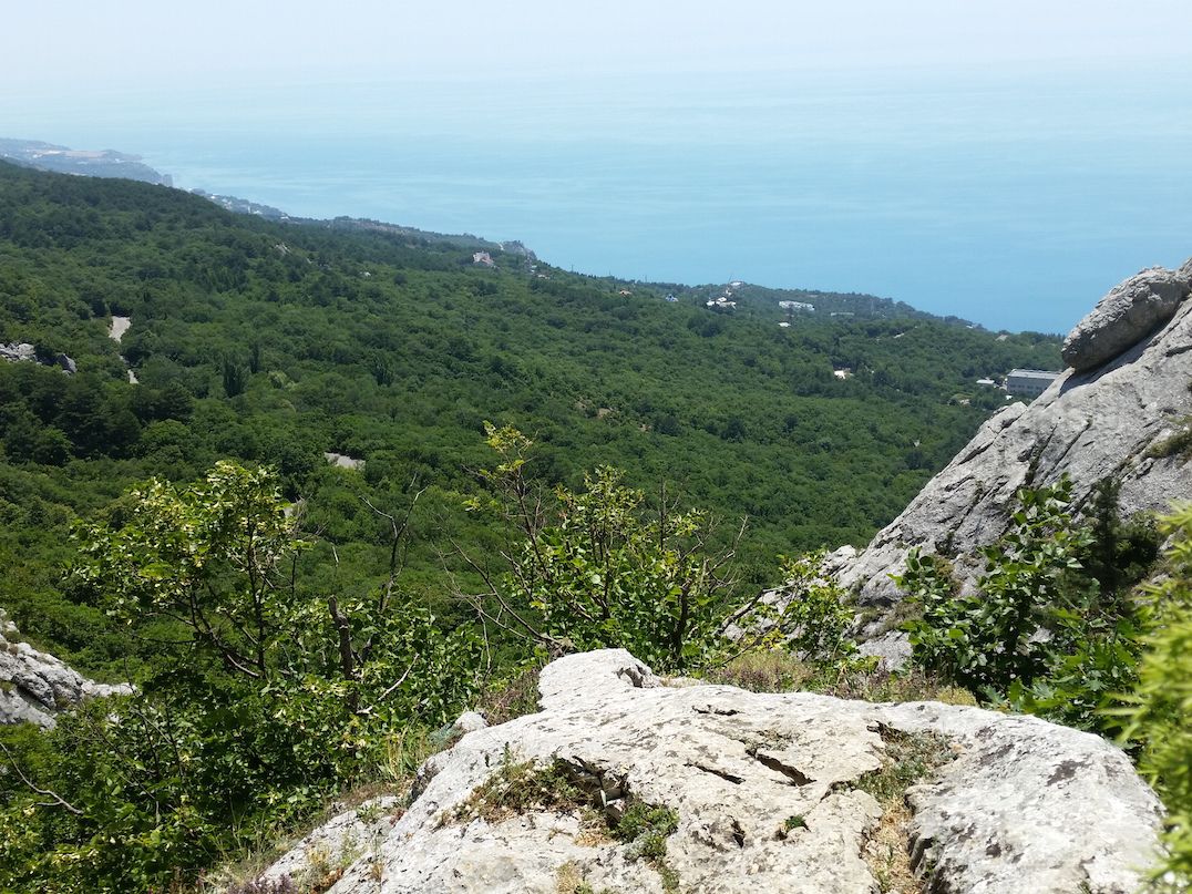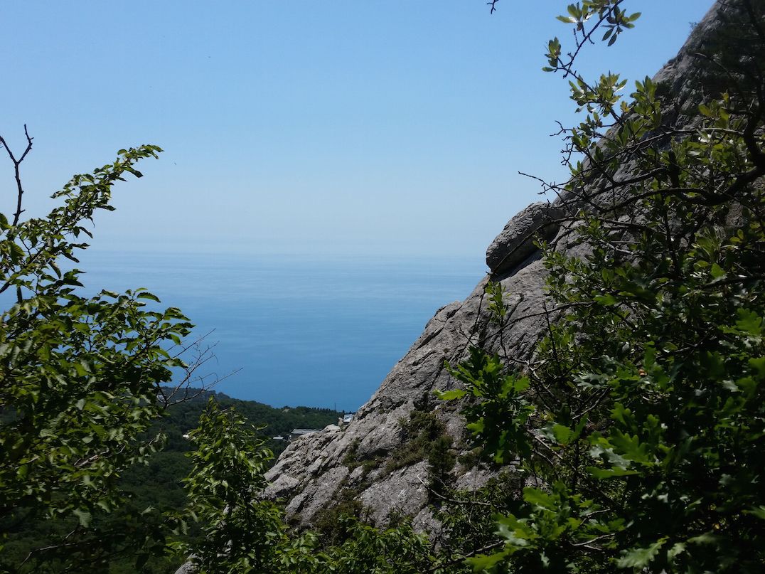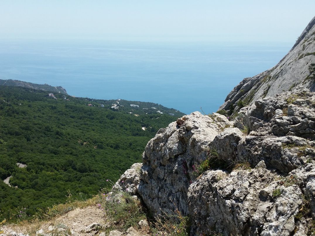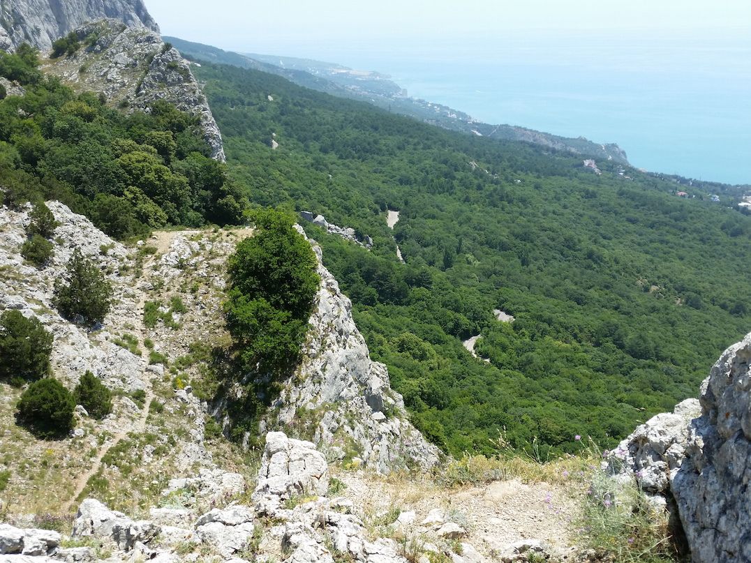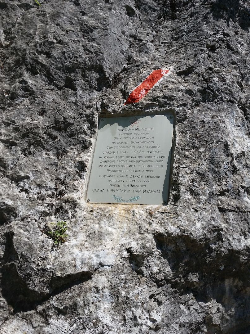 31 июля 2017 Итак, продолжаю. Если вы помните, дедушка обещал внукам поездку в горы. Сильно издеваться над ними он не стал и выбрал маршрут им по силам, хотя и не без усилий. Я вообще поражаюсь его проницательности в этом плане: откуда он знает возможности каждого человека, что каждый раз предлагает то, что позволит выйти за грань представлений о своих собственных возможностях и запомнится на всю жизнь. Итак, им был предложен подъем на "Чертову лестницу". Но сначала по серпантину мы поднялись к перевалу Байдарские ворота и полюбовались на Форосский храм с высоты. Возле храма останавливаться не стали, а поехали по старой ялтинской трассе, любуясь видами, морем, обрывами и нависающими скалами. Дорога используется очень мало, даже стоит знак "проезд закрыт". Это несколько лет назад там обвал был. И именно по этому поводу дорогу отремонтировали и местами качество асфальта даже лучше, чем на основном шоссе. На полпути мы остановились и дед повел внуков к подножию скал на Уарч-Кая, одному из излюбленных мест крымских скалолазов. Когда-то и свекор излазил здесь все трассы и маршруты, именно здесь находится трасса, которая долго ему не давалась и именно поэтому с ней связана масса воспоминаний. А еще здесь есть небольшие участки, где вполне можно было показать азы болдеринга внукам. Дети были в восторге, Настя с папой, Леха с дедушкой осваивали новый для себя вид деятельности, который по определению интересен каждому ребенку - залезть подальше и повыше. А т.к. рядом с ними находились профессионалы, а не охающая мама, то они даже и не подозревали, что это вообще-то может быть страшно и опасно Еле вытащив детей со скал, мы все же доехали до Шайтан-Мердвен или Чертовой лестницы. По сути это перевал. Высота 578 метров над уровнем моря, полная длинна около километра. Когда-то очень давно (во времена римлян) здесь пролегала дорога из степной части к побережью и по ней даже могли пройти лошади с повозками. Сейчас в это верится с трудом, ибо тропинка представляет собой нагромождение камней, валунов и скал и только в нижней части смахивает на лестницу или дорожку. Более поздняя история этого перевала рассказывает о подвигах партизан во время ВОВ, о чем свидетельствуют таблички и памятник на старой ялтинской трассе (мы поднимались именно оттуда, а не с самого низа). Т.к. основные дороги контролировались фашистами, то именно по чертовой лестнице советские партизаны совершали вылазки на ЮБК для осуществления диверсий и затруднения продвижения немецких и румынских войск к Севастополю. Во время подъема фотографировать было не с руки (я же уроженка равнин, как горный козлик скакать, в отличие от свекра и мужа, не умею), так что фотографий немного и в основном сверху. На одном из кадров кусочек тропинки - так это вот "равнинная дорога" по меркам свекра, практически автострада А "камень" на соседнем склоне видите? На самом деле это такой огромный кусок скалы, который просто лежит на склоне. И сколько он там будет лежать - это вопрос погоды и желания судьбы, ибо он там вообще ничем не держится, кроме как силой трения. А еще на вершине соседней горы было гнездо воронов. Какие же они огромные и красивые птицы!.. На вершине перевала открывается изумительный вид, но и обрыв там... что сказать, я струсила и к самому краю не подошла. Зато дети... Леша за руку с дедом на самом краю... эта кар
