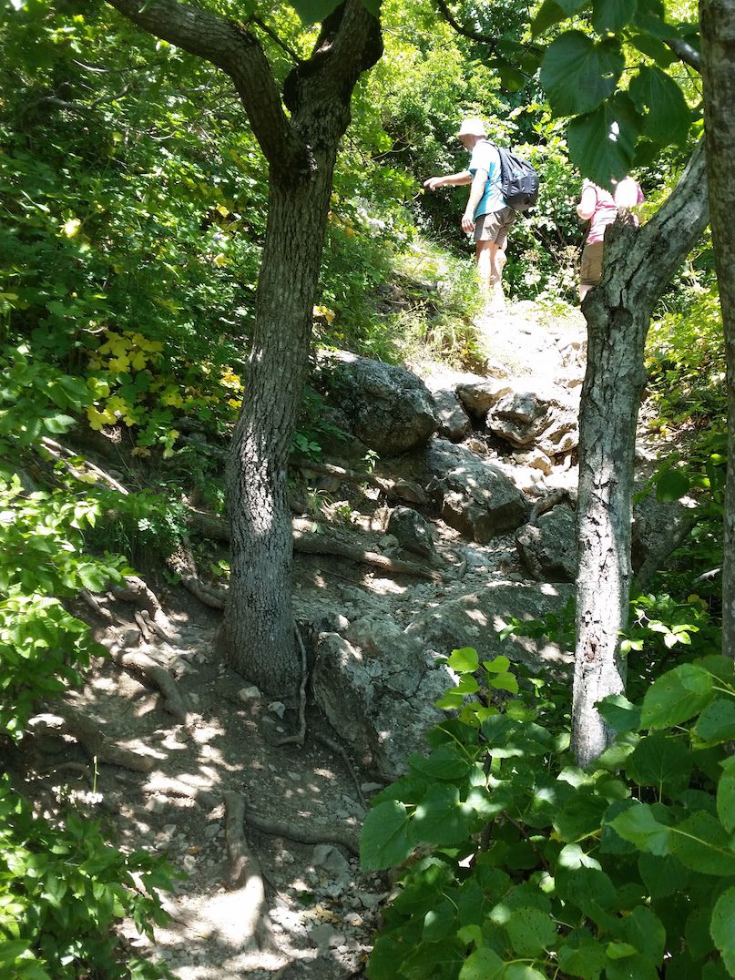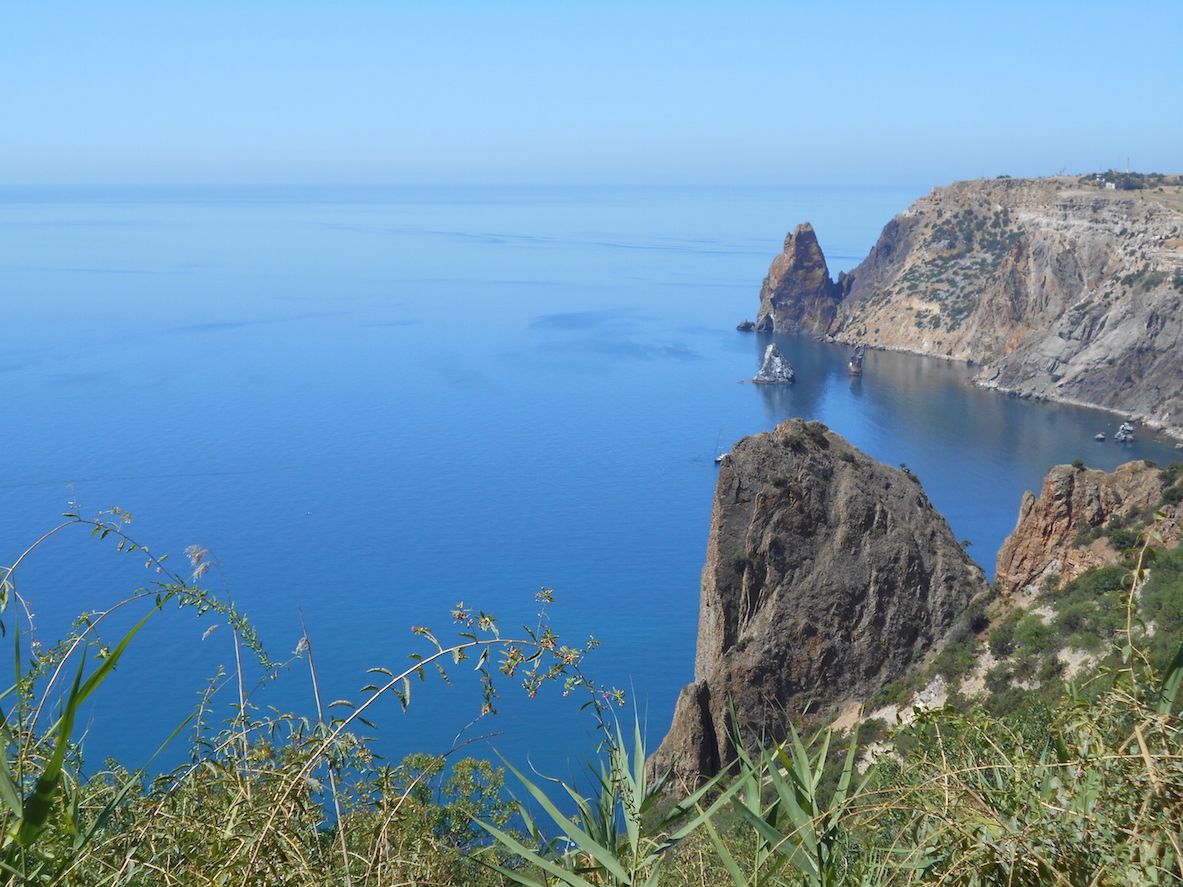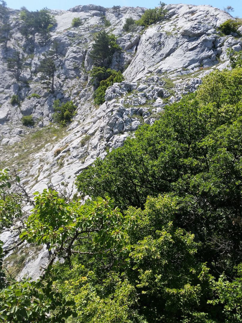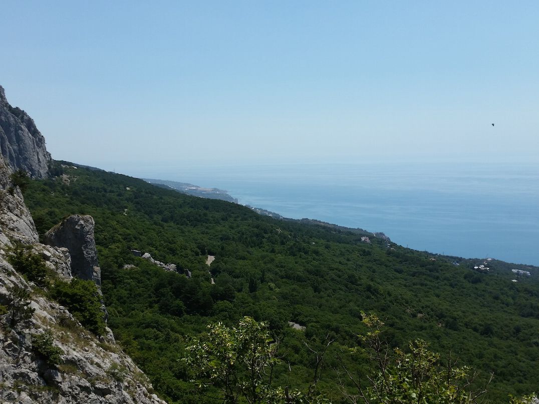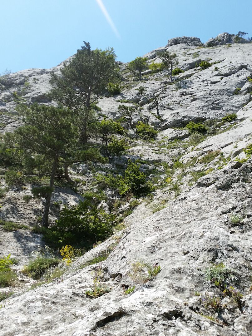 31 июля 2017 Итак, продолжаю. Если вы помните, дедушка обещал внукам поездку в горы. Сильно издеваться над ними он не стал и выбрал маршрут им по силам, хотя и не без усилий. Я вообще поражаюсь его проницательности в этом плане: откуда он знает возможности каждого человека, что каждый раз предлагает то, что позволит выйти за грань представлений о своих собственных возможностях и запомнится на всю жизнь. Итак, им был предложен подъем на "Чертову лестницу". Но сначала по серпантину мы поднялись к перевалу Байдарские ворота и полюбовались на Форосский храм с высоты. Возле храма останавливаться не стали, а поехали по старой ялтинской трассе, любуясь видами, морем, обрывами и нависающими скалами. Дорога используется очень мало, даже стоит знак "проезд закрыт". Это несколько лет назад там обвал был. И именно по этому поводу дорогу отремонтировали и местами качество асфальта даже лучше, чем на основном шоссе. На полпути мы остановились и дед повел внуков к подножию скал на Уарч-Кая, одному из излюбленных мест крымских скалолазов. Когда-то и свекор излазил здесь все трассы и маршруты, именно здесь находится трасса, которая долго ему не давалась и именно поэтому с ней связана масса воспоминаний. А еще здесь есть небольшие участки, где вполне можно было показать азы болдеринга внукам. Дети были в восторге, Настя с папой, Леха с дедушкой осваивали новый для себя вид деятельности, который по определению интересен каждому ребенку - залезть подальше и повыше. А т.к. рядом с ними находились профессионалы, а не охающая мама, то они даже и не подозревали, что это вообще-то может быть страшно и опасно Еле вытащив детей со скал, мы все же доехали до Шайтан-Мердвен или Чертовой лестницы. По сути это перевал. Высота 578 метров над уровнем моря, полная длинна около километра. Когда-то очень давно (во времена римлян) здесь пролегала дорога из степной части к побережью и по ней даже могли пройти лошади с повозками. Сейчас в это верится с трудом, ибо тропинка представляет собой нагромождение камней, валунов и скал и только в нижней части смахивает на лестницу или дорожку. Более поздняя история этого перевала рассказывает о подвигах партизан во время ВОВ, о чем свидетельствуют таблички и памятник на старой ялтинской трассе (мы поднимались именно оттуда, а не с самого низа). Т.к. основные дороги контролировались фашистами, то именно по чертовой лестнице советские партизаны совершали вылазки на ЮБК для осуществления диверсий и затруднения продвижения немецких и румынских войск к Севастополю. Во время подъема фотографировать было не с руки (я же уроженка равнин, как горный козлик скакать, в отличие от свекра и мужа, не умею), так что фотографий немного и в основном сверху. На одном из кадров кусочек тропинки - так это вот "равнинная дорога" по меркам свекра, практически автострада А "камень" на соседнем склоне видите? На самом деле это такой огромный кусок скалы, который просто лежит на склоне. И сколько он там будет лежать - это вопрос погоды и желания судьбы, ибо он там вообще ничем не держится, кроме как силой трения. А еще на вершине соседней горы было гнездо воронов. Какие же они огромные и красивые птицы!.. На вершине перевала открывается изумительный вид, но и обрыв там... что сказать, я струсила и к самому краю не подошла. Зато дети... Леша за руку с дедом на самом краю... эта кар