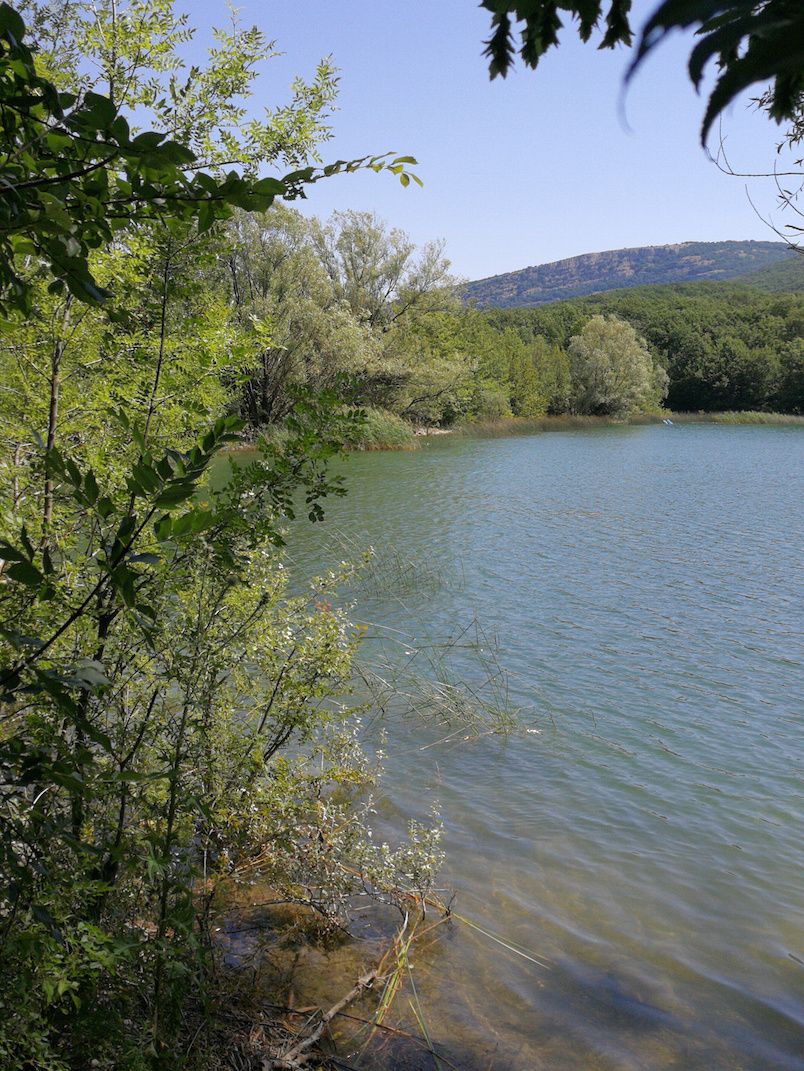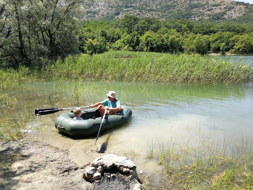29 июля 2017 Итак, продолжаю. Море было к нам в этот раз чрезвычайно благосклонно. В прошлый приезд Настя на море смотрела с опаской, но все же залезала в него, вцепившись в Женю или меня, а Леха так вообще орал недуром не только тогда, когда пытались окунуть его, но и когда мама или папа только направлялись в сторону этого "шумящего монстра". Поэтому я очень боялась того, что будет в этот раз - искупаться-то хочется! И вот мы собрались на море. Куда? Конечно же Фиолент с его яшмовым пляжем(в народе "монастырь")! Да, большой обрыв и длинная каменная лестница в 800 ступеней (на самом деле чуть меньше), но увидевши это зрелище однажды, я словно паломник, не могу не приходить сюда снова и снова. Зимой, весной, летом - Фиолент прекрасен всегда! Море в этот раз было теплым, но еще освежало (Света svetles, прости, но купаться в 25 и выше градусов - это выше моего понимания, хоть я и мерзляка ) и невероятно спокойным. Мне кажется, что даже наката почти не было, не то что волн. Я такое спокойное море видела впервые в жизни, а ведь здесь открытое море (не бухта). Дети резвились от души, их было не вытащить (хоть и барахтались возле берега) и все мои страхи развеялись. Мы с Женей просто получали удовольствие от чистейшей воды, соленого привкуса на губах и детских восторженных взглядов и воплей... Как-то вечером, сидя в беседке в саду и наслаждаясь ночной прохладой, ароматом цветов и шелестом листвы, я обмолвилась, что обожаю раков, ностальгирую по временам детства, когда собираясь у бабушки всей семьей, ловили и ели их в большом количестве, и мечтаю уже много лет вот так же поесть раков... Да неужели?!, -сказал мне свекр и вот через день мы уже едем в Байдарскую долину на одно из озер ловить раков Поехали с ночевкой. Палатка, лодка - для детей все было впервые. А мне так нравиться открывать для них вещи, которые я сама обожаю... Байдарскую долину иногда для туристов называют "Крымской Швейцарией". Не была в Швейцарии, но почти уверена, что привирают. Не потому что там не так красиво (о нет, Альпы - они и есть Альпы!), а потому что Крым на самом деле какое-то особое место, одновременно похожее и непохожее на другие. Байдарская долина со всех сторон окружена горами. Поэтому здесь более мягкий климат, много воды, теплее (многие овощи-фрукты здесь созревают раньше, чем в Севастополе). Здесь зелено и очень красиво. Фотографии ни на йоту не передают того ощущения свободы и умиротворения, которое исходит от этого пейзажа... Дедушка и папа катали детей на лодке, вместе проверяли снасти, им соорудили удочки из палок, с помощью которых они с восторгом ловили лягушек "на листик", мы даже сходили искупаться на противоположную часть озера, где был небольшой пляж. Палатка, чай на костре - для них все было в новинку. Ну а т.к. долго развлекаться ловлей лягушек мне уже не по возрасту, то в свободные минуты я сидела на берегу и наслаждалась видами и спокойствием. А под это дело еще и вышивка шла просто отлично! И кстати, сумка побывала во всех походных испытаниях - с ней совершенно ничего не произошло (это я специально для тех, кто переживает за судьбу вышивок на прикладных вещах, пишу) Ну а вечером был красивый закат с прячущимся за гору солнцем и целый котелок раков... Неужели сбылось мое желание, которое я лелеяла больше 15ти лет?!... После захода солнца детям открылся целый новый мир: лесные шорохи и звуки (а ведь там - и 
