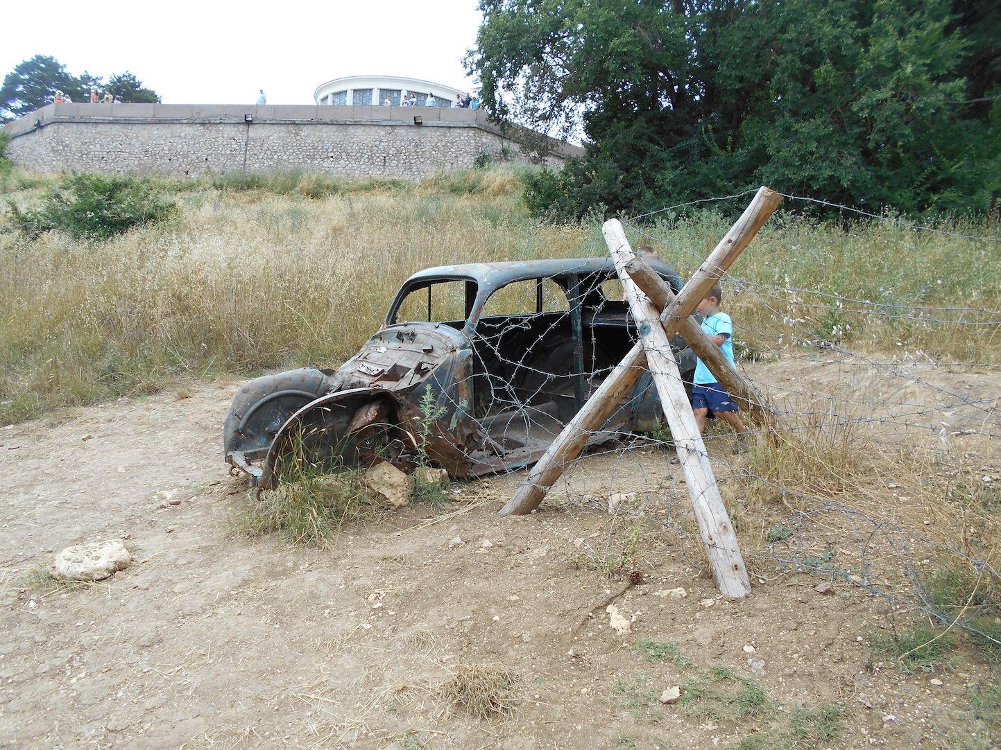 29 июля 2017 36 минут назад, МарСанна сказал: Оля, спасибо! Я очень долго это разглядывала. Красота необыкновенная. ну тогда специально для тебя Пока разбирала фотографии дальше, нашла еще несколько красивых кадров вдогонку первому посту: Первым нашим "выходом в свет" был мини-поход на Сапун-гору. Это одна из ключевых высот при обороне и освобождении Севастополя из-за ее географического положения: отсюда простреливается весь Севастополь и Херсонес. И здесь же находится знаменитая Диорама и музей, посвященные Севастополю во время ВОВ. Туда ходят маршрутки (в черте города), но нам это, как обычно, не интересно. Мы доехали до подножия и дальше по тропинкам пошли по лесу в гору с целью а)погулять и б)потестировать, способны ли дети идти в гору, прежде чем выезжать куда-то еще. Гора не высокая (всего 240м согласно википедии), тропинок протоптано масса, запах в лесу стоит невероятный, а в ушах со всем своим усердием трещат цикады Дети чуток поныли, но потом вошли во вкус и принялись рассматривать местные деревья, которые сильно отличаются от наших, травы и жуков. Даже смогли найти на ветках и в траве цикад и с пристрастием их рассмотреть. Ну и противные, надо вам сказать, создания Уже почти наверху, когда тропинка стала пологой, мы увидели странным образом разрытую землю и небольшой памятник. У меня, каюсь, возникли не очень лицеприятные мысли, но я все же решила выяснить что это. Оказалось, что здесь в феврале 2017 (вдумайтесь только, феврале этого года! спустя 73 года после освобождения Севастополя!) был найден сбитый самолет.. Пройдя еще немного, мы вышли к открытой выставке военной техники возле Диорамы. Ну как вам сказать выставке... стоят несколько образцов немецкой и нашей техники, реальные полуосыпавшиеся землянки, окопы и ДОТы, которые сооружались еще в войну для использования по назначению, ежи с колючей проволокой (я подумала, что их для музея поставили, но когда мы потом возвращались другими тропинками - они там везде, даже там где туристов нет, сквозь них и деревья проросли - видимо это те, что остались с войны...). Женя говорит, что на склонах Сапун-горы (как и по всему Севастополю и окрестностям) до сих пор регулярно находят снаряды, осколки и прочее. Да что говорить, на обратном пути (дети уже послушали экскурсовода и наши объяснения и были в курсе событий) меньше чем за 10 минут на тропинке мы нашли целую кучу осколков от снарядов и огромную воронку от разрыва, поросшую лесом, но не утратившую своей правильной формы, не оставляющей сомнений в ее происхождении. Вообще, эта часть "экспозиции" мне очень понравилась. Очень и очень наглядно (можно даже потрогать). И очень и очень реально. Никакие макеты, фильмы и фотографии не объяснят этого так, как понимаешь здесь. А дальше лестница на смотровую площадку, к Диораме и парку-мемориалу. Здесь уже красивые виды, настоящая выставка военной техники (Катюши, танки, морская техника), парк и небольшой музей. В музей пускают только с экскурсией, но они проходят достаточно часто (интервал минимальный - ровно столько, сколько нужно времени, чтобы одна группа ушла из 1го зала (читай 1го этажа) во второй (к собственно диораме). Рассказывают довольно бодренько, интересно (Настя слушала, многое поняла и многое запомнила), но совершенно не дают времени рассмотреть экспонаты в витринах, а их там немало, они интересные и экскурсо