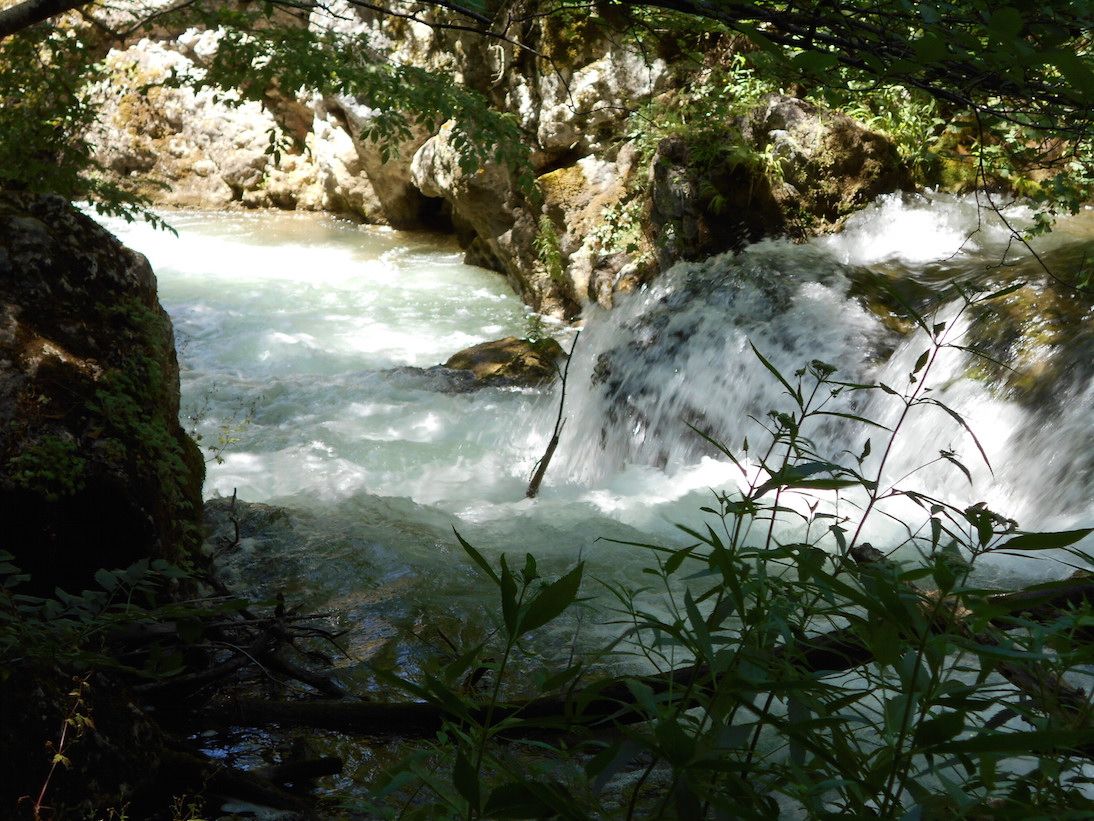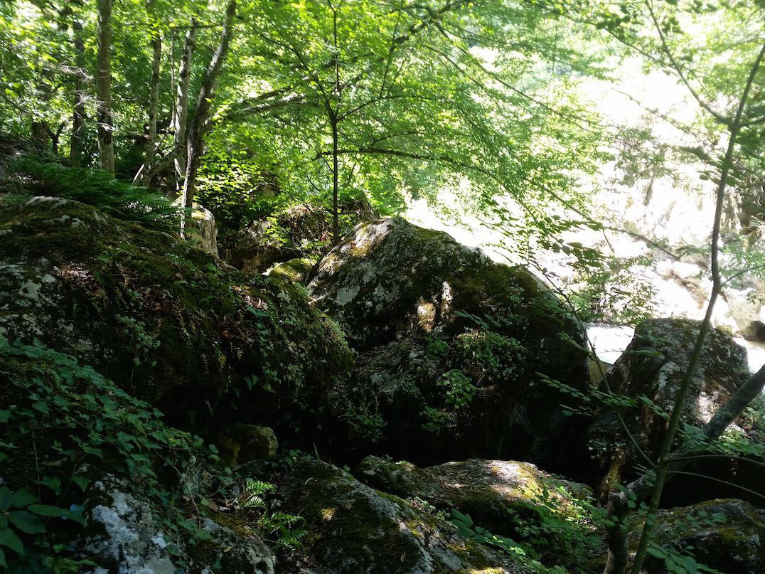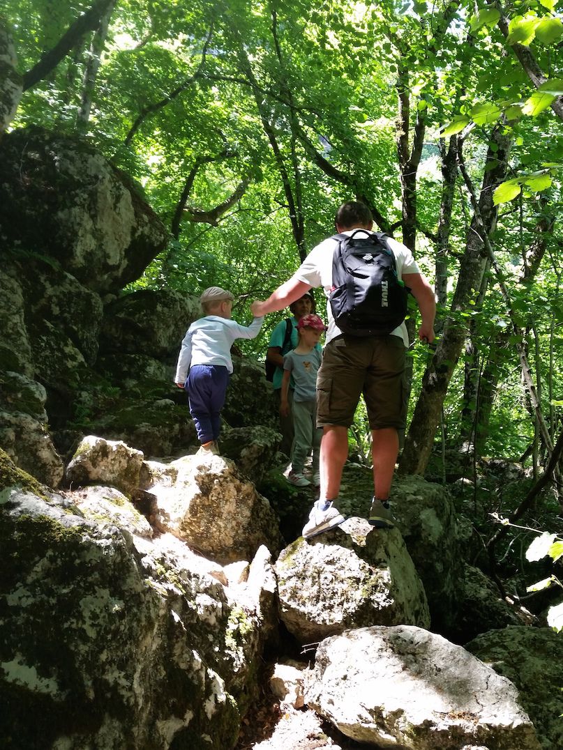 3 августа 2017 Ностальгия по отпуску постепенно оставляет, дела захватывают в свой круговорот: уже раскроены новые одежки и начаты новые процессы, во всю собираем первоклашку в школу, а ее брата к саду. И во всей этой суете предлагаю вам насладиться фотографиями одного из самых моих любимых мест в Крыму и, безусловно, одного из самых красивых... Чернореченский каньон. Вот выдержка из википедии: Черноре́ченский каньо́н — глубокое и узкое ущелье реки Чёрной, глубиной в несколько десятков метров и длиной около 12 км, начинается у скалы Кизил-Кая на границе Байдарской долины и заканчивается у села Чернореченского. Разработано эрозией в верхнеюрских известняках низкогорного ландшафта западной окраины Главной гряды Крымских гор. Ущелье труднопроходимо, изобилует навалами каменных глыб. В нижнем течении Черной речки она гораздо спокойнее, а тропинки практически дороги. А вот в верхнем течении река несется среди высоких скал, преодолевая пороги, ударяясь о скалы и шумя, зажатая среди высоких гор. На некоторых вершинах живут орлы, в речке водится форель, вода здесь кристально чистая (в нижнем течении используется для водоснабжения Севастополя, воду до сих пор можно пить прямо из речки) и холодная (температура не поднимается выше 18ти градусов). Я познакомилась с этим местом 9 лет назад. Тогда мы прошли вдоль реки с двумя ночевками, рыбача по пути. И если в нижнем течении мы после этого были неоднократно, то до порогов не добирались: беременной и с грудными сначала Настей, потом Лехой меня туда не брали. А ведь именно эта часть ущелья запомнилась мне больше всего. Поэтому в этот раз мы отправились именно туда. Вдоль самой реки мы прошлись недолго (все таки возможности детей ограничены), но насладиться успели.Всего чуть больше 10 км, большая часть из которых была либо в гору, либо с горы (и не думайте, что это проще! При большом уклоне и сыпучем грунте вниз спускаться даже тяжелее!). На самых сложных участках Леха ехал на папе, а вот Настя преодолела все сама. Горжусь ей! Чтобы попасть в ущелье, сначала надо влезть на косогор по лесу. Здесь очень даже протоптанные дорожки и тропинки, так что можно было идти и наслаждаться, стараясь не замечать подъема. Потом надо резко с этого косогора спуститься. Честно, неоднократно было желание просто съехать на попе. Но среди корней и камней это просто не вариант. А впереди уже слышался шум реки и все трудности преодолевались хотя бы ради того, чтобы побыстрее ее увидеть. Спустившись, мы двинулись вдоль реки до "водопадов" (у местных свои кодовые названия разных участков реки и удобных стоянок на ней). "Тропинка" представляла собой нагромождения огромных камней, поросших мхом и папоротниками. Я получила огромное удовольствие от преодоления этой тропы, от созерцания причудливых нагромождений камней, шума бурлящей внизу реки, изумрудной зелени папоротников, а от чистейшего лесного воздуха кружилась голова. Теперь будет просто много фото. На некоторых вы можете приблизительно оценить тропинку, но ни одно фото не передаст всей силы этого места... Что я вам хочу сказать... это одно из самых замечательных мест в моем личном рейтинге. Здесь почти нет людей, здесь природа будто обнимает тебя, а река вместе с бурным потоком уносит все плохие эмоции прочь, заглушает своим шумом все дурные мысли. Бесконечная голубизна неба, зеле