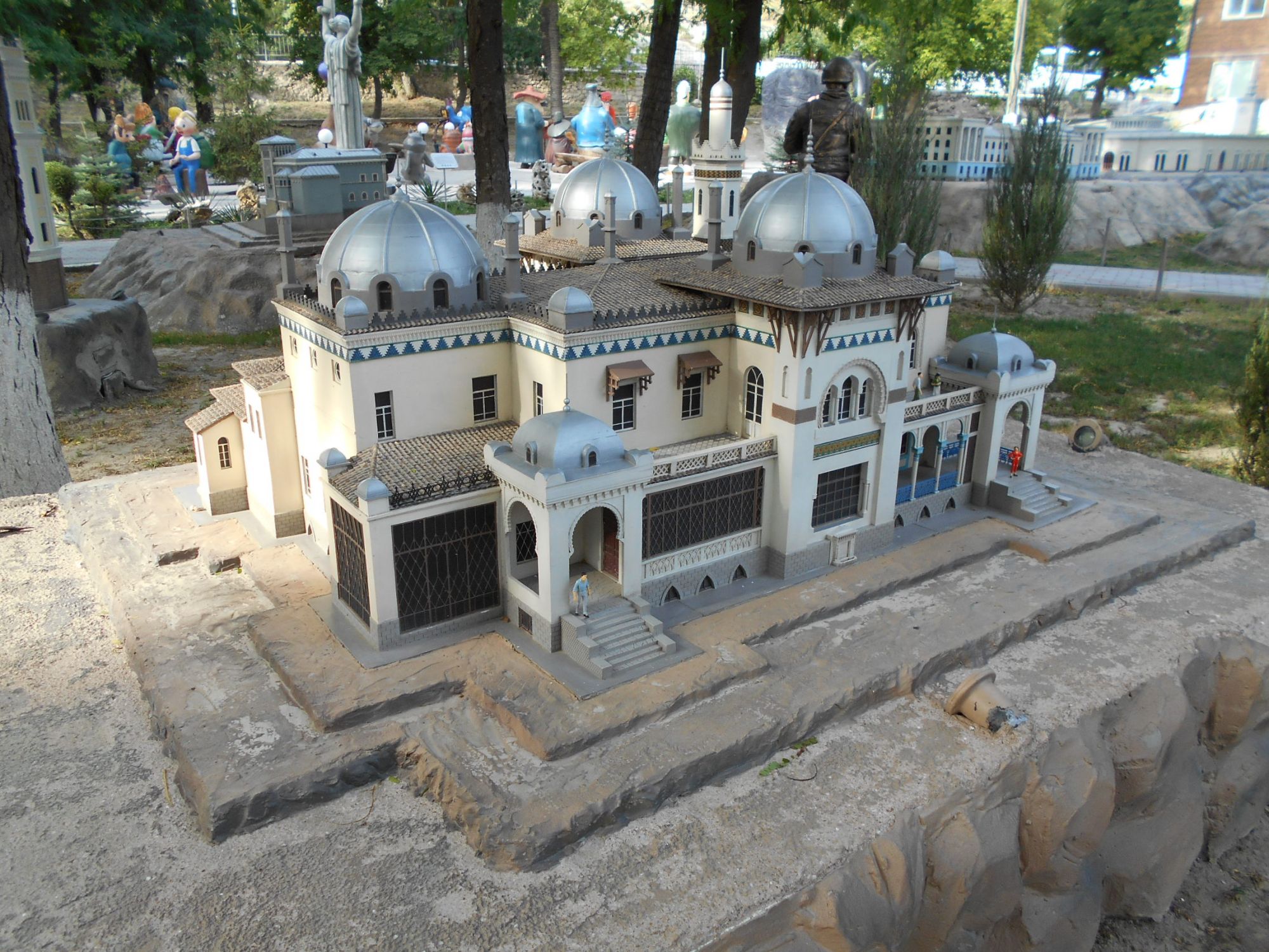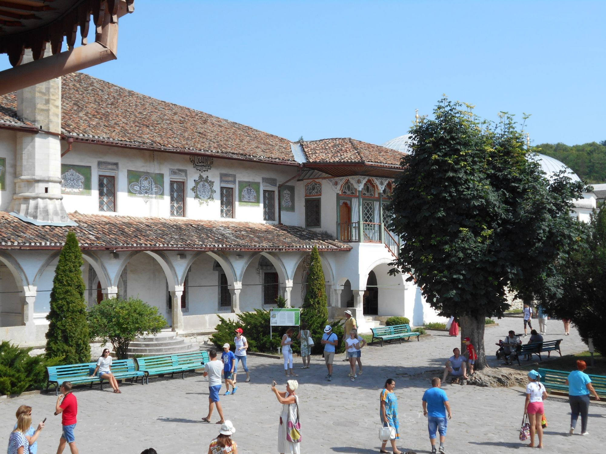 3 августа 2017 Мой рассказ неумолимо движется к концу. Осталось рассказать разве что про поездку в Бахчисарай и Ханский дворец с его знаменитым фонтаном слез... Поехали мы на автобусе, вышли на автовокзале Бахчисарая и, вместо того, чтобы воспользоваться, как все туристы, местными маршрутками, мы пошли пешком, удостоверившись, что "здесь по прямой недалеко". Только карты в горах обманчивы. Можно прийти к обрыву, с которого по прямой не спустишься, что с нами и произошло. Но я нисколько не жалею об этом! Посмотрите, какие виды! И скажите, правда, что скала на последнем фото напоминает зайчишку, прижавшего назад ушки? Ханский дворец. Ну что сказать? Красиво, безусловно. Дети, увидев минареты, тут же вспомнили про Казань. Проникаешься атмосферой и даже удается усвоить некоторые любопытные или интересные факты. Например, мне запомнилось (наверное на фоне современной международной ситуации), что крымские татарки не закрывали лиц. А благодаря интересу детей ко всяким отверстиям, у экскурсовода удалось узнать, что под всем дворцом была сделана сложная система водосбора воды. Что же касается экскурсии - ее вели настолько быстро, что ни рассмотреть экспонаты, ни нормально что-либо услышать-усвоить-воспринять мне не удалось. Остановиться и сделать фото тоже нет особой возможности - сзади идет следующая группа. Поэтому об истории теперь буду читать (потому как заинтересовать меня экскурсовод все же успел), а фото в основном из парка, где мы гуляли сами по себе. Обзорные фото сделаны с Соколиной башни. На них особенно впечатляет, насколько органично дворец вписан в окружающий ландшафт. Сочетание построек и гор очень гармонично и не оставляет равнодушным. Дальше мы отправились по центральной улице (а надо сказать, что Бахчисарай - это по сути и есть центральная улица), чтобы немного почувствовать город. Тем более, что в Чуфут-Кале мы уже не успевали (и очень жаль!)... Двоякое впечатление. Улица закатана в новый асфальт, новые изящные остановки, снующие маршрутки и кафешки. Но все это явно лишь для туристов. А точнее только для того, чтобы на туристах хоть немного заработать. Остановившись на детской площадке, мы отчетливо поняли, до чего же здесь глухое место... Еще один набирающий популярность туристический объект находится на другом конце той же улицы: Парк "Крым в миниатюре". Здесь собраны макеты самых основных достопримечательностей Крыма и Севастополя с краткими описаниями. Довольно любопытно, особенно если еще только собираешься многие из них посетить, хотя билет и дороговат для такой глуши. Кстати на первом фото Симферопольский вокзал. А на нем каким-то чудом оказался... Сапсан! Так что дети тут и про прошлогоднюю поездку в Санкт-Петербург вспомнили! А еще здесь же собрано большое количество фигур разных мультгероев. С удовольствием прошлись меж них, заодно проверив, какие мультики знают наши дети. Фотографировали мало, т.к. надо было бежать на последнюю электричку, но мимо этого персонажа пройти просто так не смогли Ну а обратно мы ехали на местной электричке. Надо же детям хотя бы так испытать на себе местные ж/д туннели, а то когда теперь запустят железнодорожное сообщение. Если вообще, когда-нибудь запустят. Маняша, Гало4ка, Же_Же и 37 других сказали спасибо Поделиться сообщением Ссылка на сообщение