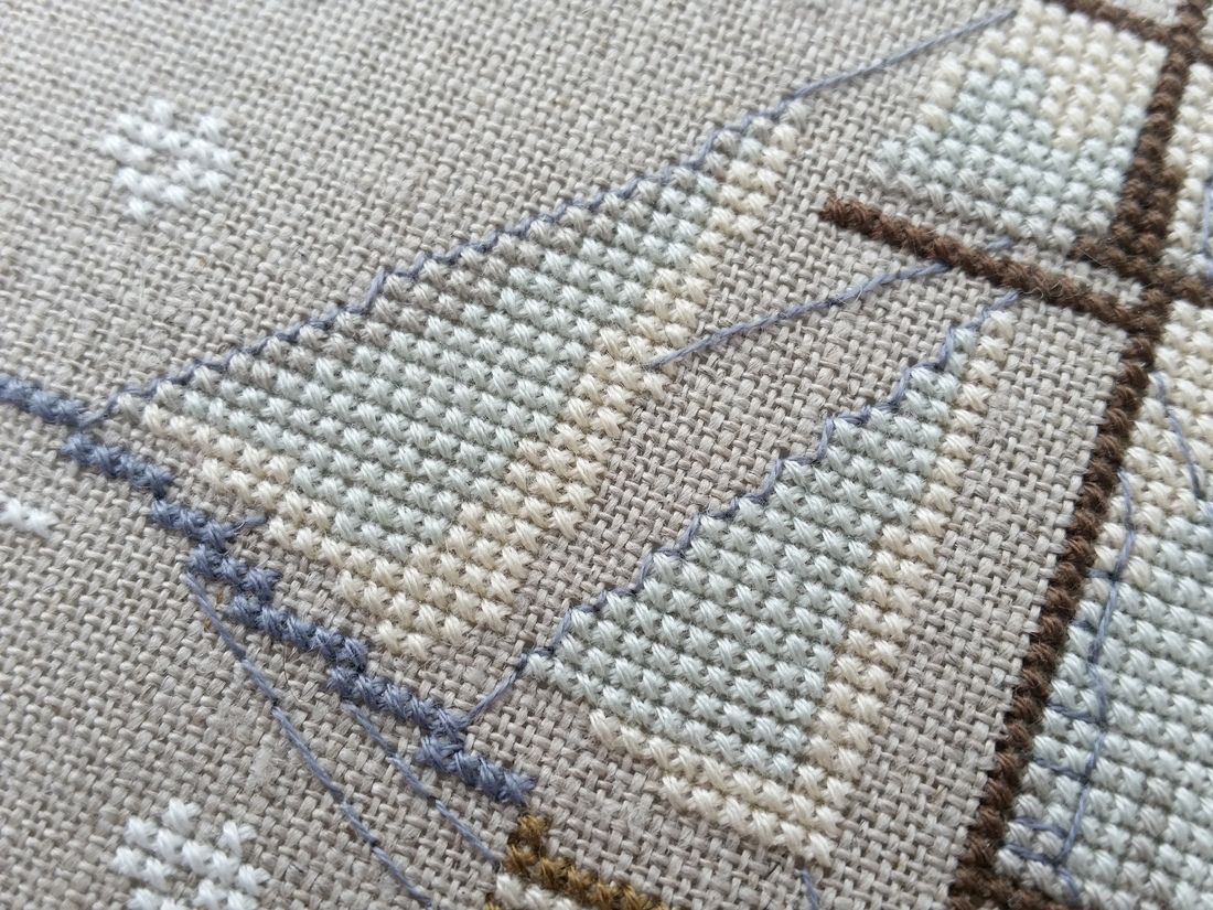 18 февраля 2018 Всем здравствуйте! Я сегодня не в тренде, так сказать, потому что про Формулу Рукоделия рассказывать не буду - не была. И нет, это не принципиальное отрицание события, а всего лишь несчастливое стечение обстоятельств. Я же даже бесплатный билет выиграла в одном из розыгрышей в ВК (что случилось со мной впервые!), настроилась на положительные эмоции (к слову были большие планы по невышивальной и вышивально-аксессуарной части), приготовилась рассмотреть каждый оттенок в сведших меня с ума новых Тюльпанах от Алисы, но... в пятницу сильно заболел Женя и поездка накрылась. Хорошо, что хоть это было накануне субботы и представители ПНК заверили меня, что билет не пропадет, а то бы еще и совесть замучила. Ну ок, решила я, попробую найти положительные стороны даже в этой ситуации: зато выходной сэкономлен. А в качестве компенсации заглянула в наш рукодельный и откопала там прелестную пуговичку всего за 15р!! Это при том, что билет на электричку в одну сторону до Москву больше 80р стоит, т.е. экономия налицо, а удовлетворения и удовольствия выше крыши Пуговка обязательно скоро станет магнитиком. Как только я смогу принять вертикальное положение. Потому что да, весьма предсказуемо я заболела тоже. Хорошо, что большинство фотографий для отчета еще в пятницу сделала, так что отчет будет (это собственно, единственное, на что я сейчас способна). Но сначала позвольте небольшое лирическое отступление про наш магазинчик: Скрытый текст Наш магазинчик "Ниточка-Иголочка" не совсем простой, его хозяйка - Виктория Иосифовна Тучинская, благотворитель, настоящий знаток истории рукоделия и коллекционер рукодельных аксессуаров, великолепная мастерица в разных видах творчества. В своем магазинчике она представила часть своей коллекции, там же висят удивительные образцы вышивки, пэчворка и всякой разности. Там же регулярно проводятся мастер-классы, результаты которых при желании можно отдать на благотворительную ярмарку, а еще курсы по пэчворку (по крайней мере года два назад точно были). Да и ассортимент магазина под стать хозяйке - он интересный и зачастую нехарактерный для местечкового магазина. Хотя, конечно, бизнес и кризис диктуют свои условия и сейчас с ассортиментом здесь стало победнее, да и цены, конечно, повыше интернетовских. Но мне нравится приходить сюда за настроением. Даже на входе такой мелодичный колокольчик, что хочется остановиться и просто послушать его. К слову, в рукодельной среде этот магазинчик носит название "музей-бутик Ниточка Иголочка" А в преддверии ФР сообщество Формулы Рукоделия опубликовало пару статей о Виктории и еще одной стороне ее деятельности, о которой я не знала. Меня очень впечатлило и очень захотелось поделиться с вами.Уверена, большинство из вас тоже о таком не слышали. Итак, "Наперстки и шатлены Виктории Тучинской":часть 1 и часть 2 (Татуся, вроде бы ничего не нарушила. Если что, удали, плиз, я не специально) а вот еще интересная статья из истории семьи Виктории, которая тоже не оставила равнодушной: статья Ну а теперь к отчету. На повестке дня только текущие процессы. 1.Блохастик или Лис от Bothy Treads Распустились наперстянка, очень классная даже без бэка. Уверена, бэк добавит еще колорита и настроения. Но сначала досажаю траву: в правом нижнем углу ее осталось совсем чуточку, считай что угол уже есть 2.Изабель Воть