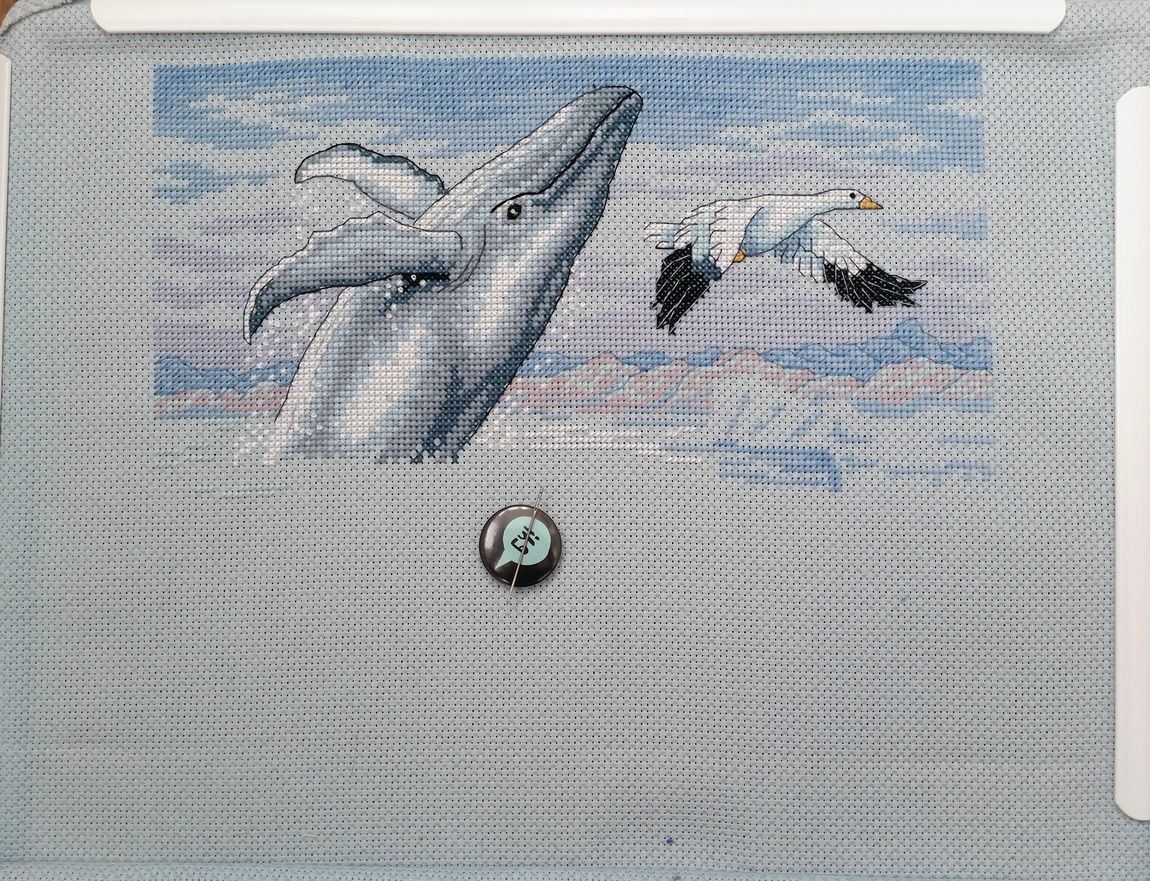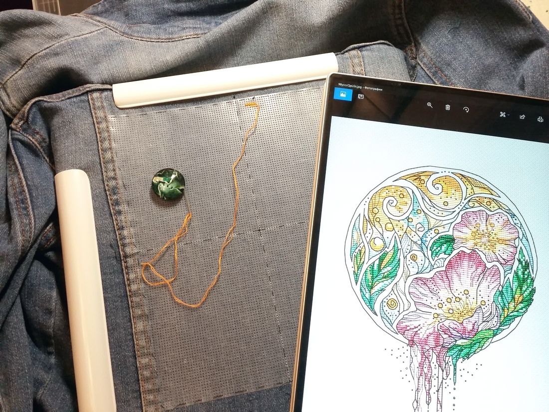 4 марта 2018 Итак, всем здравствуйте! За окном погода совсем нелетная, видимо зима с весной вступили в решающую схватку, и быть непосредственным участником этой снежно-ветреной битвы ну совсем не хочется. Так что я, натянув теплые носки и забравшись под плед, взираю на это буйство стихии из окна, слушая завывания ветра и радуясь тому, что сегодня никуда не надо идти, и с удовольствием набираю буковки на клавиатуре, чтобы рассказать вам про дела давно минувших дней вышивальные. Итак отчет! Завершив один затянувшийся процесс, я почти тут же достала еще один долгострой. Не самый древний, но один из тех, что вечно "вот сейчас это закончу и сразу к нему". Он очень желанный, он почти все время стоял под рукой и ему все время не хватало внимания в последний момент. Не могу гарантировать, что в этот раз моего запала хватит до конца, но пока есть решимость вести его хотя бы в качестве второго основного. Dimensions, Арктические проделки (Arctic Antics) К сегодняшнему дню надводную часть картинки можно считать завершенной, включая бэк и фрузелки. Осталась вершина айсберга справа, которая будет шиться сразу вместе с подводной частью и немного фрузелков в той части, что непосредственно соприкасается с водной пеной. Теперь надо преодолеть водную пену со всей ее мешаниной, а там уже поджидают новые герои и новые оттенки цвета Было: и стало: Далее новый процесс. Но тоже с очень длинной историй. Тот самый, что на данный момент отодвинул арктический дим на роль всего лишь второго. Алиса Окнеас, Шиповник. По рисунку Екатерины Лиссы. Размер 93х135 крестиков. 37 цветов. Одна из моих любимых художниц, и один из любимых дизайнеров. Про этот тандем, равно как и про их ботаническую серию, не слышал только тот, кто не интересуется авторскими схемами вовсе. И вышивать я его буду на джинсовке для себя любимой. Вообще путь к этому процессу был долгим. Чуть больше полутора лет назад у меня появилась джинсовая куртка. Впервые после долгого перерыва. Тогда вышивка на одежде, а тем паче на джинсовках, только набирала обороты в вышивальном мире, были первые пробы и первые ловцы снов от Натальи Ореховой. Я точно знала, что ловца не хочу - не мое, хоть и очень гармоничны они именно на такого рода одежде. Поэтому я начала искать свой сюжет. Сначала хотела вышить Грибы из той же серии, что и шиповник. Но испугалась такого многоцветья и сложности, тем более на джинсе. Потом мне встретилась отличная картинка от С.Немирицкой и я даже сделала стартовое фото, но в процессе съемки подумалось: а не маловат ли размер дизайна? Посоветовалась с мужем, сестрой, поразмыслила еще - маленький, как бы мне не хотелось видеть обратное. К этому моменту уже наступил май и джинсовка потребовалась в деле. Так вышивка отложилась до окончания тепла. С приходом зимы мысли о сюжете зашевелились с новой силой. И чтобы снова не попасть впросак, я уже стала смотреть конкретные размеры конкретных сюжетов и тут же прикладывать их к джинсовке. Грибы по-прежнему рассматривались, т.к. опыта в вышивке на одежде у меня за год существенно прибавилось и страха стало на порядок меньше. Но они оказались не тех габаритов: по ширине влезали тютелька-в-тютельку, а вот по высоте оставалось слишком много свободного места. Надо было искать что-то "более вертикальное". При этом отступать от этой ботанической серии совсем не хотелось - это моя вечная лю