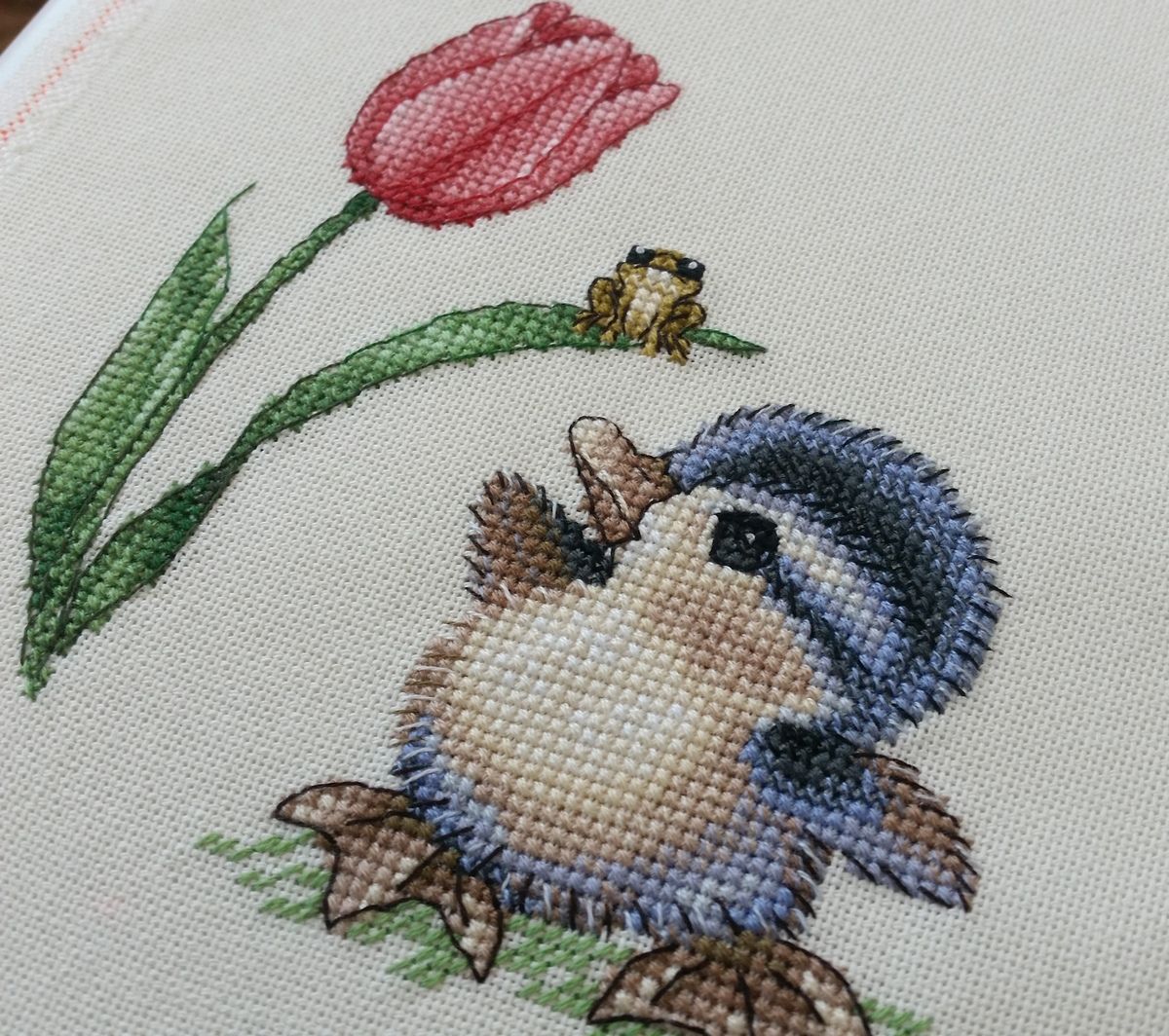 13 мая 2018 Здравствуйте! Вот скажите, как успеть погулять, покататься на велике, почитать, повышивать и еще и отчеты писать регулярно? Все чаще посещают мысли увеличить межотчетные периоды. Но в поле зрения фотоаппарата снова попадают такие вдохновляющие и окрыляющие вещи, что хочется делиться ими со всеми. А вышивка... ну что ж будем стараться А весна между тем стремительно летит по стране, расцвечивая в удивительно жизнерадостные краски все вокруг, вдохновляя, наполняя надеждой и радостью. Вишня и черемуха, теплые и такие родные солнышки-одуванчики, кислица, столбики-солдатики ландышей и уже распускающиеся сирень и яблоня. Молодая зелень умиляет невероятно и так радостно, что ты снова можешь более или менее уверенно ответить на детский вопрос о том, что же это за дерево Да что говорить, удивительная голубизна неба, проглядывающая сквозь зеленую дымку молодой листвы... Хочется летать, вот честное слово! Вышивка. Продолжаю работу над пледом (пора бы заканчивать, а я все только думаю активизироваться ). Готов еще один сюжет. Мария Бровко, "Утёнок с тюльпаном". Размер 66х73 крестика, 27 цветов и 14 блендов из них. Все та же Линда 264, все те же ДМЦ. Все то же сумасшедшее количество цветов и зашкаливающий уровень ми-мишности (ой, как я не люблю это слово!). Правда этот товарищ один из моих любимчиков. Может потому что тюльпаны люблю. А может потому что лягушонок здесь просто офигенный. А может быть и потому, что с детства сохранила воспоминания о теплых и пищащих комочках-утятах... Короче классный он! А если про вышивку говорить, то очень странно было шить утенка голубыми! нитками. На одной из первых фотографий это видно. Это даже подгоняло скорее целиком вышить, чтоб убедиться, что ошибки нет. Вот такие они - чудеса цветовосприятия! Скрин: И мой вариант: Еще одно продолжение. По иронии судьбы, схема того же дизайнера. Мария Бровко, Ведьмочка и лис (или Ведьмочка и луна - мне так больше нравится ) Завершила самую значительную и самую мучительную часть дизайна - луну. Ну мучений я, конечно, сама себе добавила - кто ж мне велел светящуюся нитку добавлять?! Два или три раза я забрасывала эту вышивку в дальний угол, два или три раза чуть не распорола все под ноль (кривые крестики и бесконечные ошибки, ррр! ). Но лень, упрямство и невероятно сильный эмоциональный посыл, который несет для меня этот дизайн, свое дело сделали и вот сейчас уже имеется не только тень главной героини, но и даже часть ее самой Было: и стало: ПС: правда, магнитик в тему? Так...а теперь праздничные мероприятия! По какому поводу? Ну сами посудите: до отчета у меня было 98 процессов. С утенком уже 99. А значит на пороге 100й юбилейный!! Полторы недели я ходила и думала, что бы такое особенное показать в честь такого события. И придумала. Благо есть еще в загашнике парочка непоказанных. Поэтому встречайте 100й юбилейный процесс: Красная шапочка по схеме Натальи Кофф! Размер: 136 х 151 крестик, 35 цветов (из них 2 бленда), палитра DMC. Полный крест, полукрест, бэкстич, французский узелок. Основа: Белфаст 52 Нравится? Мне очень! Такой стильный треш! Отлично разбавляет милых зверюшек, лирические пейзажи и душевынимательные истории, которые сами собой придумываются у меня ко многим дизайнам Схема чуть мелковата, непростая, но в целом вполне читаемая. Стыкуется немного непривычным способом, но тут главное внимательным при скл
